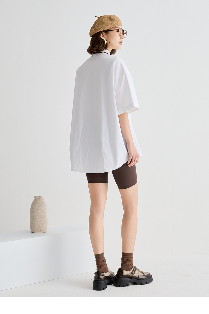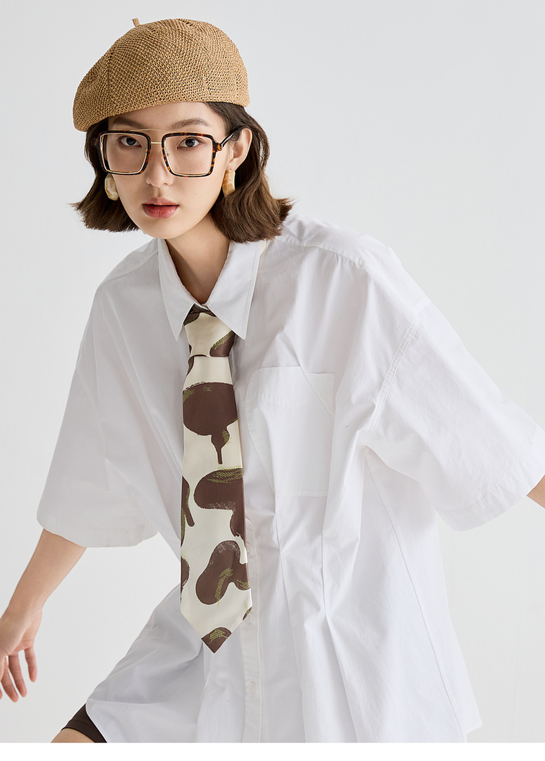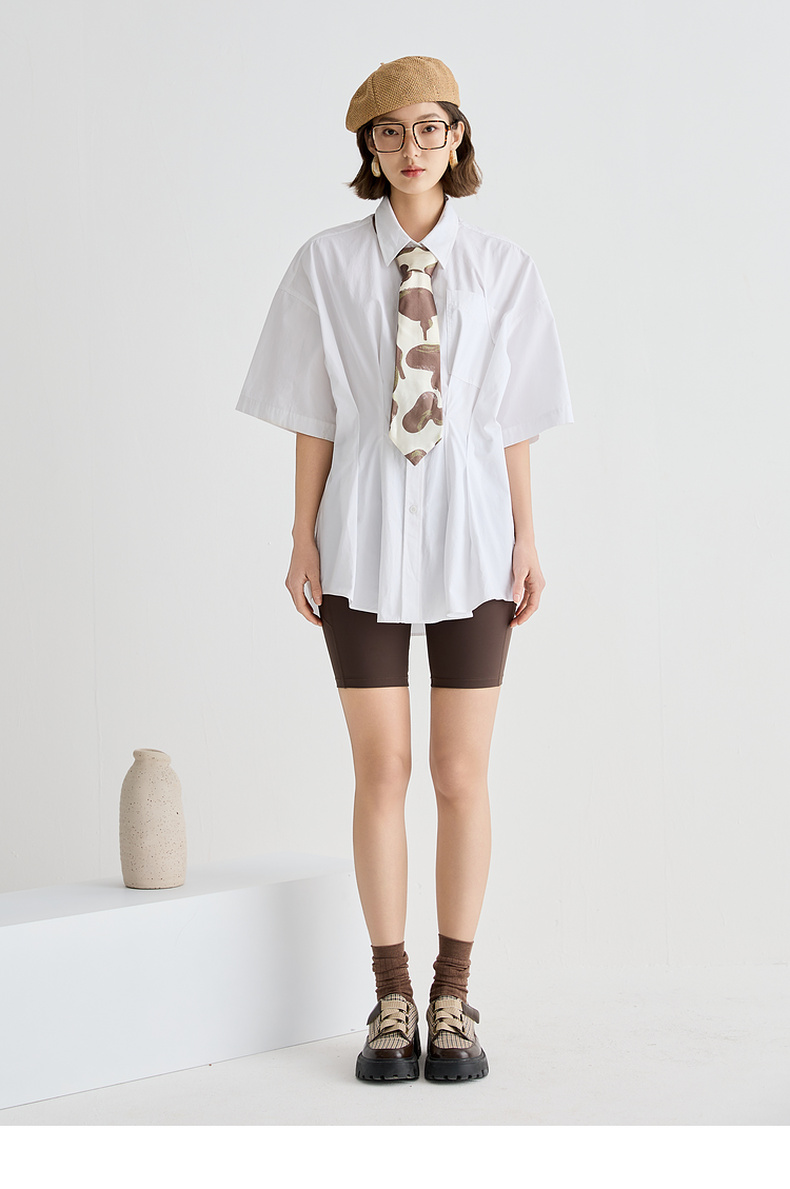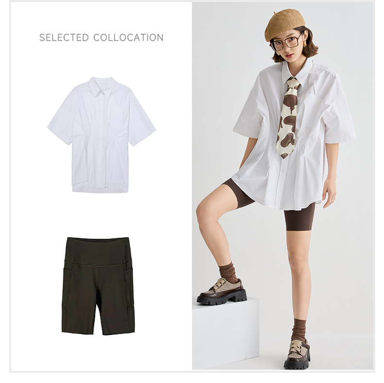 谜底衬衫短袖女2025夏季新品通勤立体捏褶大廓形H型衬衣252MC0545