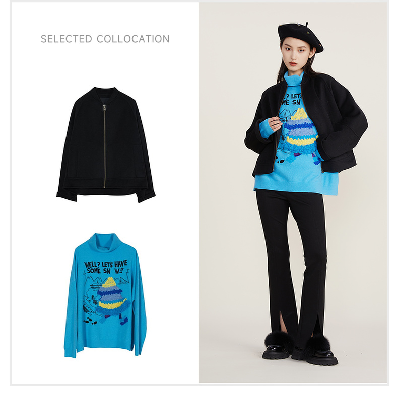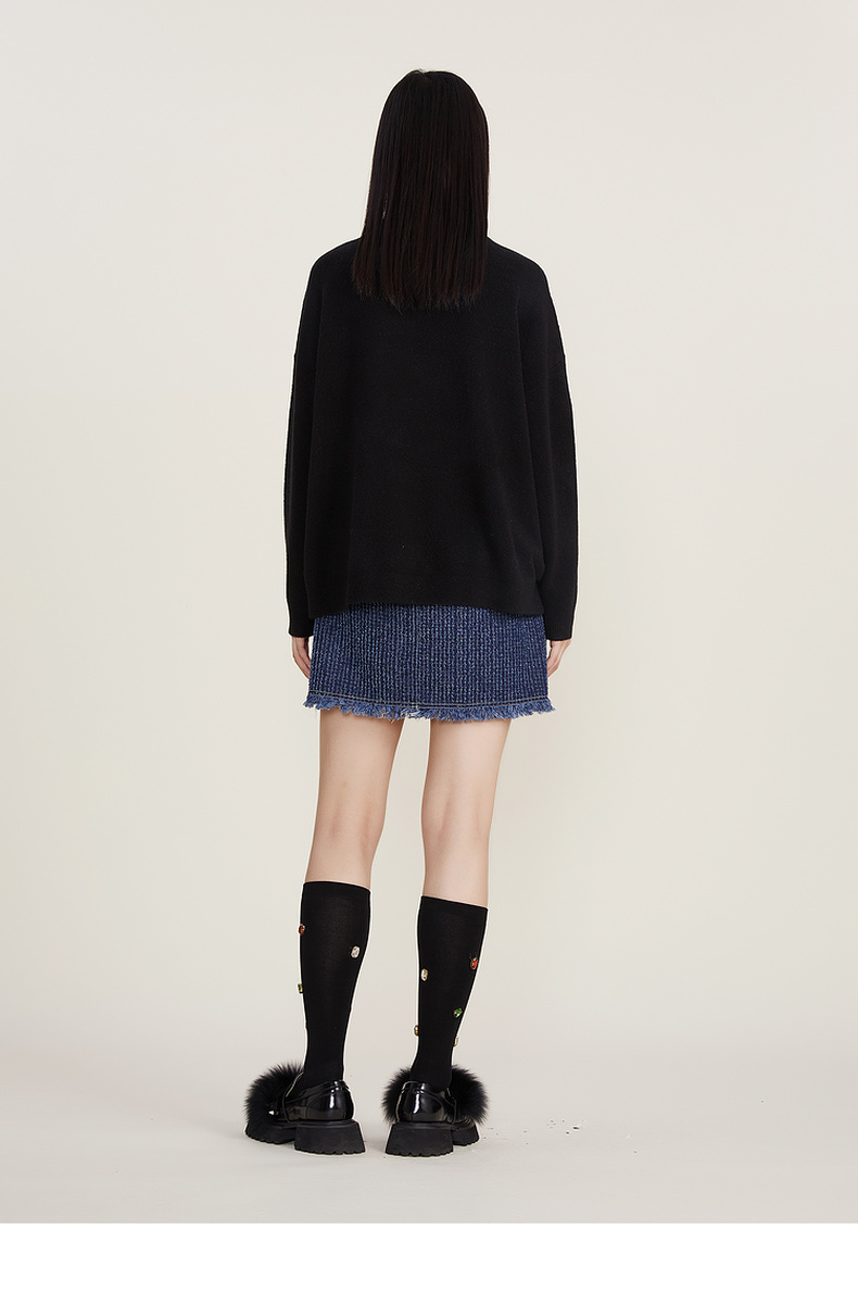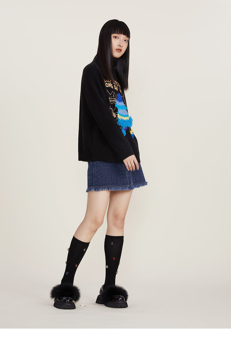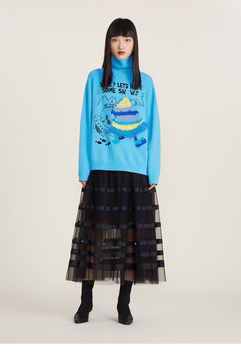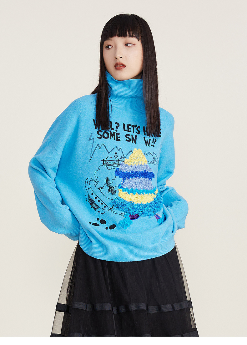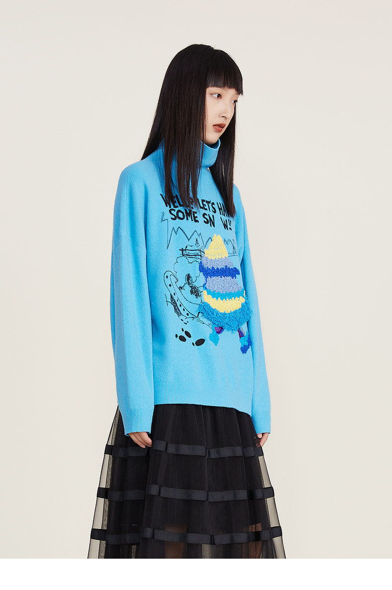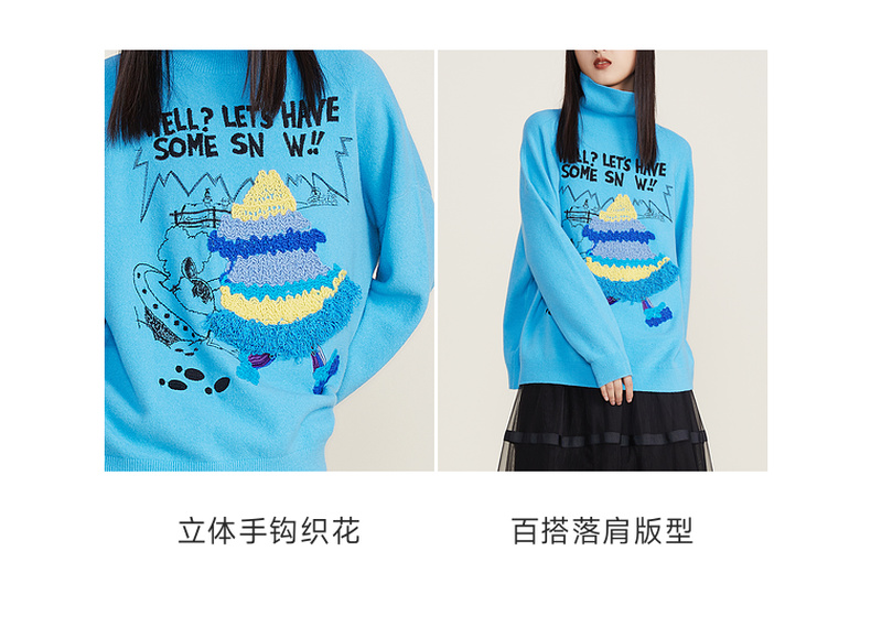 谜底2022冬新款高领套头针织衫女时尚百搭宽松手钩绣花224MZ1901