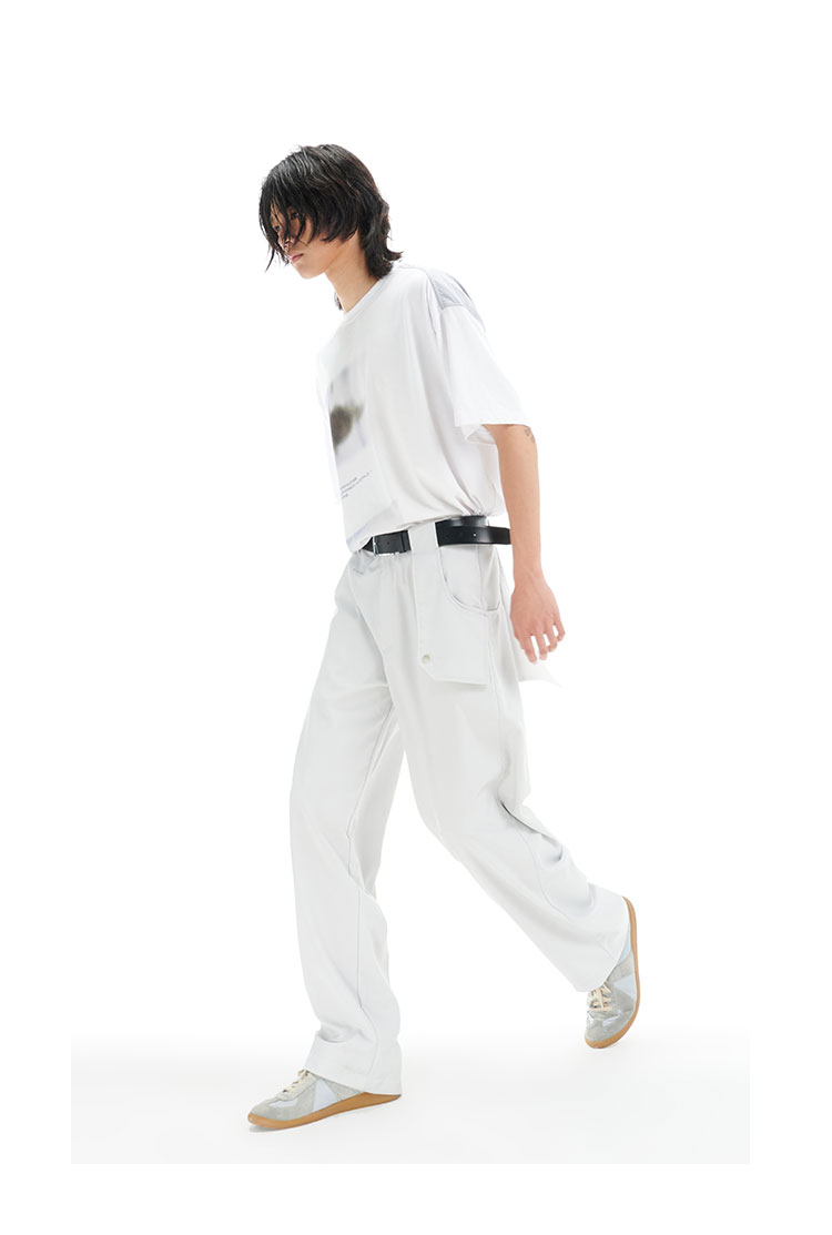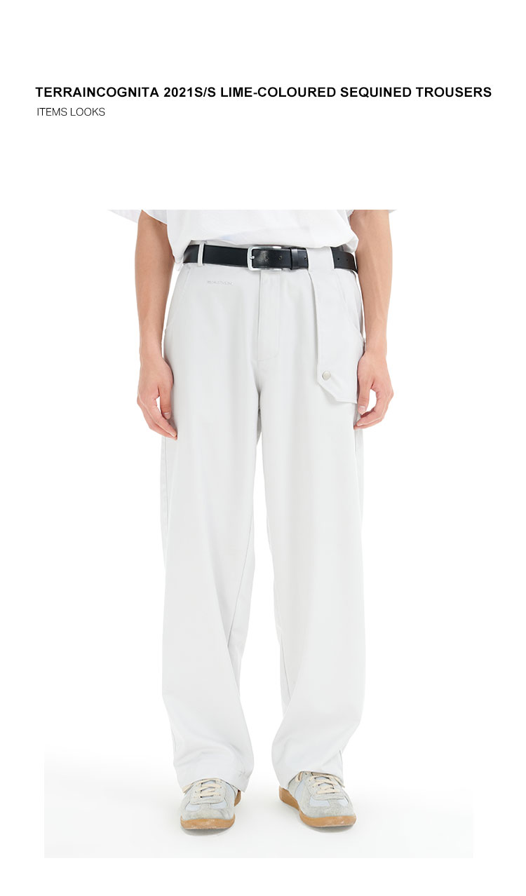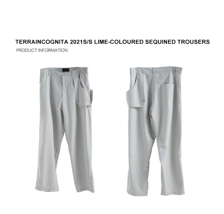 TERRAINCOGNITA21SS水泥灰蓝可扣式挡片休闲裤小众金属烫银西裤