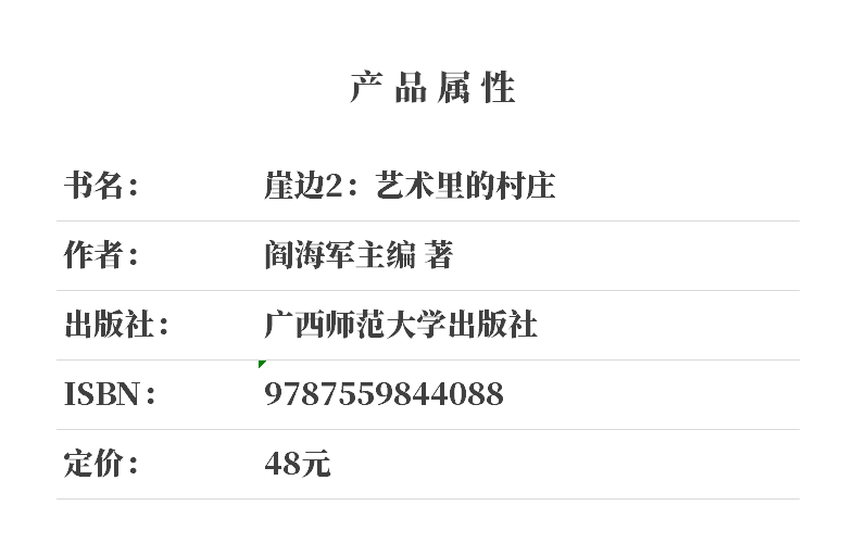 北京通州宋庄如何变成中国当代艺术的摇篮?云南光崀的猪窝咖啡为何火爆?福建厦地古村落如何变颓圮腐朽为生机勃勃?《崖边2:艺术里的村庄》一书从全国范围内选择了六个典型的艺术乡建村庄,邀请各自代表性实践者如徐弘滨、程美信、李向明等艺术家,通过主讲人叙述并辅以访谈文章的形式,呈现他们的艺术乡建项目实施过程,以及过程中遇到的种种难题、解决问题的思路、经验总结与反思等。艺术家们以艺术展演、古建筑改造、民艺开发、美育建设等方式介入乡村,解读艺术、土地与人的关系,思考艺术赋予乡村复兴的力量,为中国乡村文化建设提供一份有益的参考。