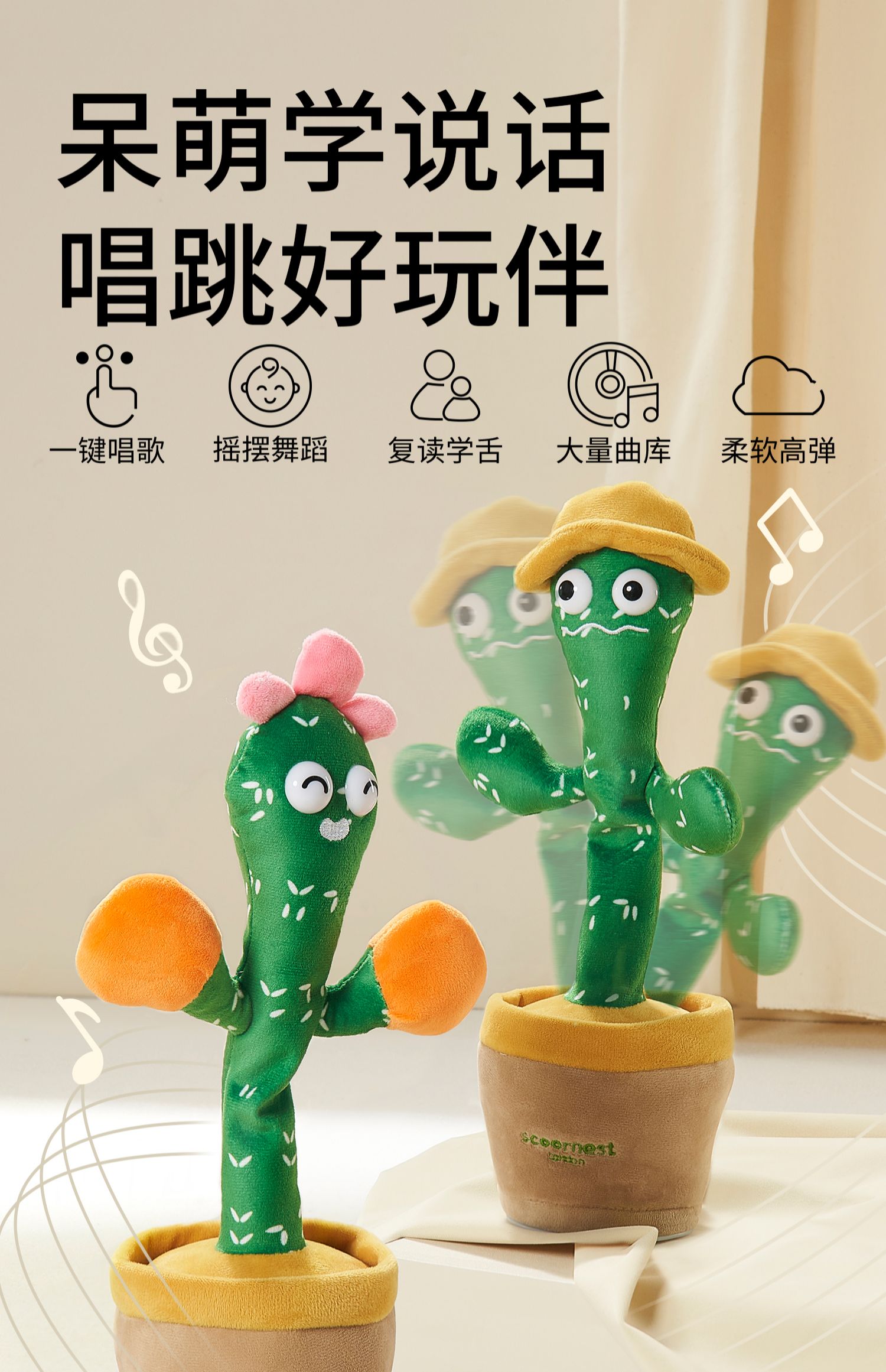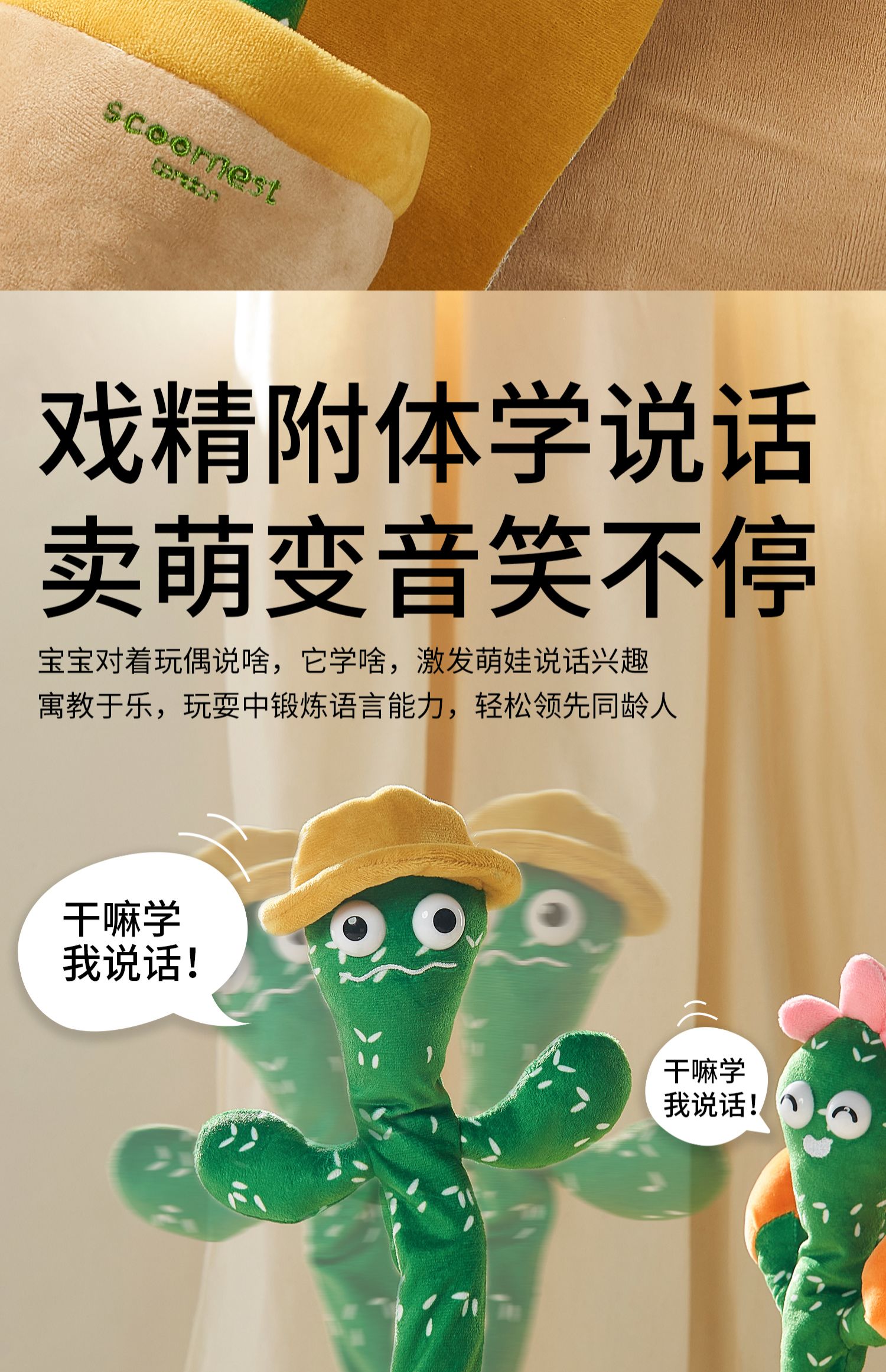 科巢跳舞仙人掌玩具会学说话的婴儿宝宝儿童摇摆妖娆花复读录音偶