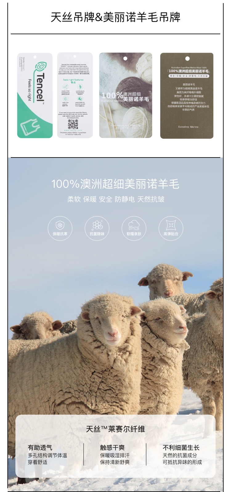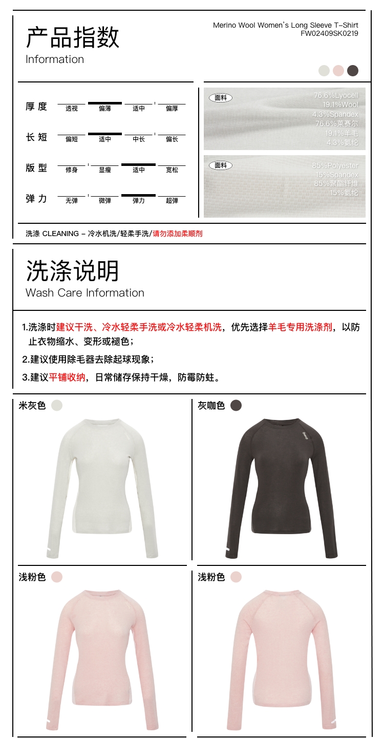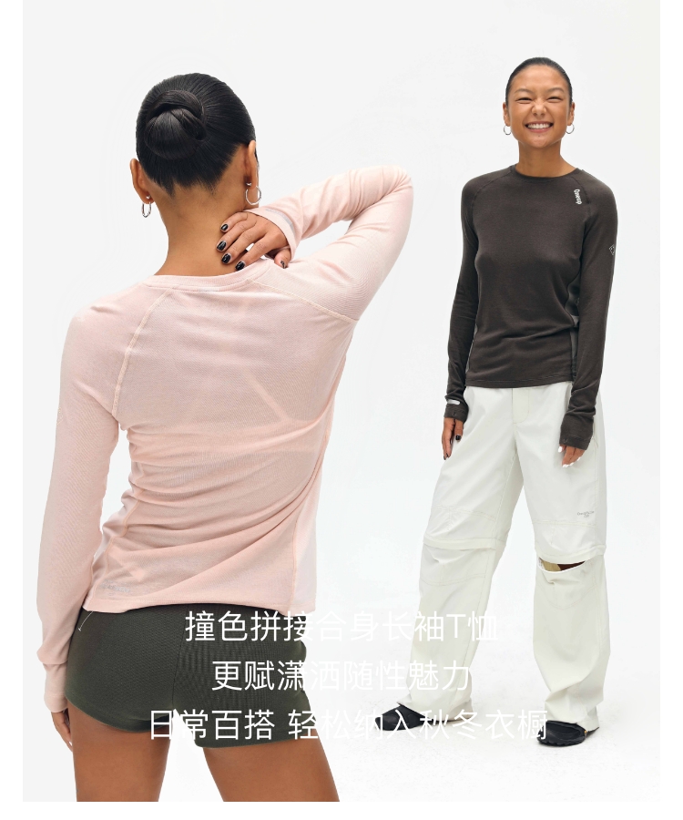 oneup兰精天丝美丽奴羊毛女式合身长袖T恤