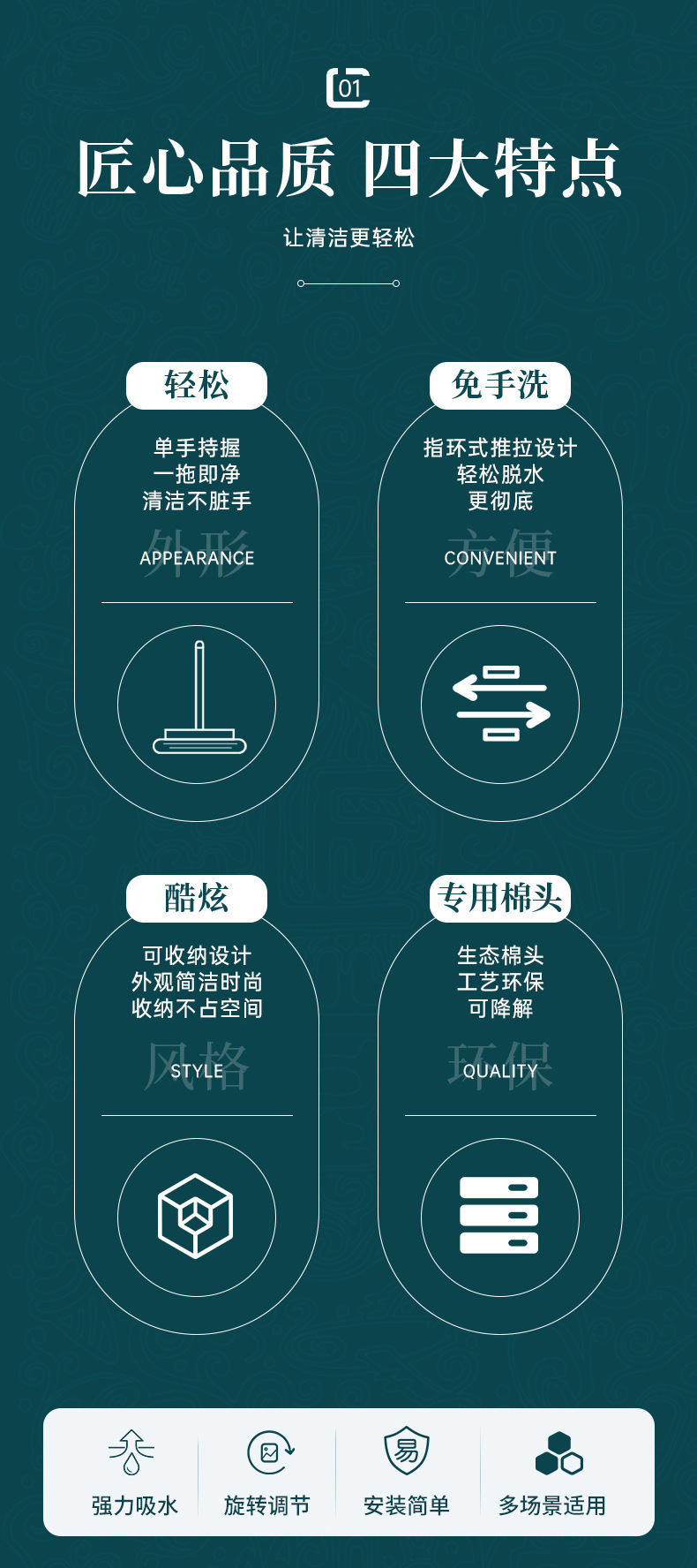 嘿叨 多功能迷你海绵小拖把 懒人拖把强力吸水免手洗锁水性好使用方便免手洗