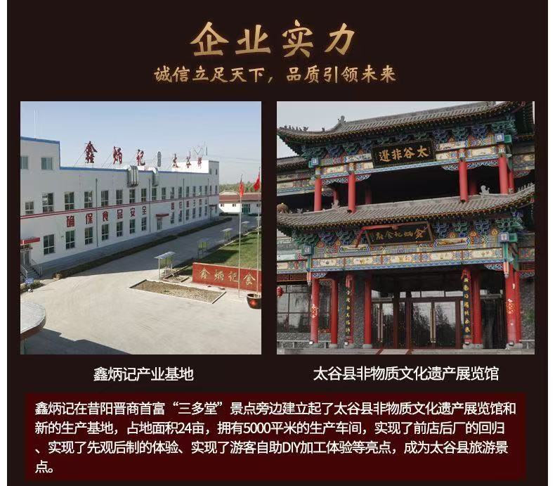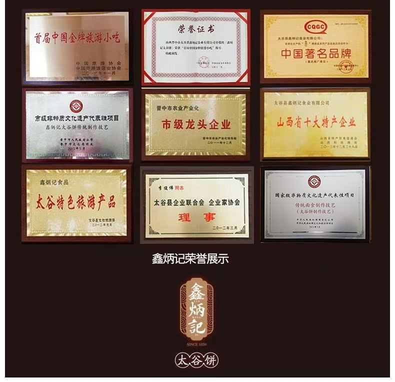 鑫炳记始于1859年,历经五代传承,传承百年工艺,从选取原料到烘烤出炉,都严格遵守祖传古方,让百年太谷饼焕发新的魅力。
