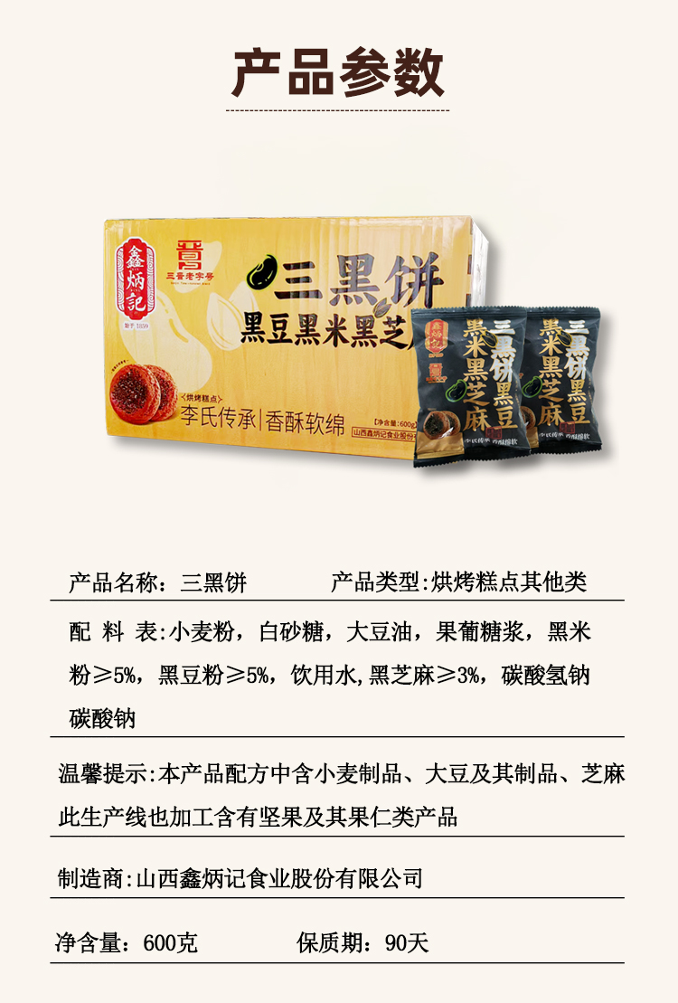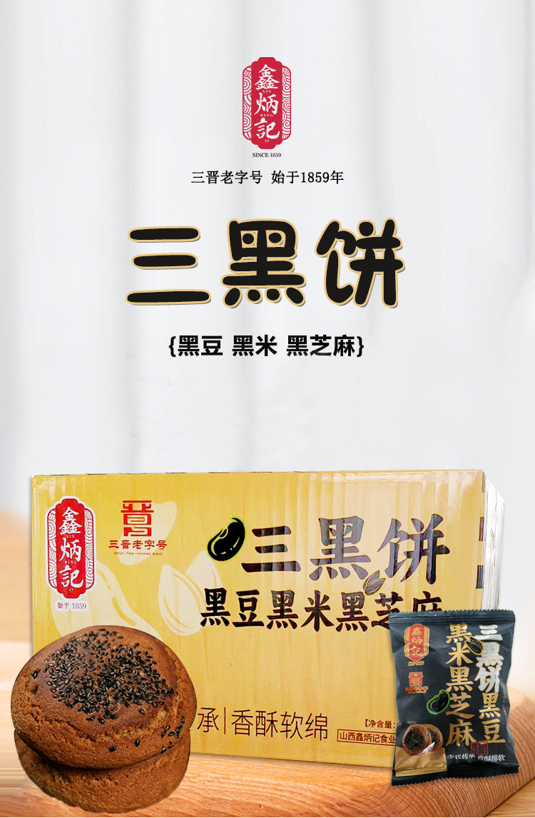 鑫炳记三黑饼600g整箱山西特产糕点美食