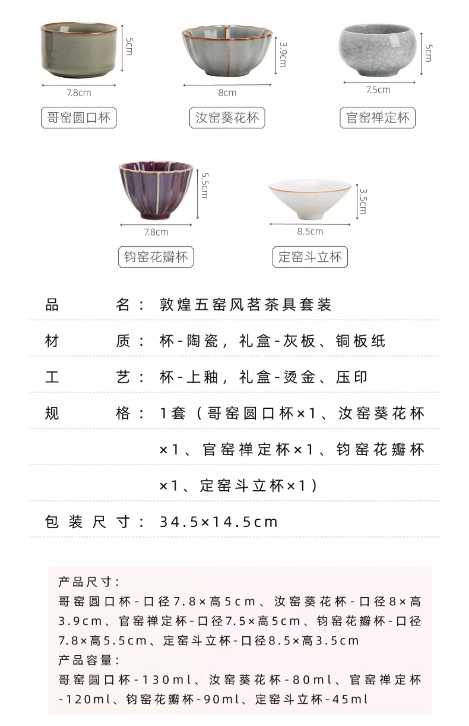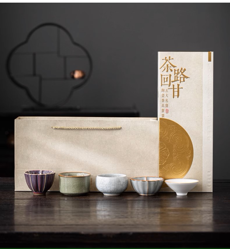【父亲节礼物】敦煌研究院 五大名窑陶瓷茶具套装 茶杯2024新款男士高端个人专用