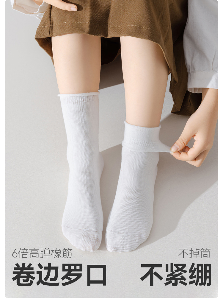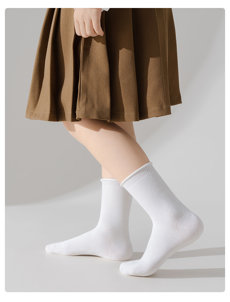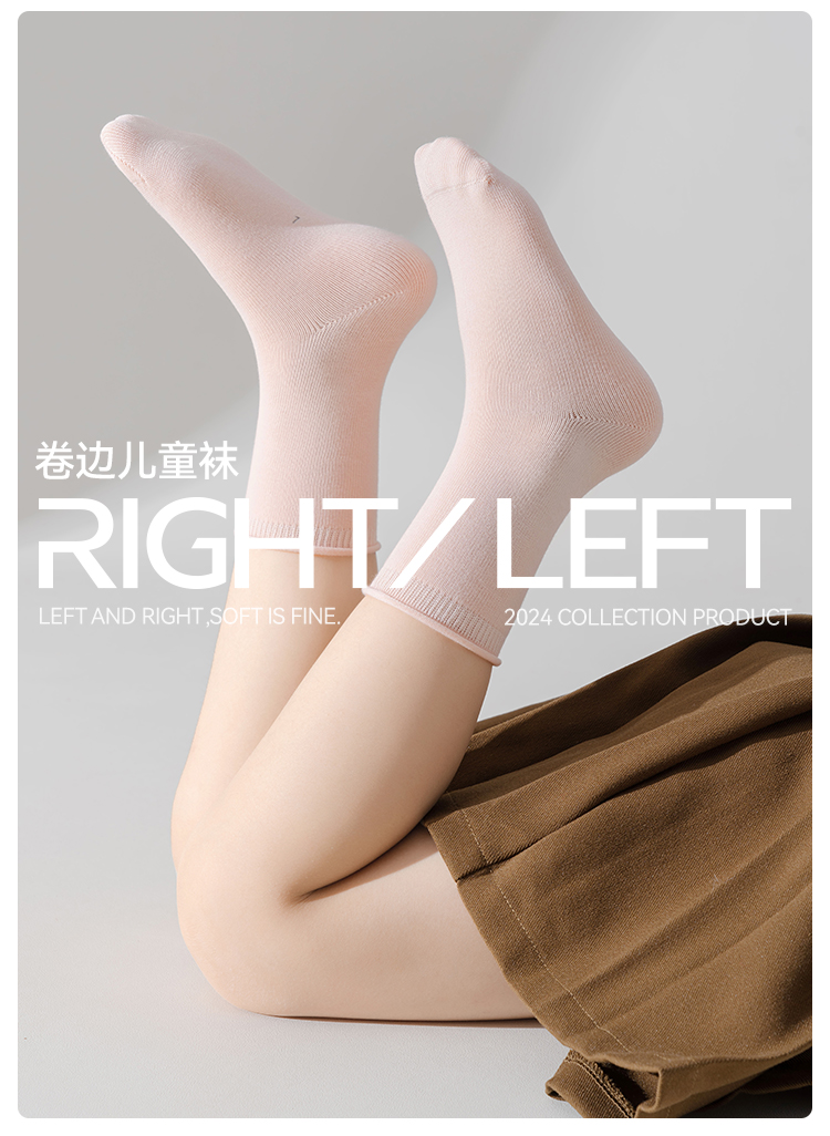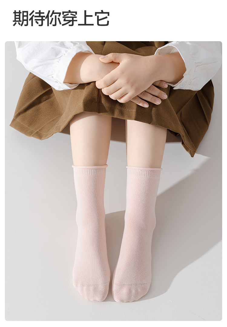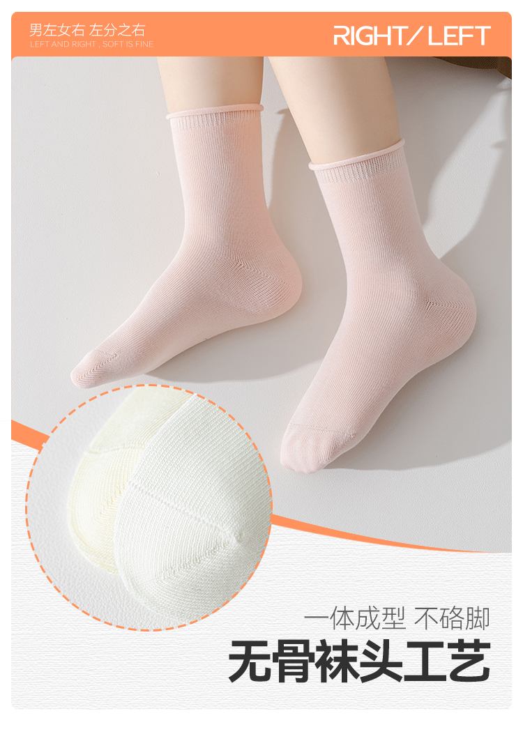 左分之右儿童袜子春夏款男女10A抗菌纯色中筒袜卷边宝宝袜无骨袜