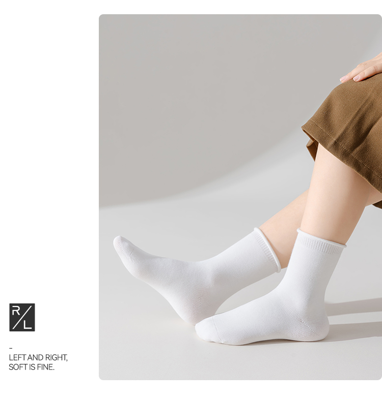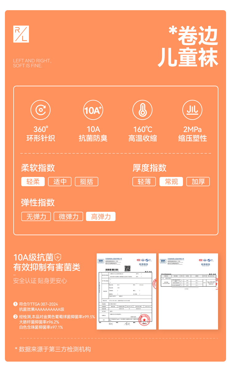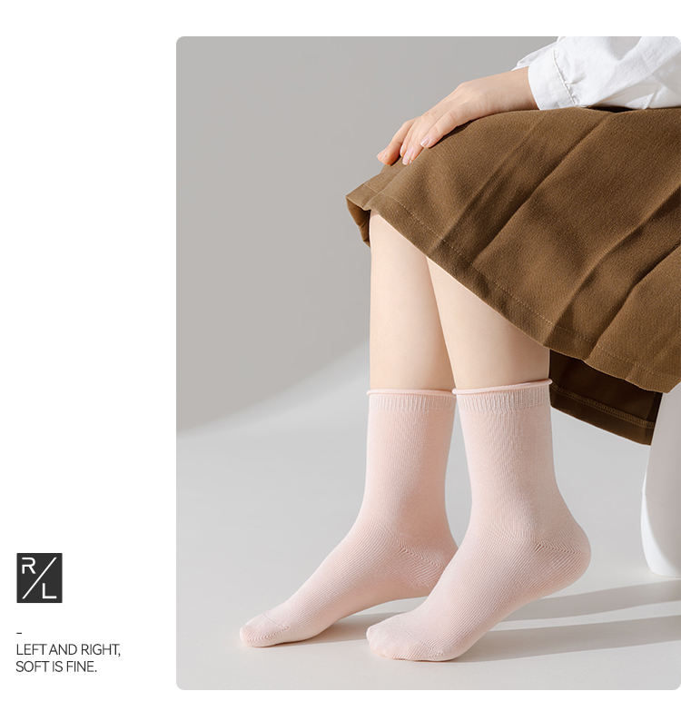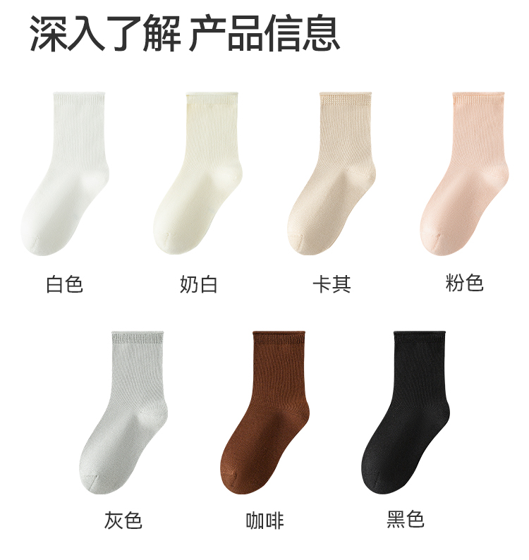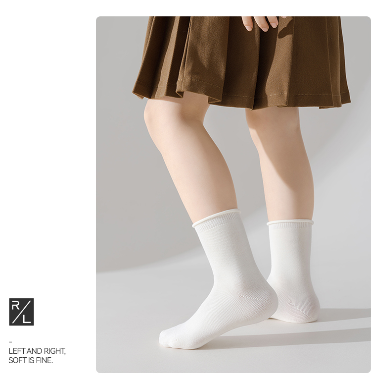 左分之右儿童袜子春夏款男女10A抗菌纯色中筒袜卷边宝宝袜无骨袜