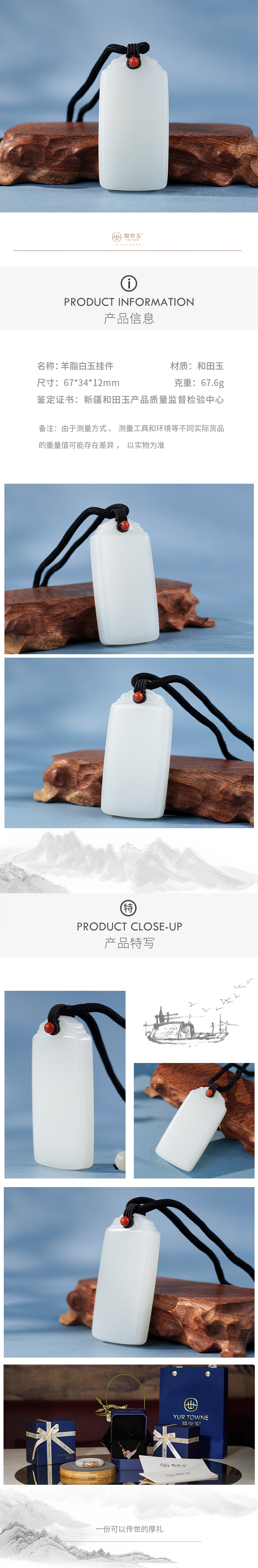 「年礼优选」【锦鲤】羊脂白玉牌