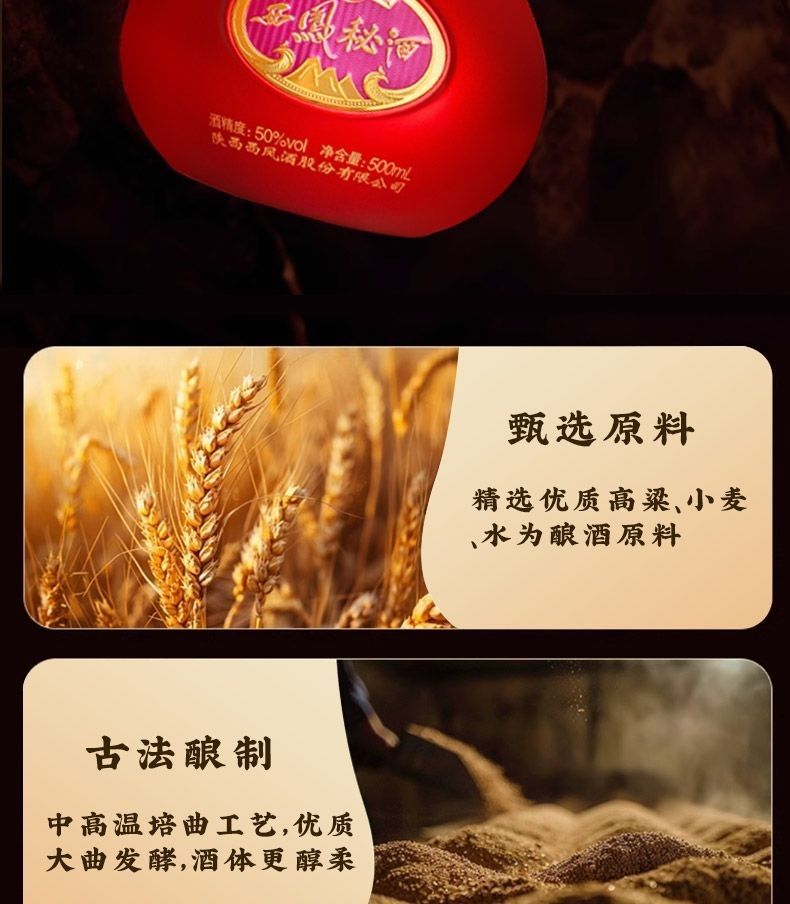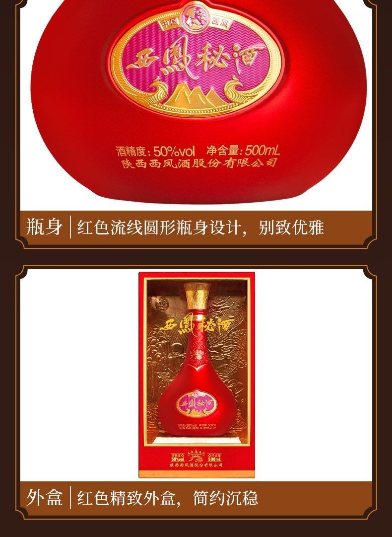 陕西西凤酒秘酒 50度浓香型白酒 整箱500ml*6瓶包邮