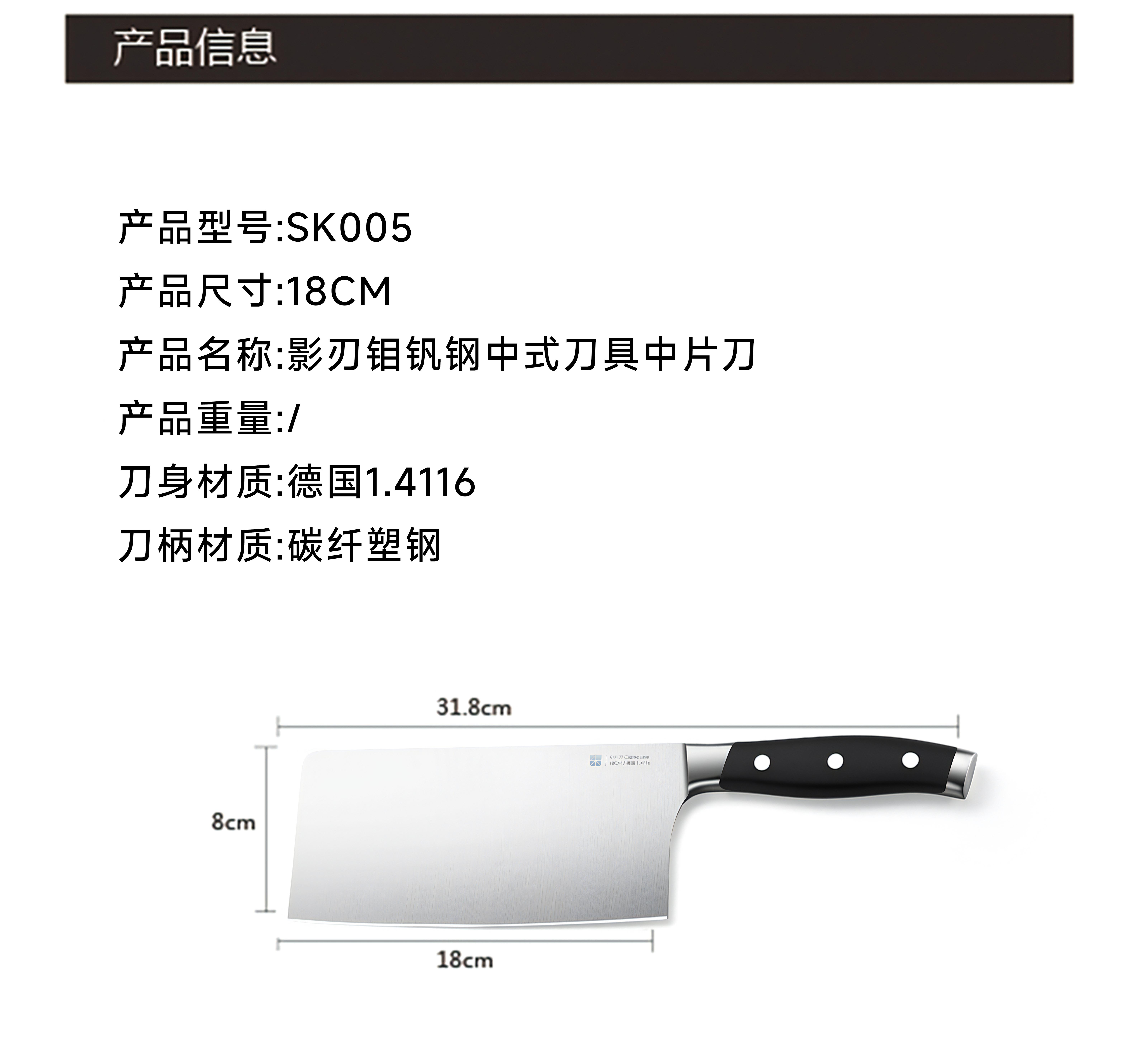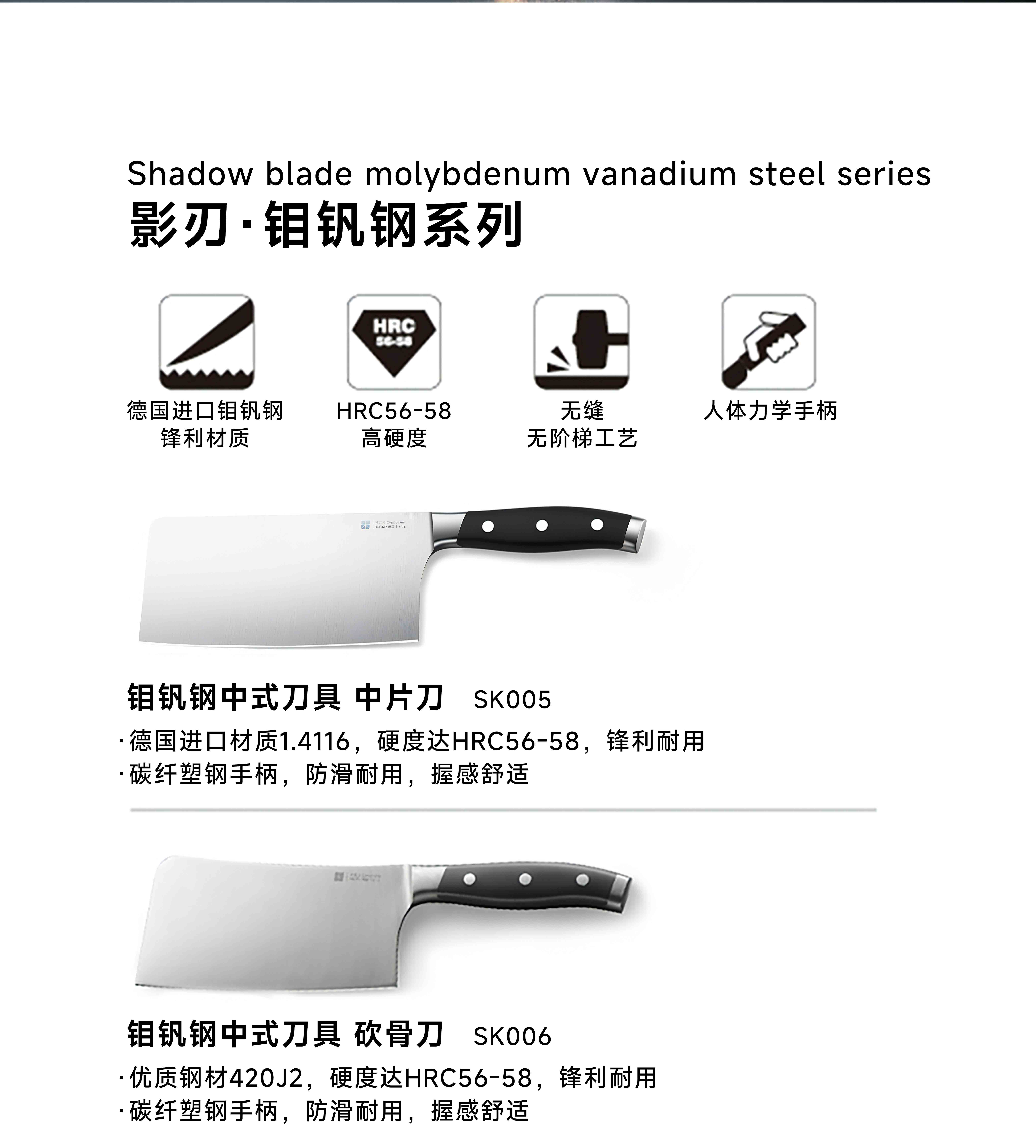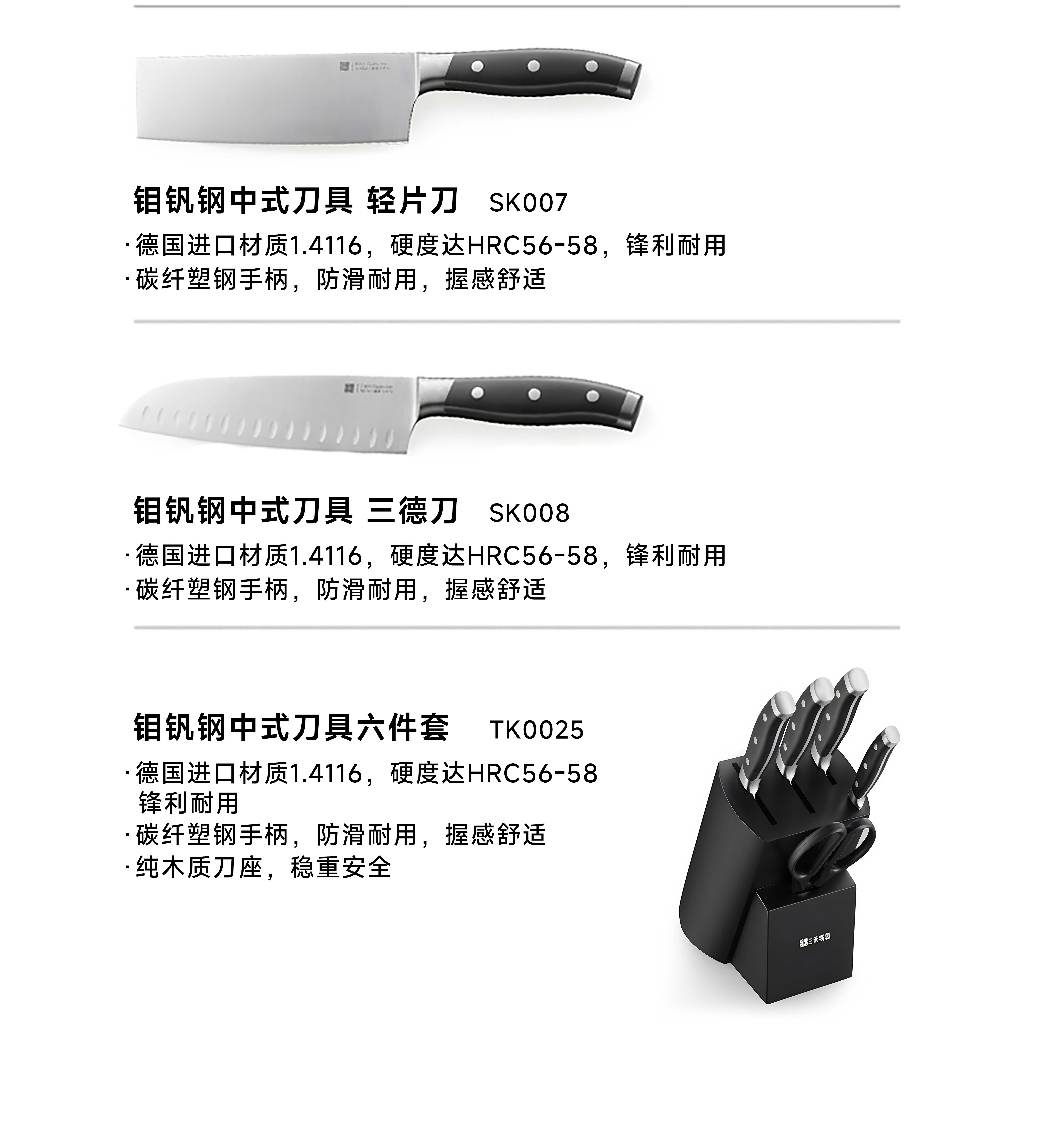 三禾影刃钼钒钢两件套(中片刀+三德刀)