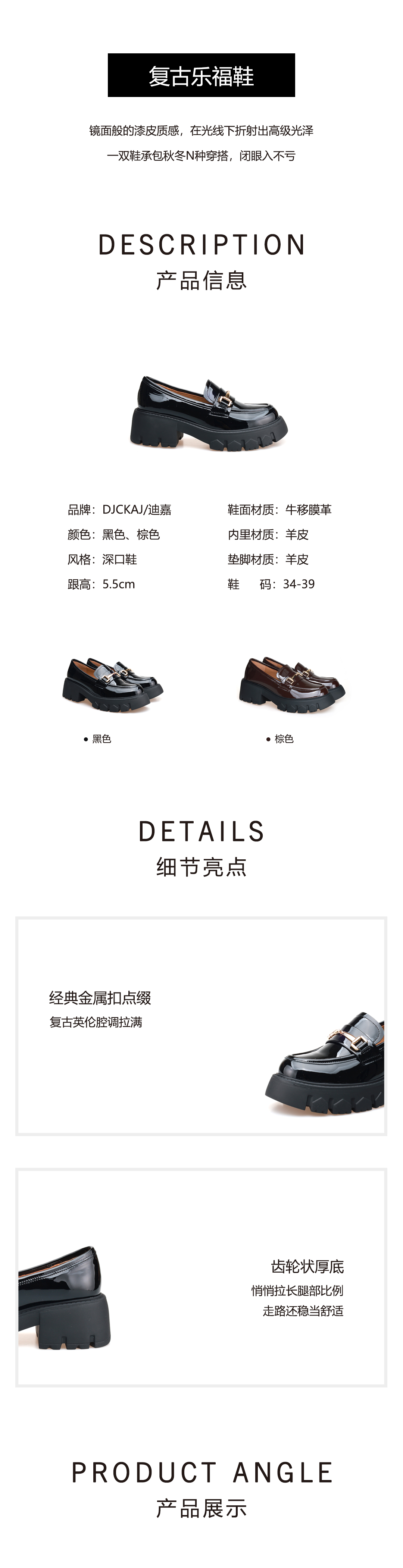 豪麟名鞋奥莱迪嘉女鞋乐福鞋牛移膜革DJXXO52WS206黑色 原价1960元