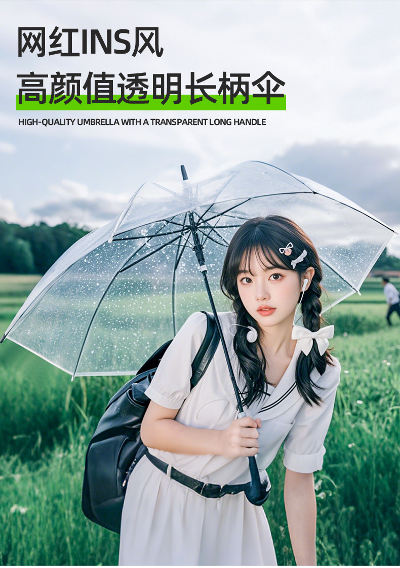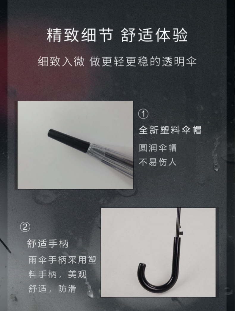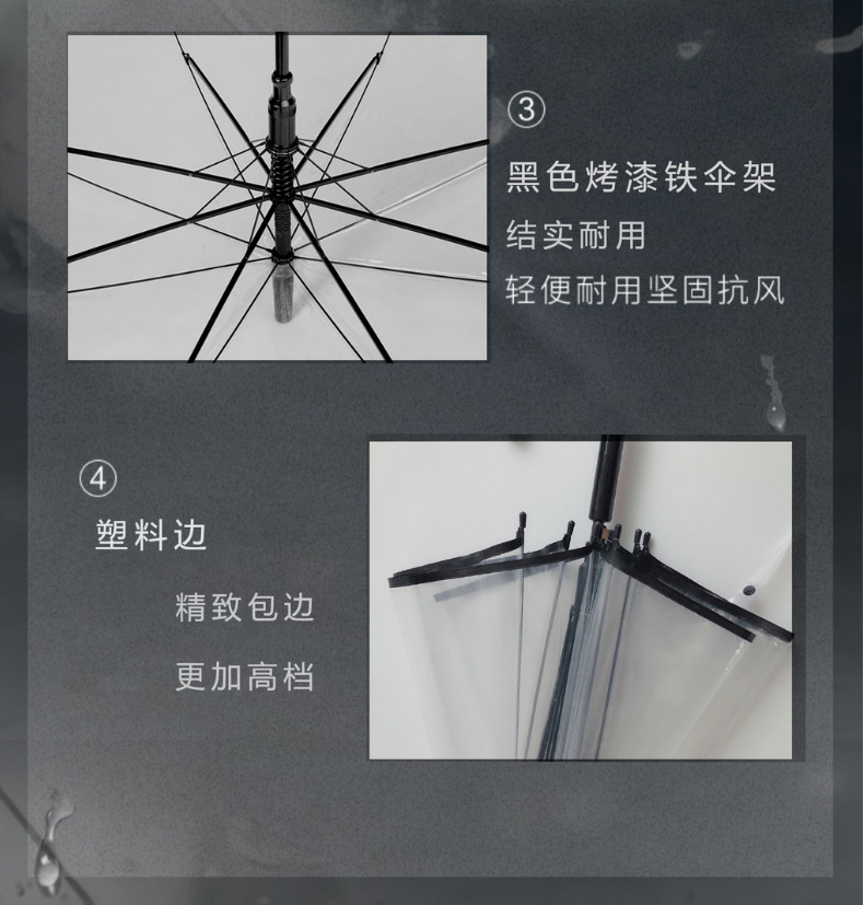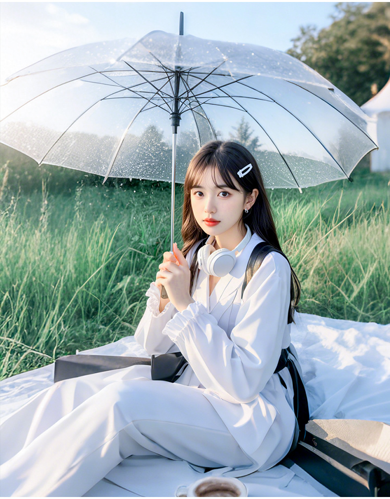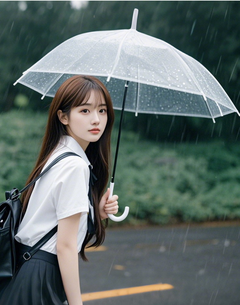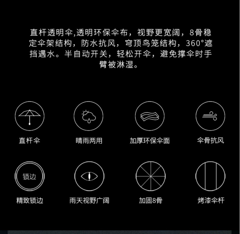 【自动透明雨伞】直杆透明伞,透明环保伞布,视野更宽阔,8骨,16骨稳定伞架结构结实,防水抗风,穹顶鸟笼结构,360°遮挡遇水。半自动开关,轻松开伞,避免撑伞时手臂被淋湿!