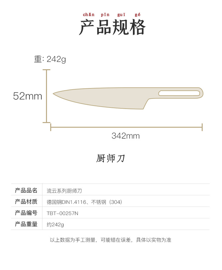 拓 家用菜刀流云厨师专用刀不锈钢切片刀切肉刀果蔬刀