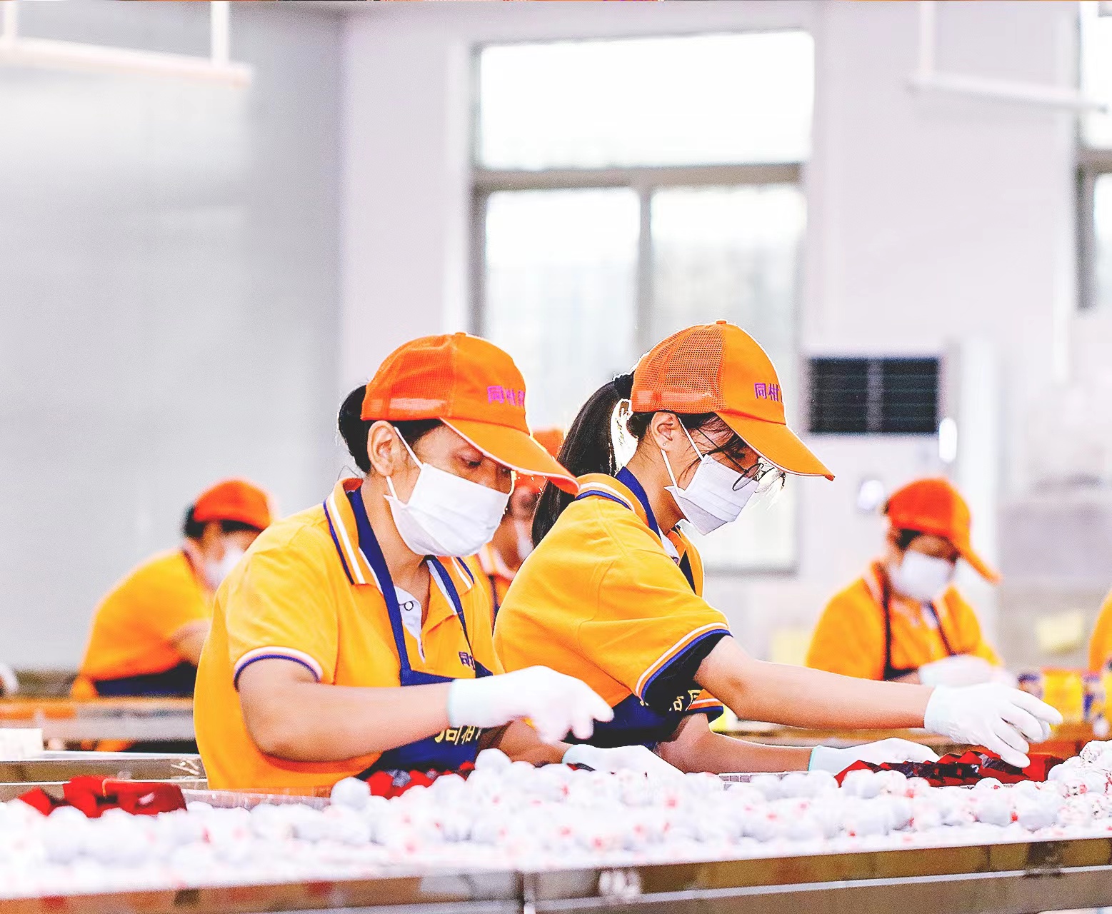 力度要适中,不能破坏果皮壳的完整度,十分考验工人们的功力