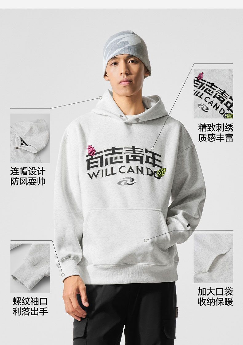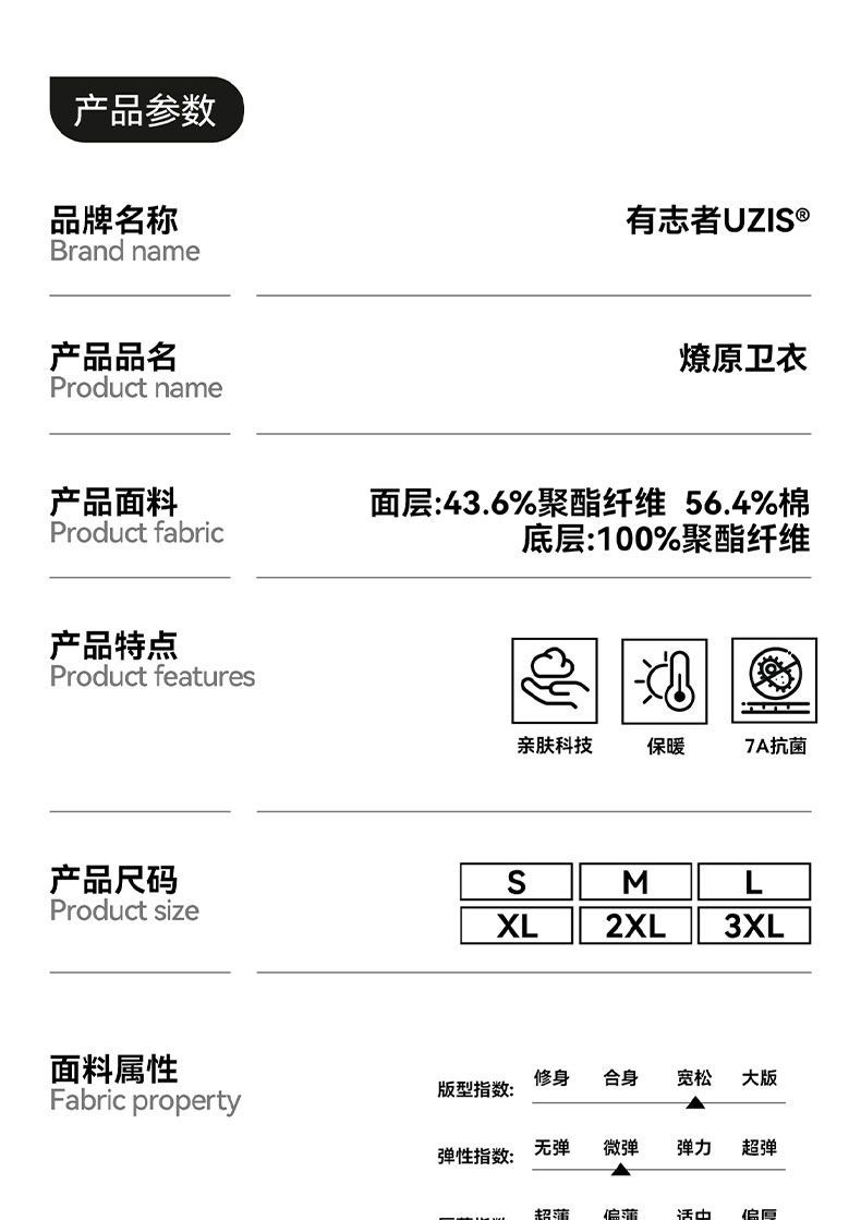 有志者UZIS男款运动卫衣长袖休闲通勤连帽衫健身跑步宽松训练燎原