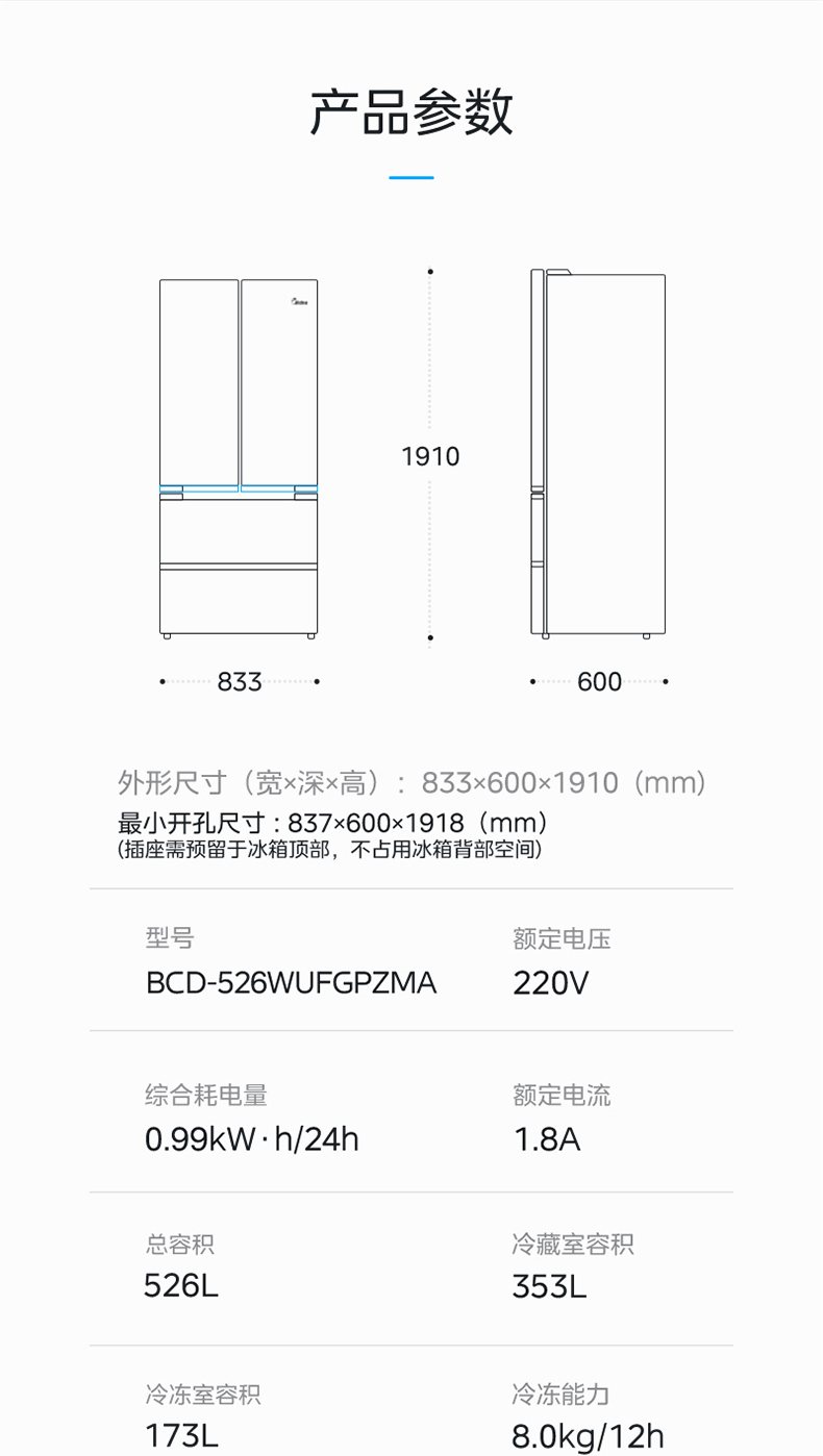 美的 冰箱 BCD-526WUFGPZMA 弦影白