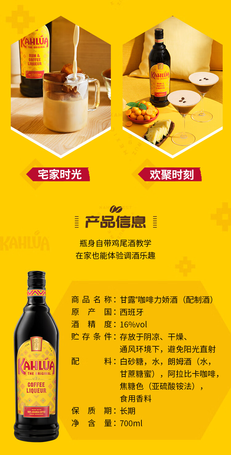 甘露(Kahlua) 利口酒 力娇酒 咖啡味 700ml 洋酒