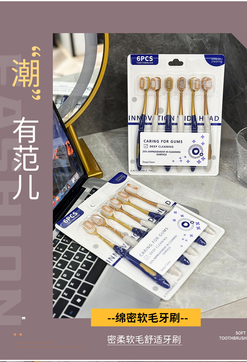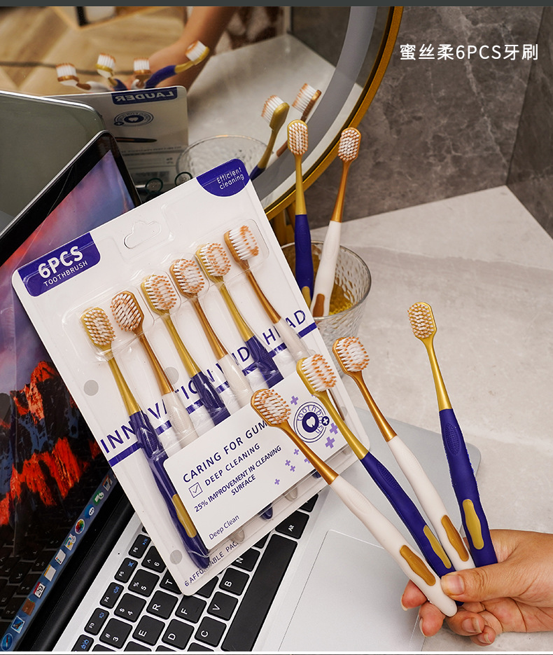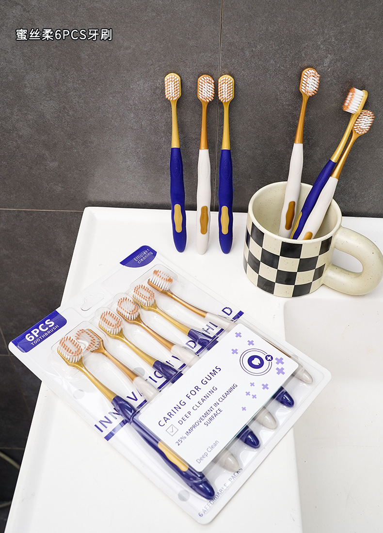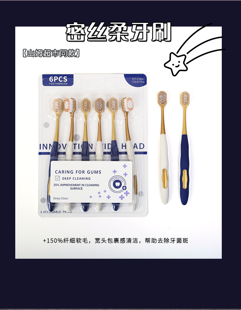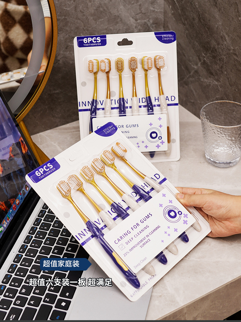 山姆超市同款牙刷 宽头家用6支装男女通用成人软毛牙刷口腔护理