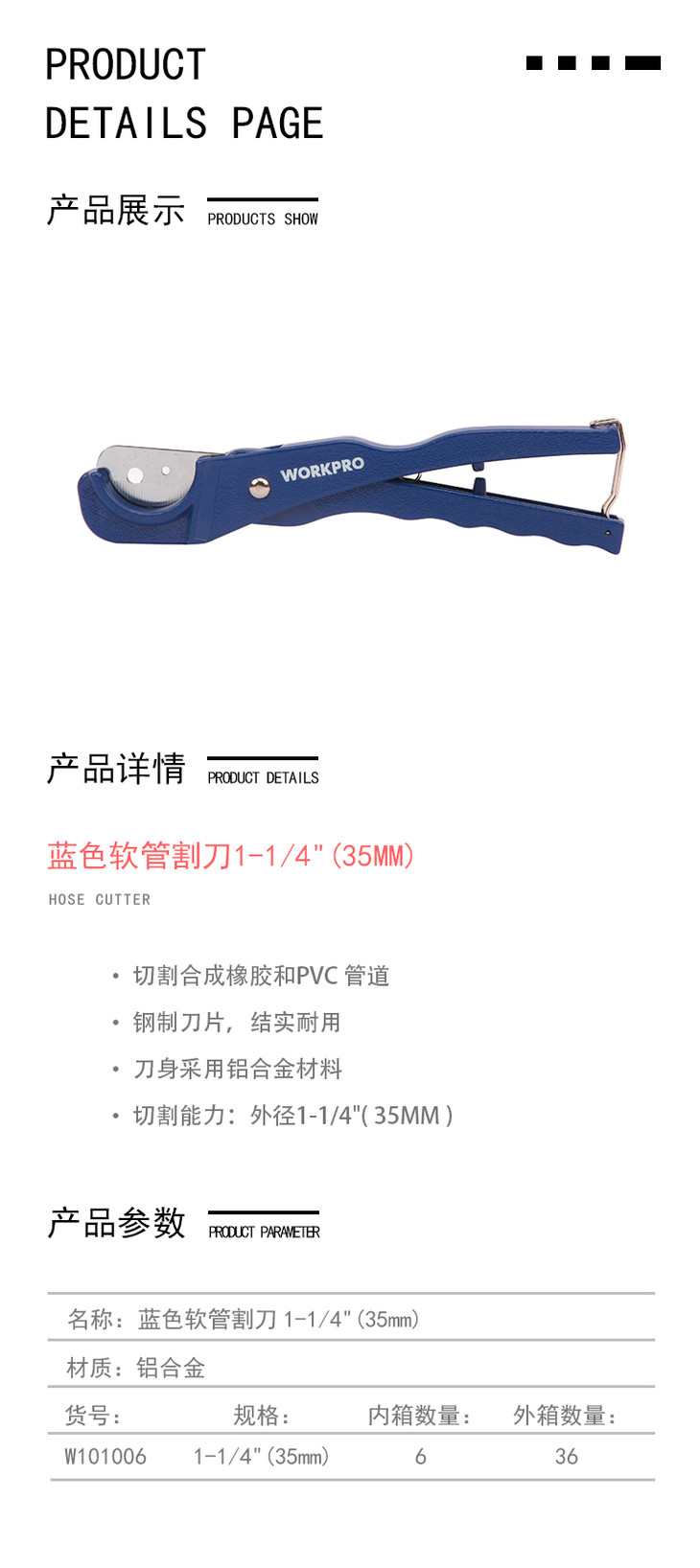 W101006万克宝蓝色软管割刀(35mm)