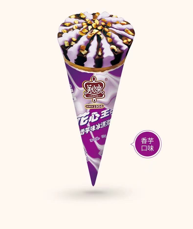 【秒杀10元4个】美怡乐花心王子脆筒冰淇淋(香芋|朱古力|香草|榴莲)65G
