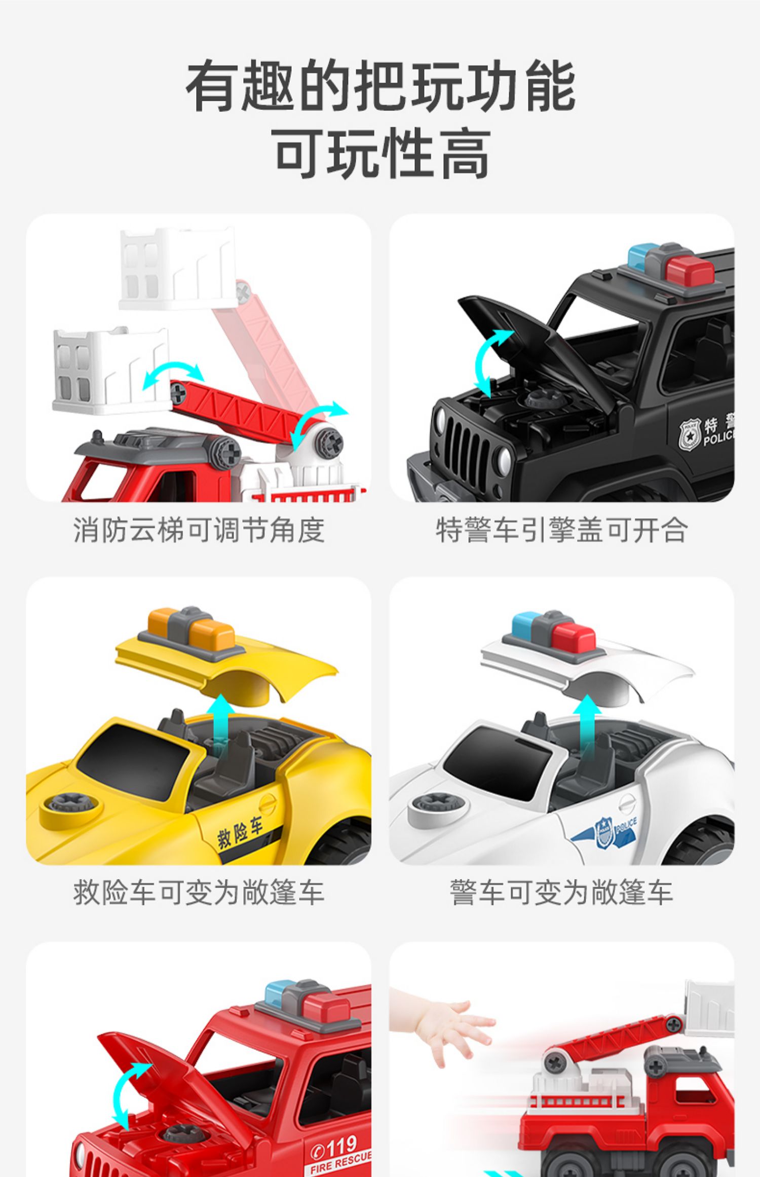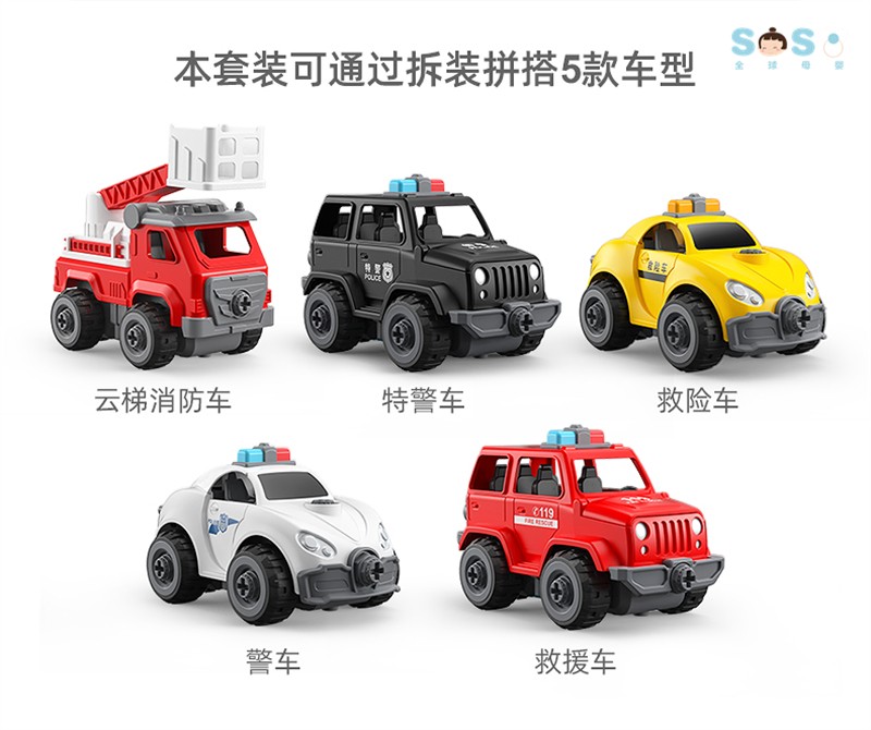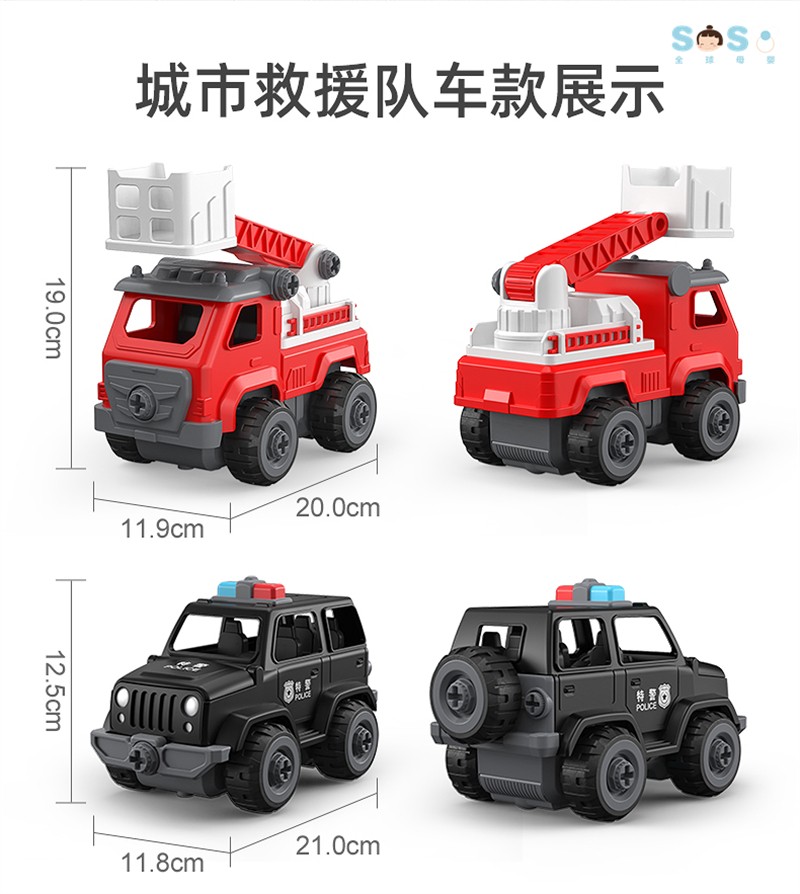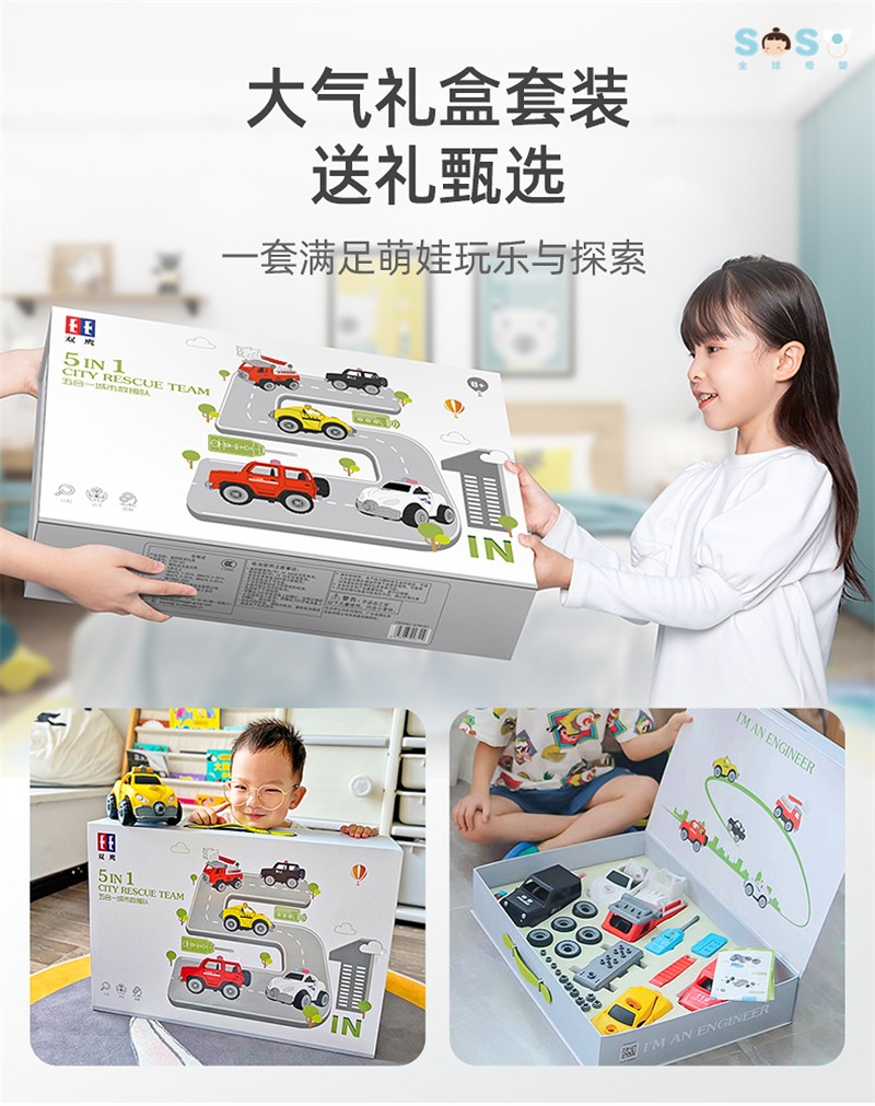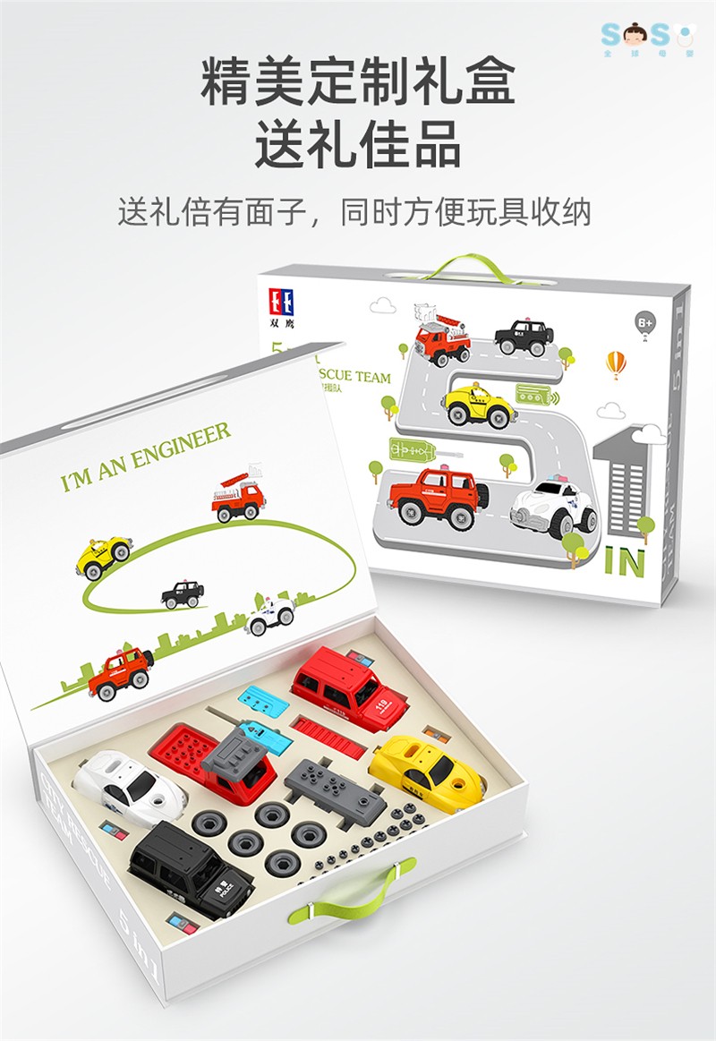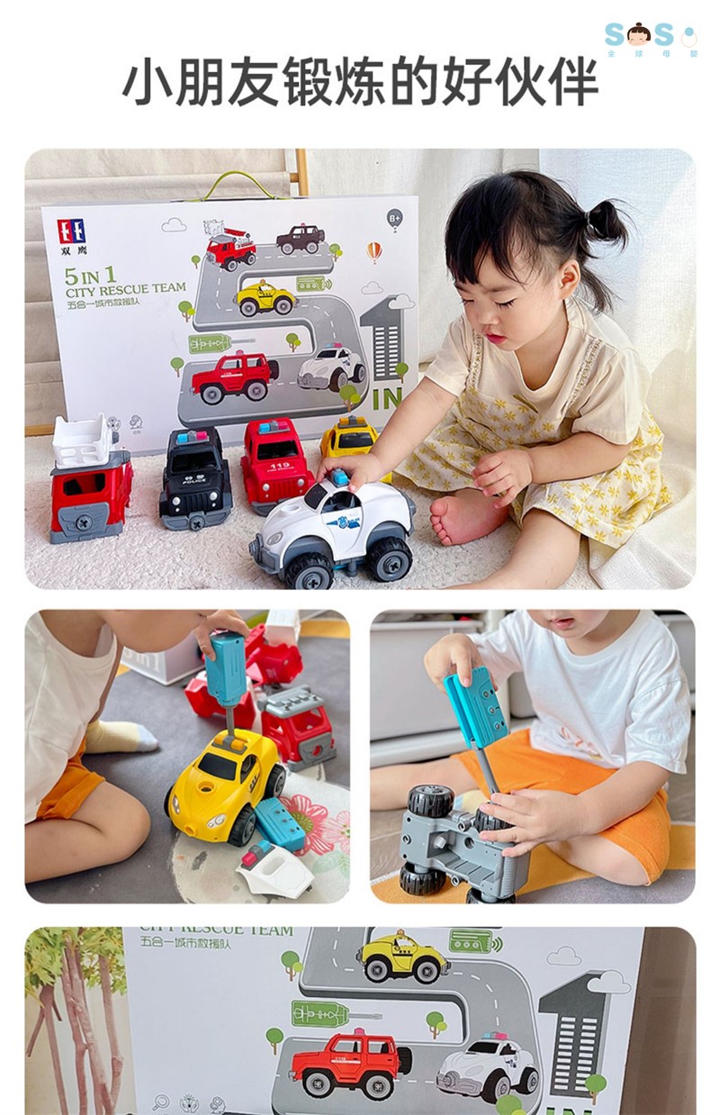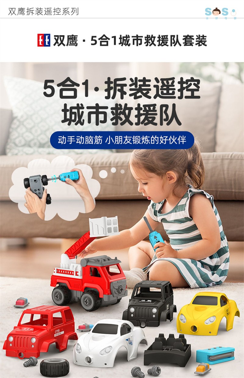 双鹰遥控城市救援队汽车套装 儿童玩具可拆装5合1礼盒