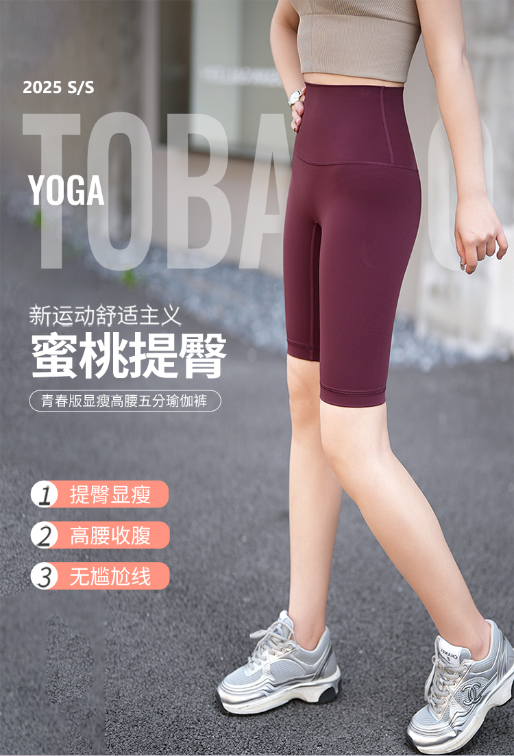 一恋•普拉提 2025春季新款裸感高腰骑行裤户外运动五分裤EAD41039