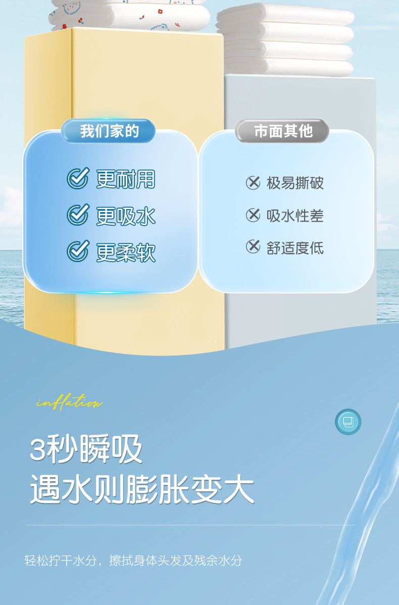 【新年福利!5条独立包装!】一次性浴巾,旅行必备。柔软亲肤,加大加厚,不怕湿水。独立包装,便携速干。出行好伙伴,过年必备!