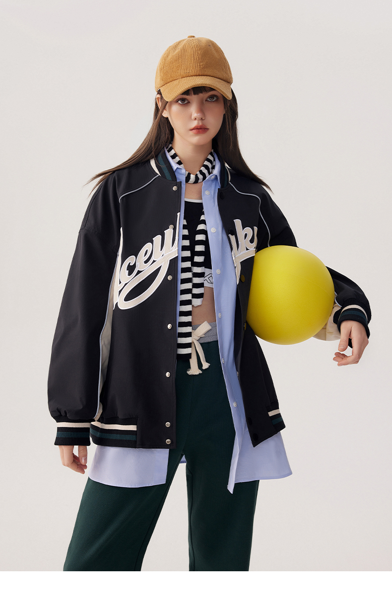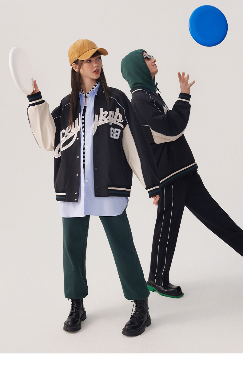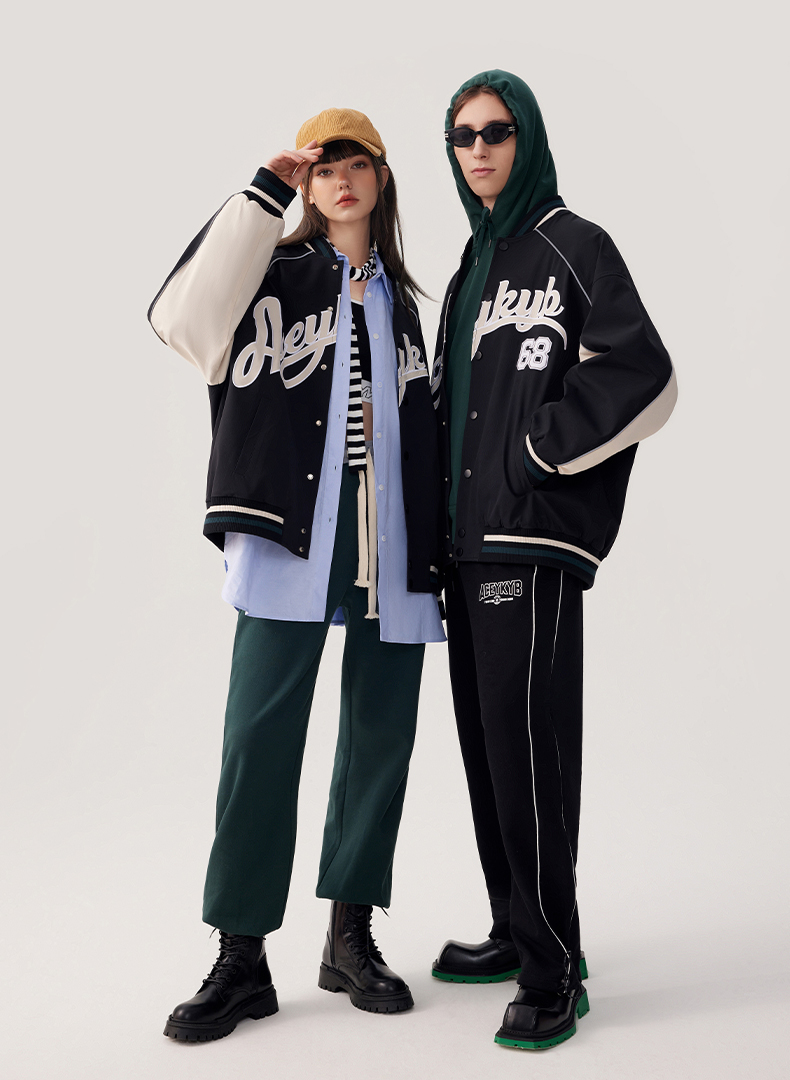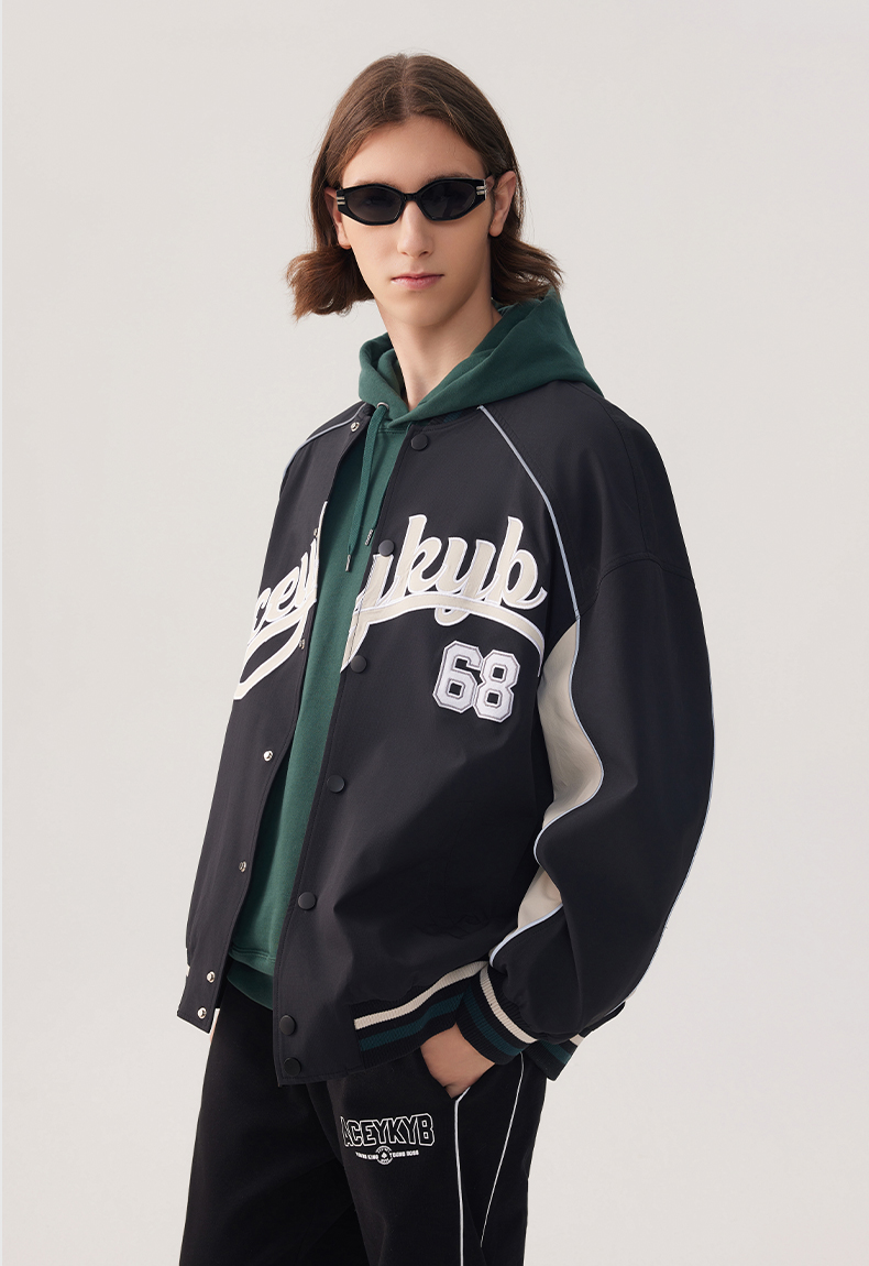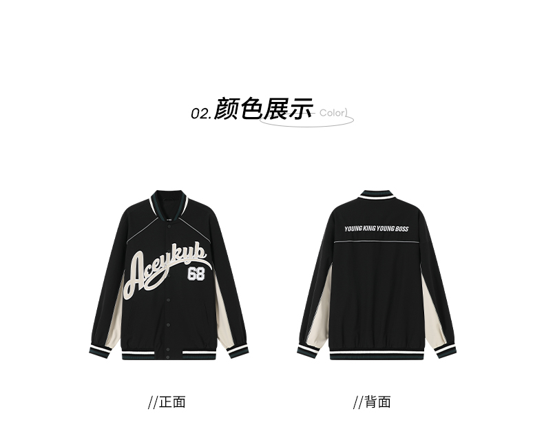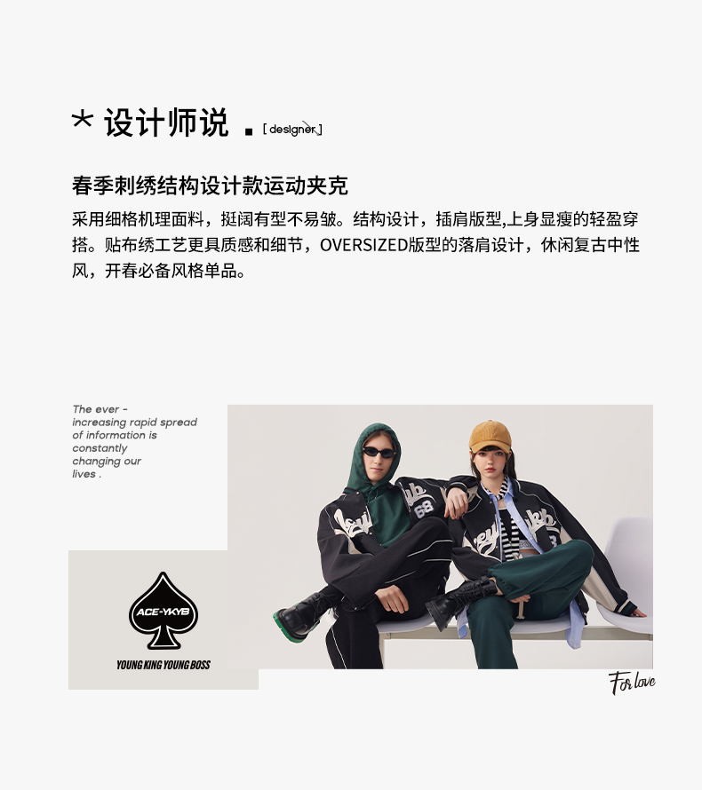 YKYB2025春季新款外套字母印花长袖休闲宽松拉链男女同款夹克