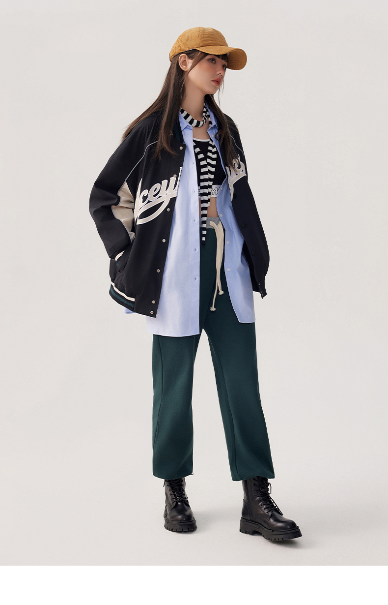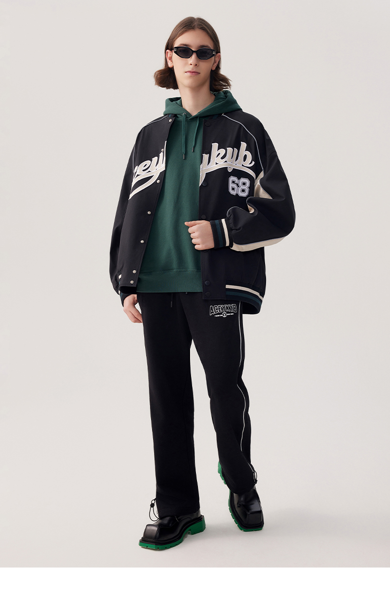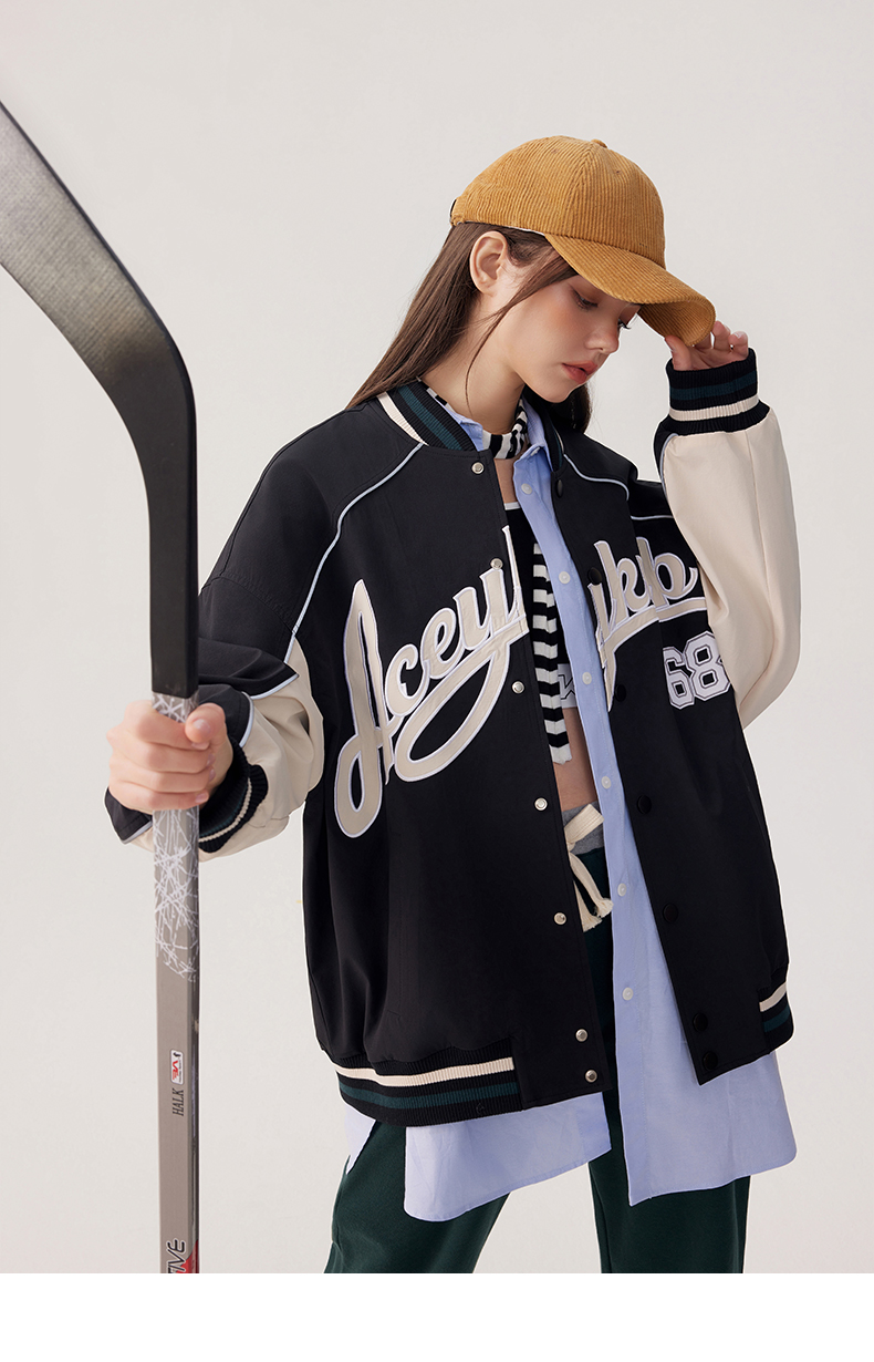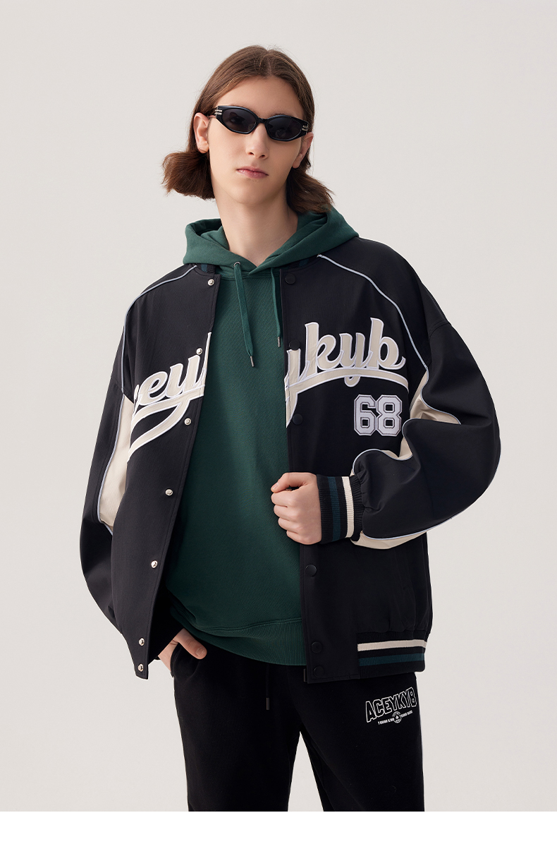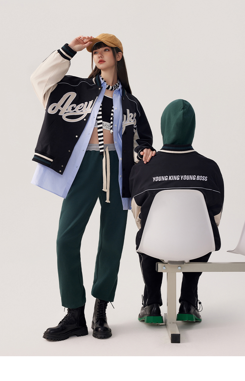 YKYB2025春季新款外套字母印花长袖休闲宽松拉链男女同款夹克