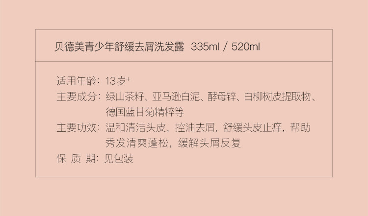 贝德美青少年舒缓去屑洗发水520ml