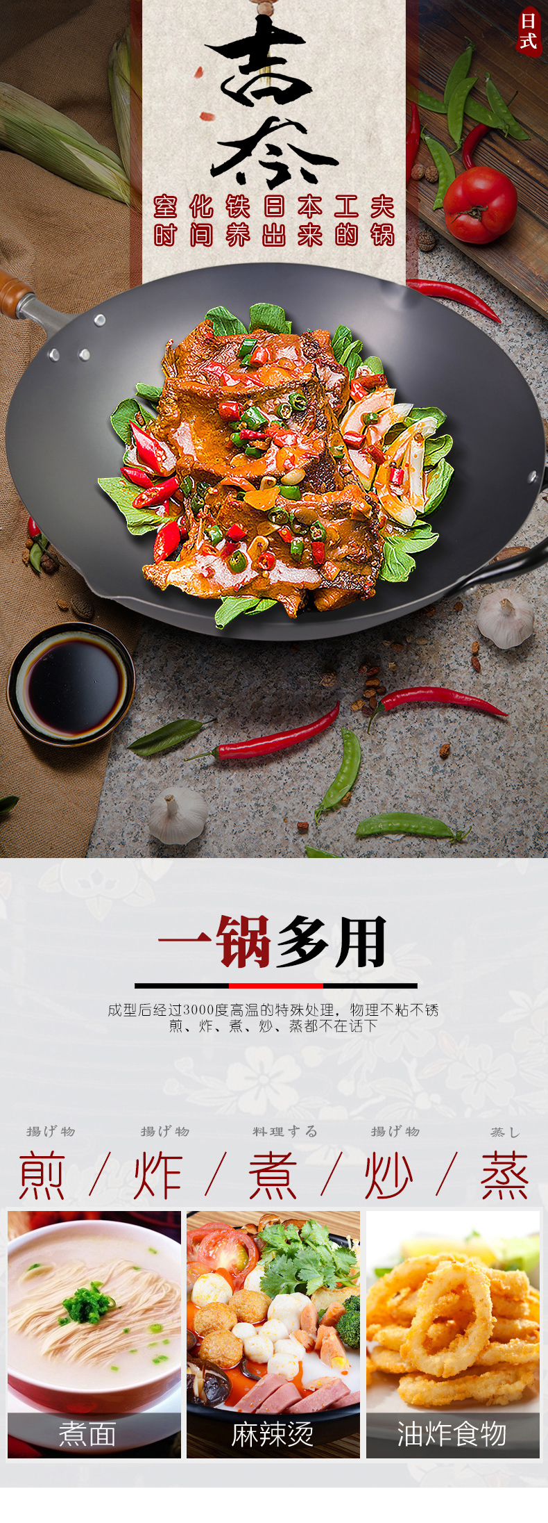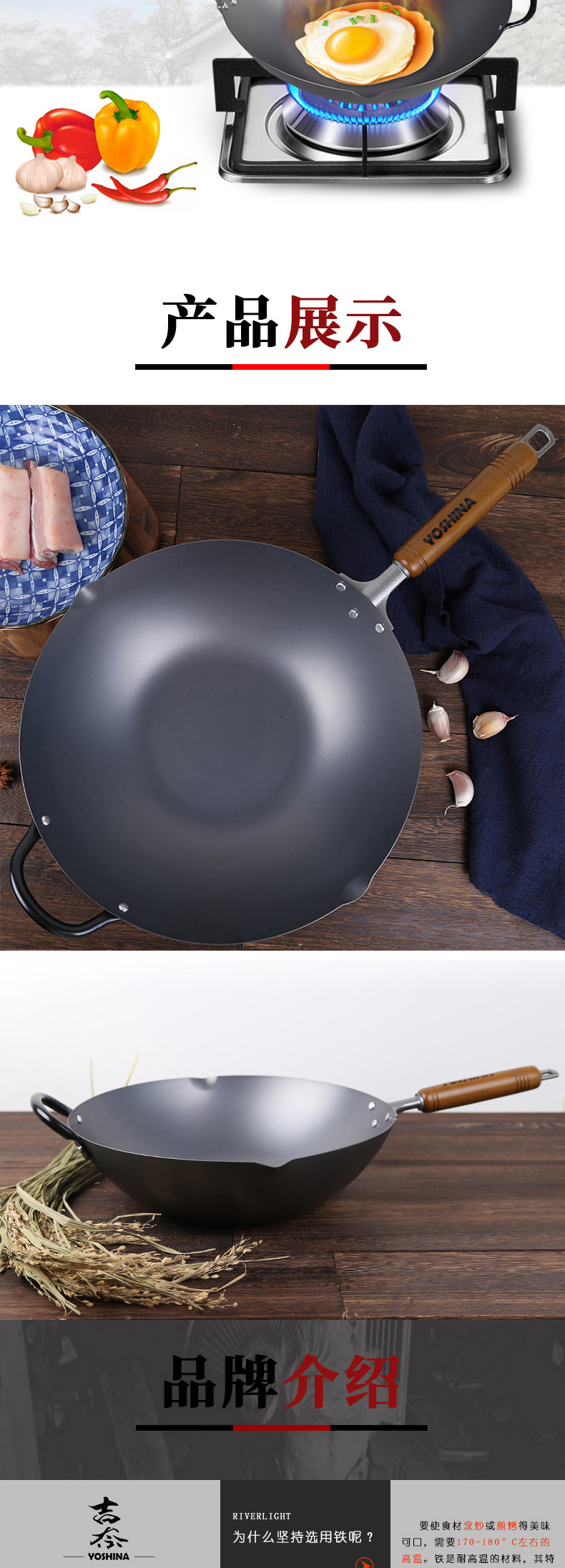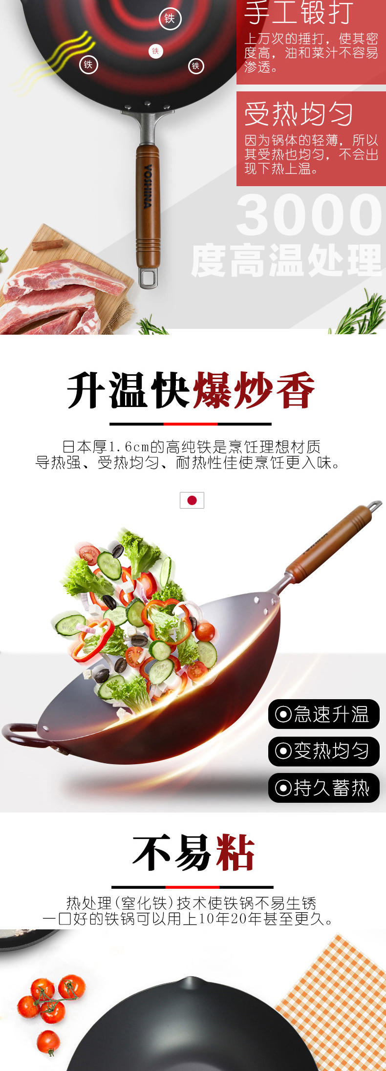 99%高纯度精铁 不易生锈 | YOSHINA吉奈 日本熟铁炒锅30cm 升温快爆炒香 [福利品]