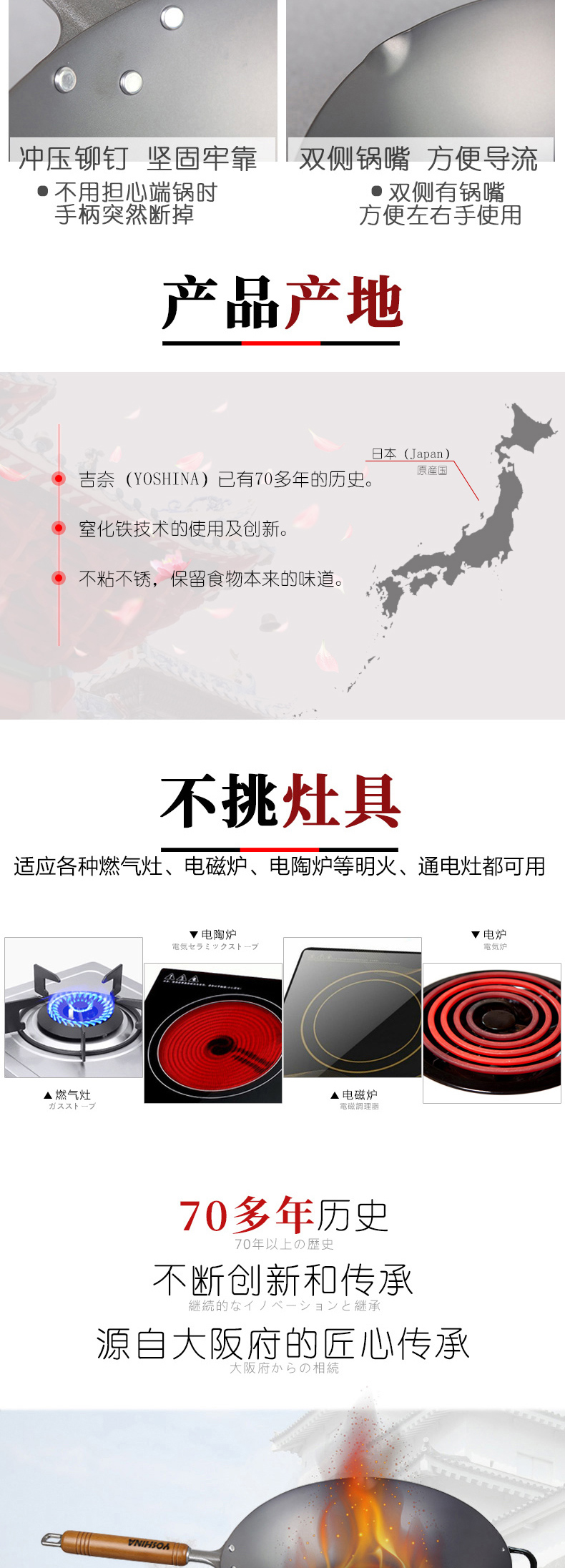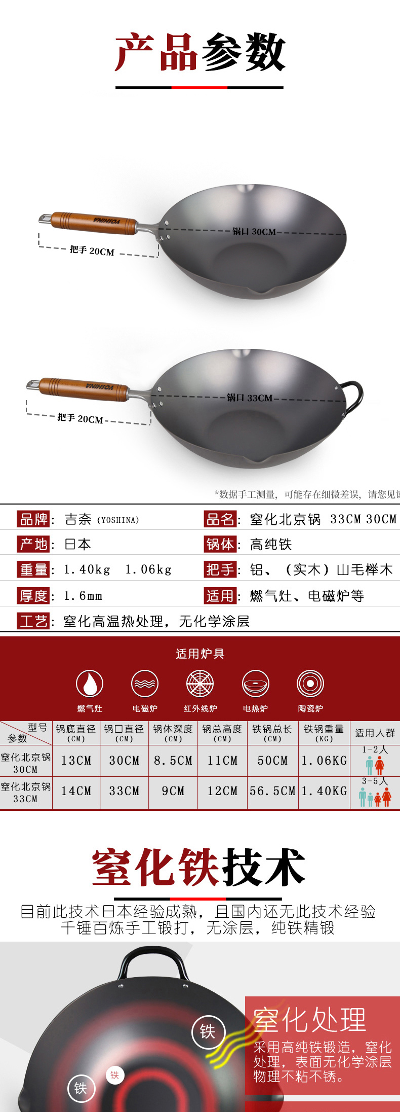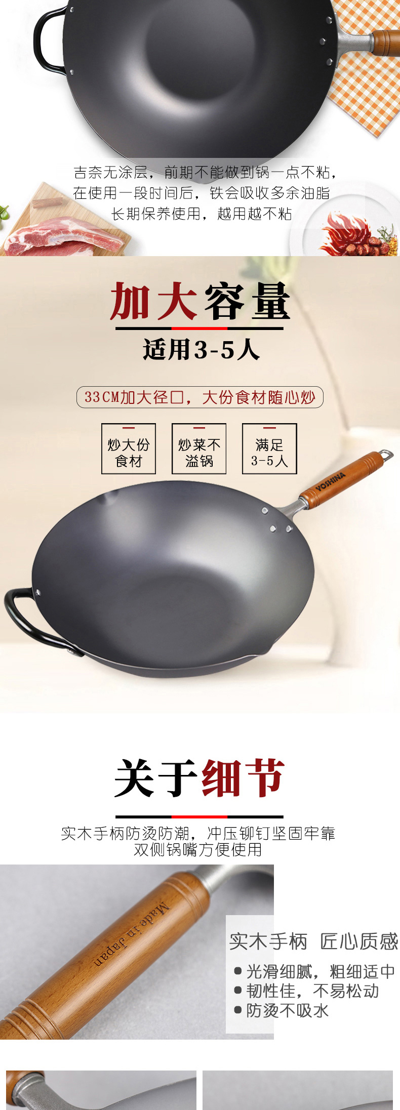99%高纯度精铁 不易生锈 | YOSHINA吉奈 日本熟铁炒锅30cm 升温快爆炒香 [福利品]
