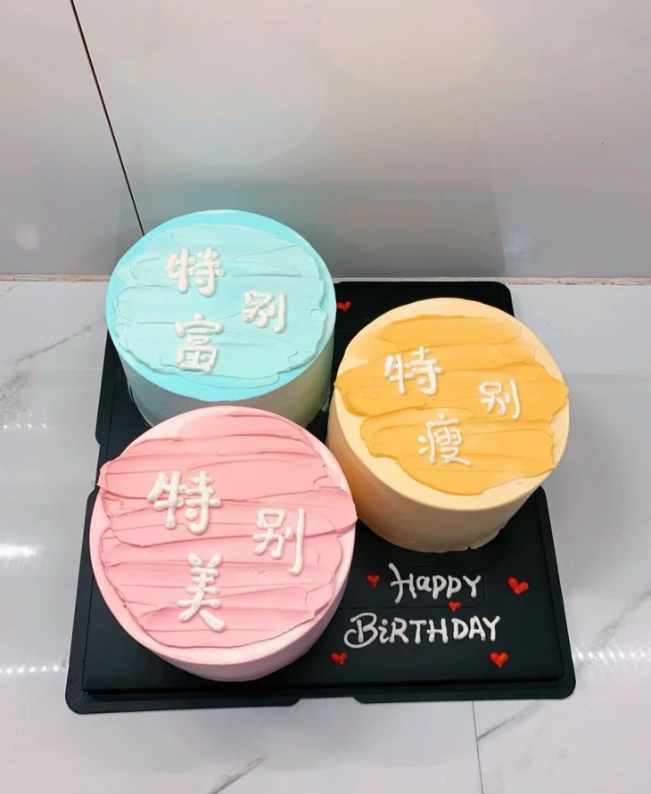 三拼蛋糕(默认为三个五寸蛋糕)适合8-10人吃,文字可以改备注