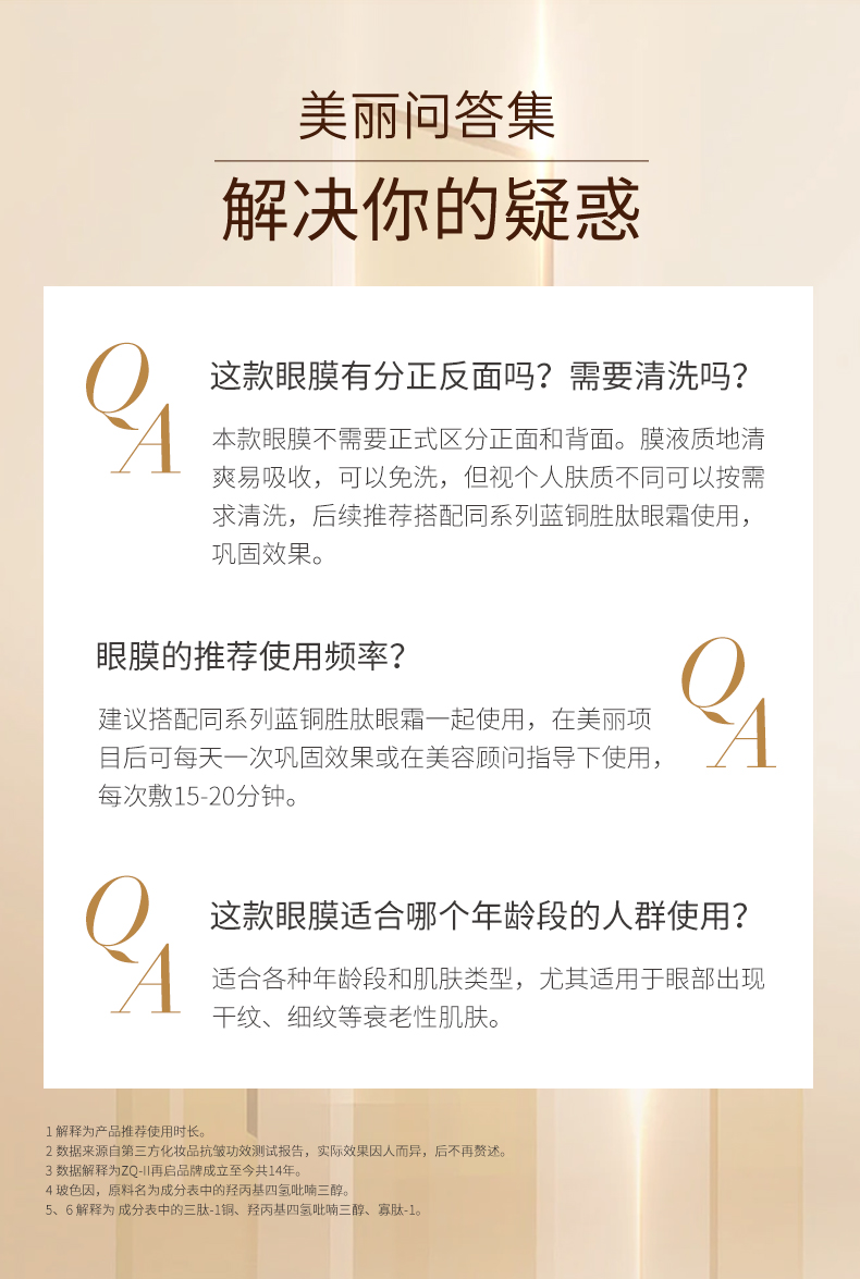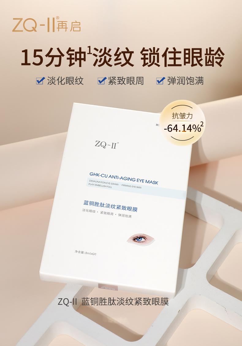【积分兑换!限量抢购】 ZQ-II再启 蓝铜胜肽眼膜 8ml*6片/盒 淡化眼纹 紧致眼周 弹润饱满