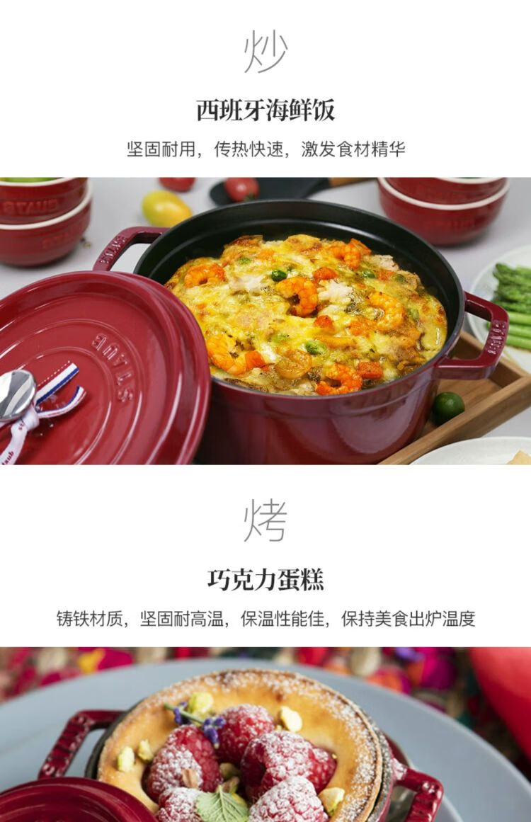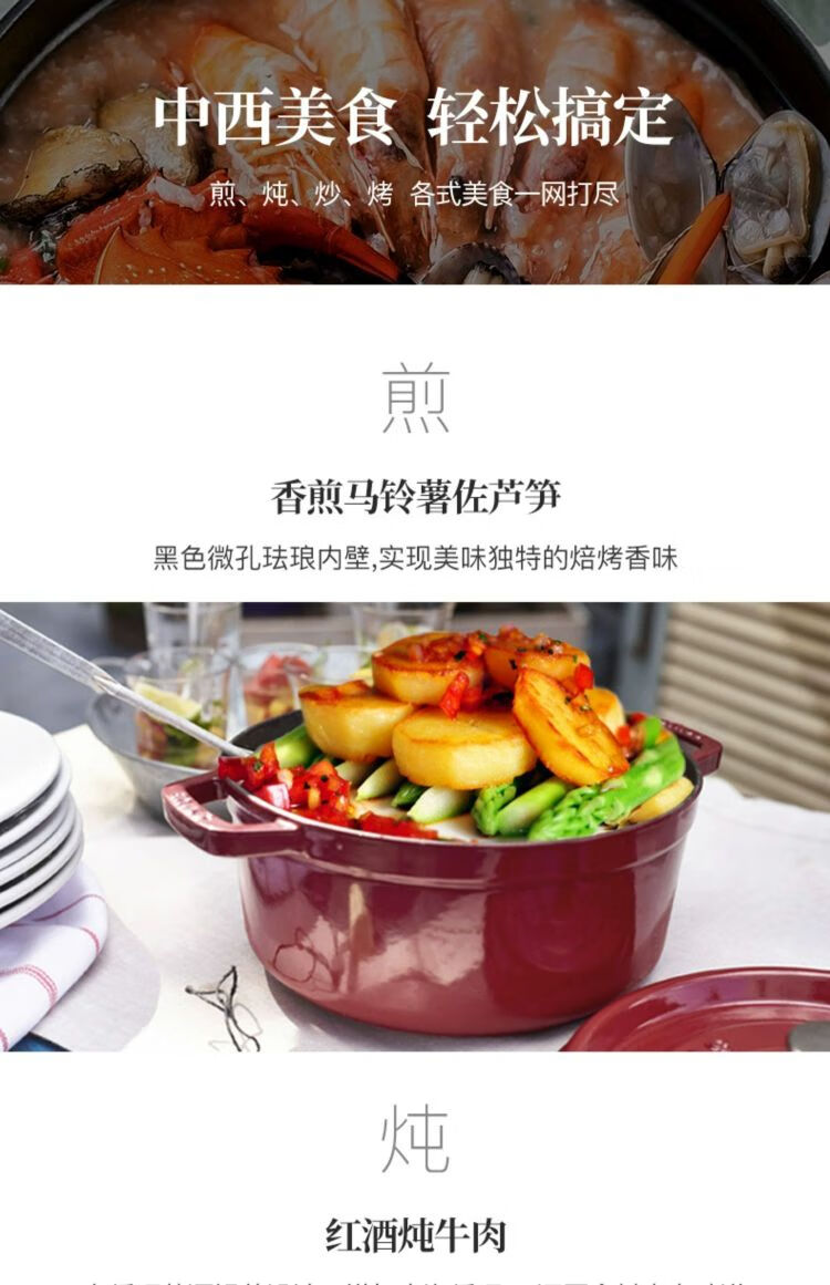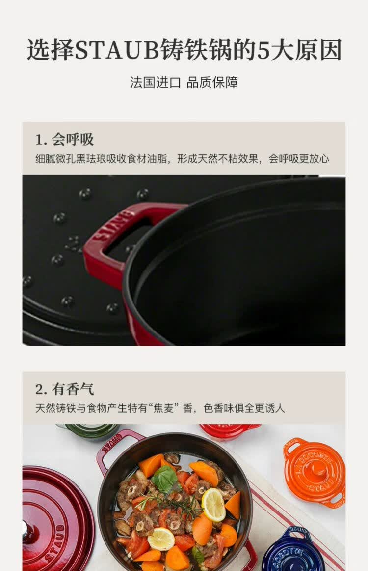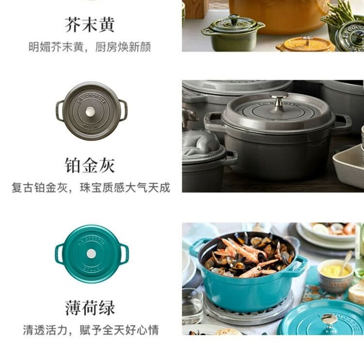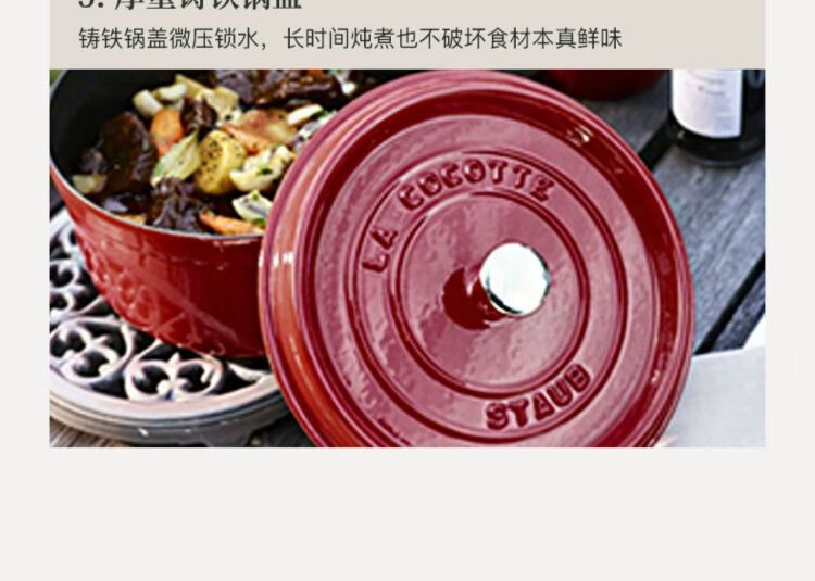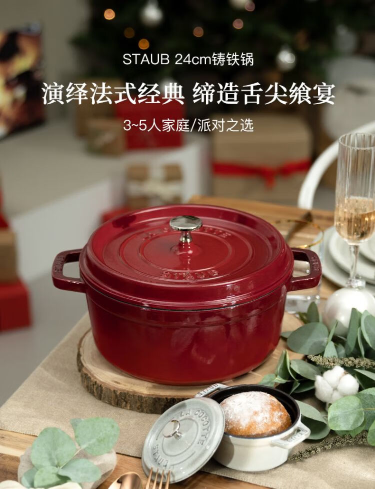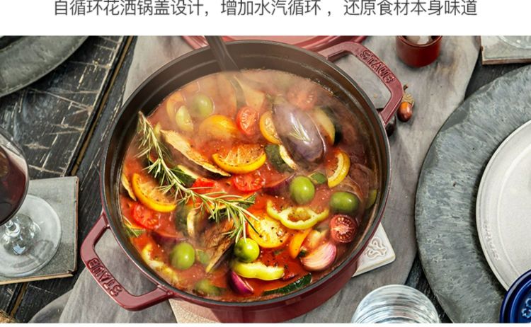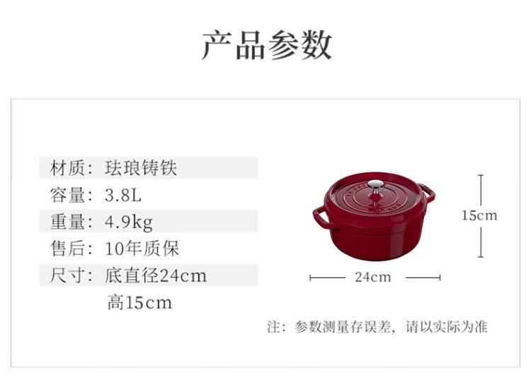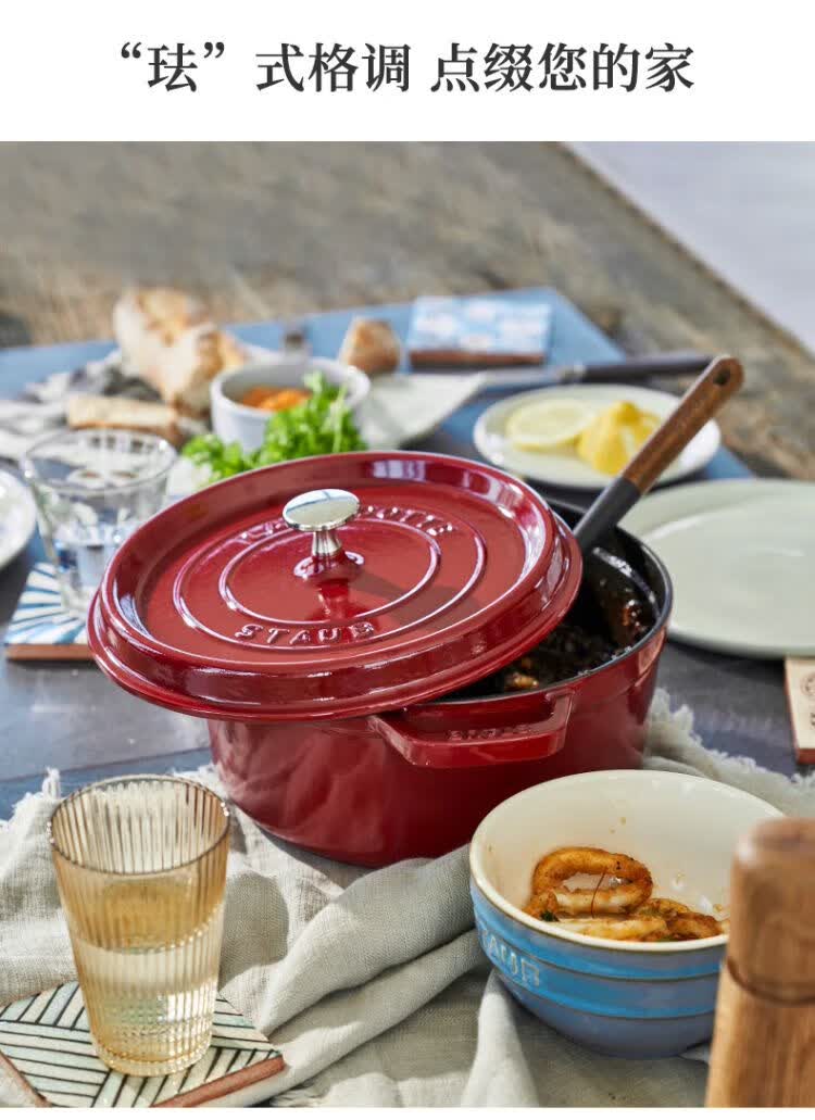 双立人-STAUB 圆形炖锅24cm(樱桃红/酒红色/松露白/冰蓝/黑色/夜樱粉/桉树色/鼠尾草绿/芥末黄)