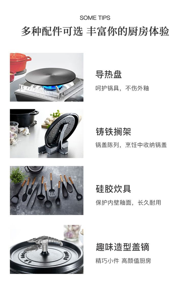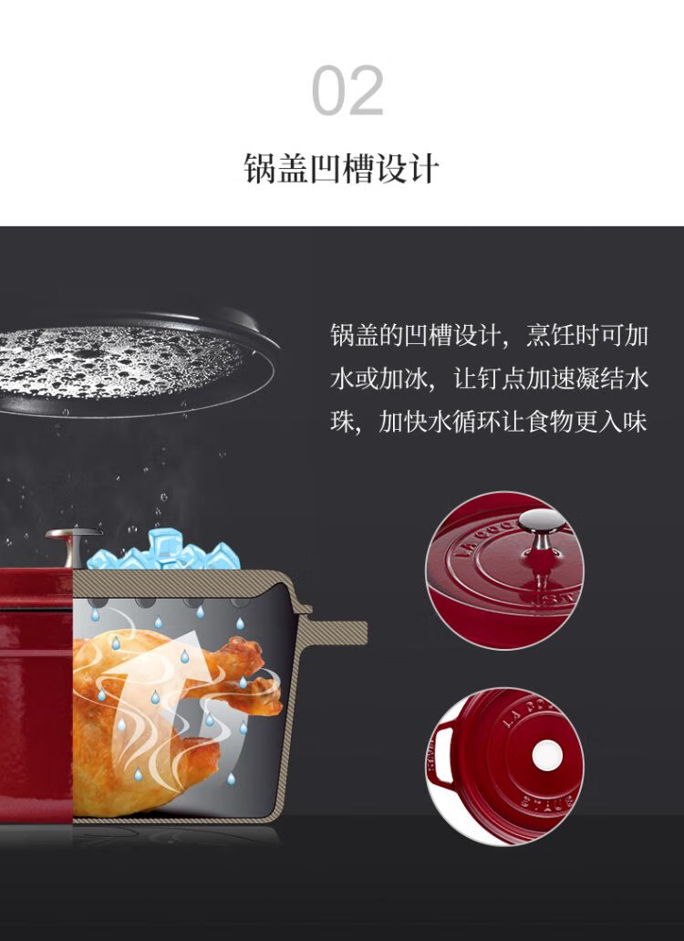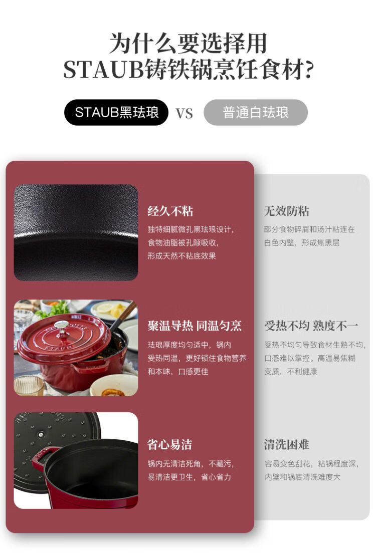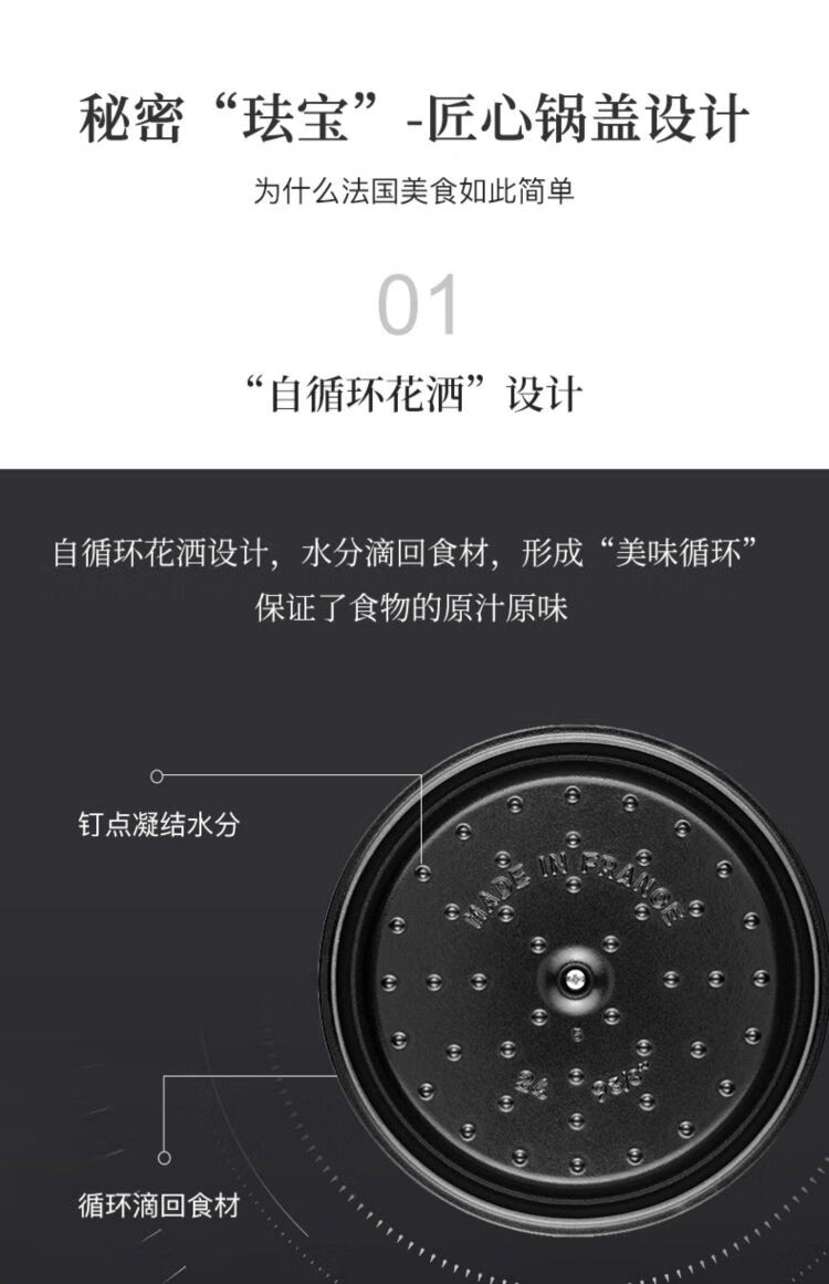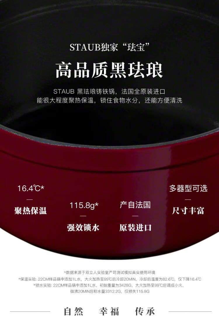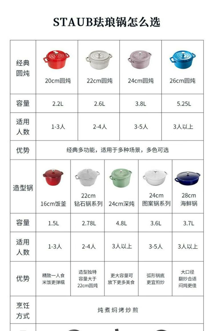 双立人-STAUB 圆形炖锅24cm(樱桃红/酒红色/松露白/冰蓝/黑色/夜樱粉/桉树色/鼠尾草绿/芥末黄)