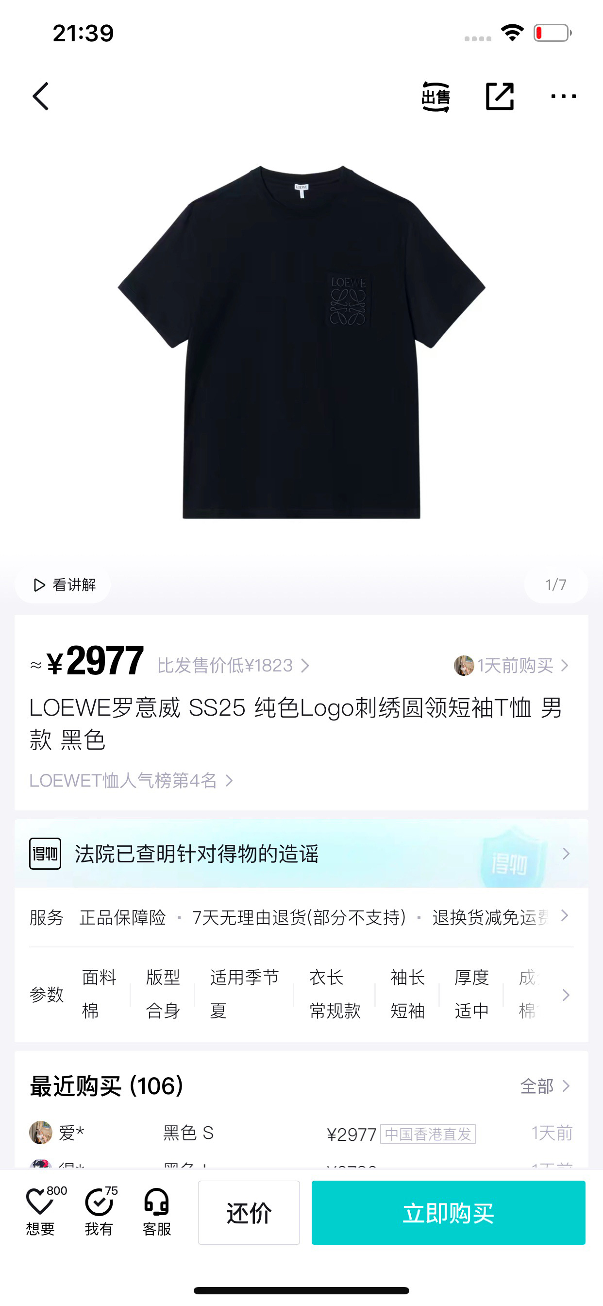 定制高密度精梳全棉面料 成衣洗水增加面料柔顺度 肌肤感舒适感很强 非市场版本 定制75D环保刺绣线(线的光泽感和密度达到原版一致水准 原版开发细节 全衣身按原版1:1定制开发 男女同款出货 下单可选配品牌包装 SIZE:XS-L