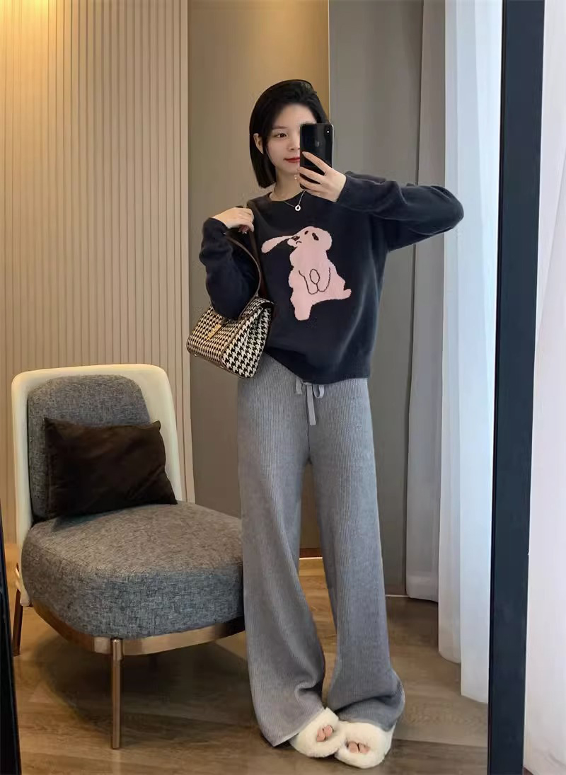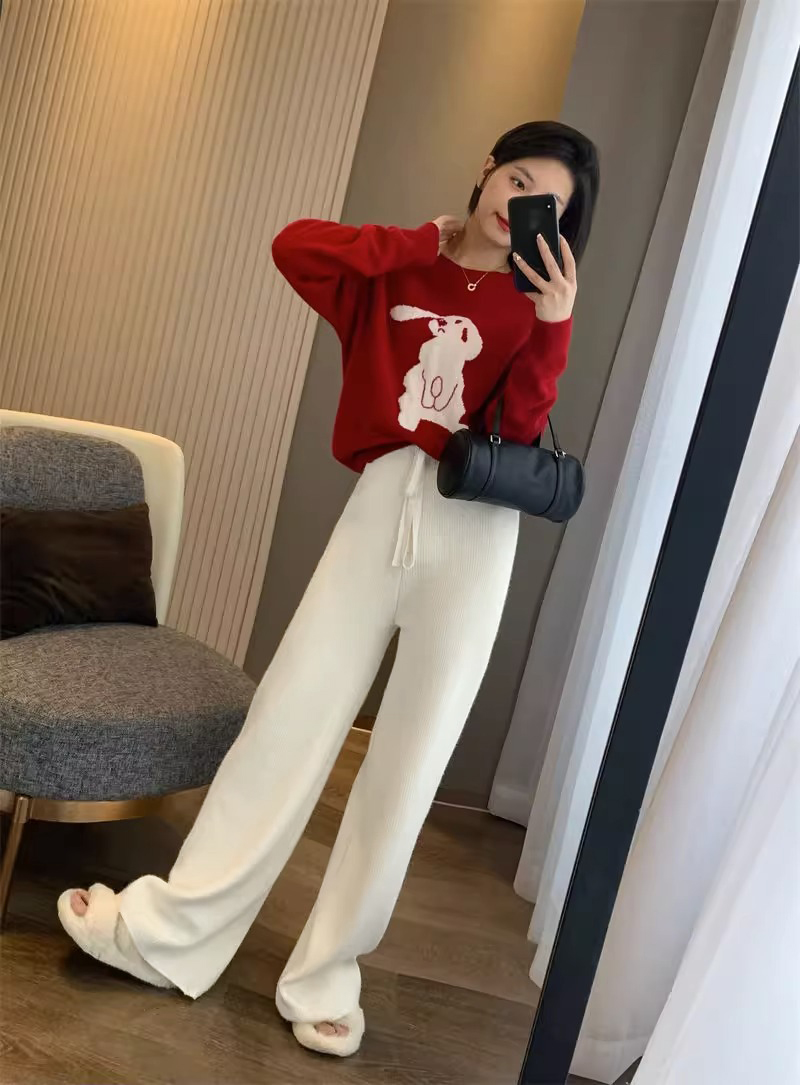 <曾小咸推荐> 高克重加绒加厚保暖阔腿针织裤休闲裤