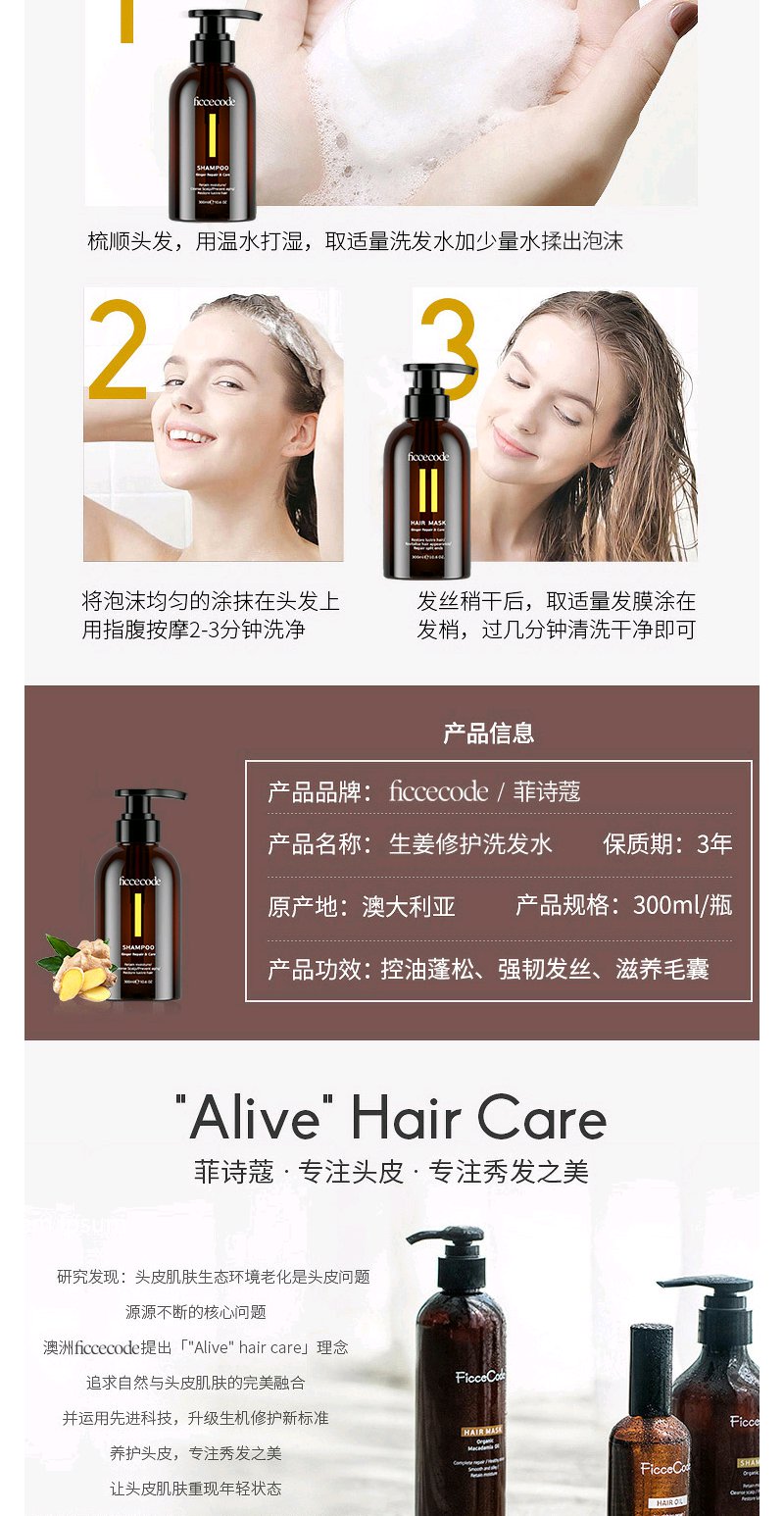 菲诗蔻生姜洗发水澳洲原装进口控油蓬松无硅油柔顺改善毛躁洗发水/发膜300ml