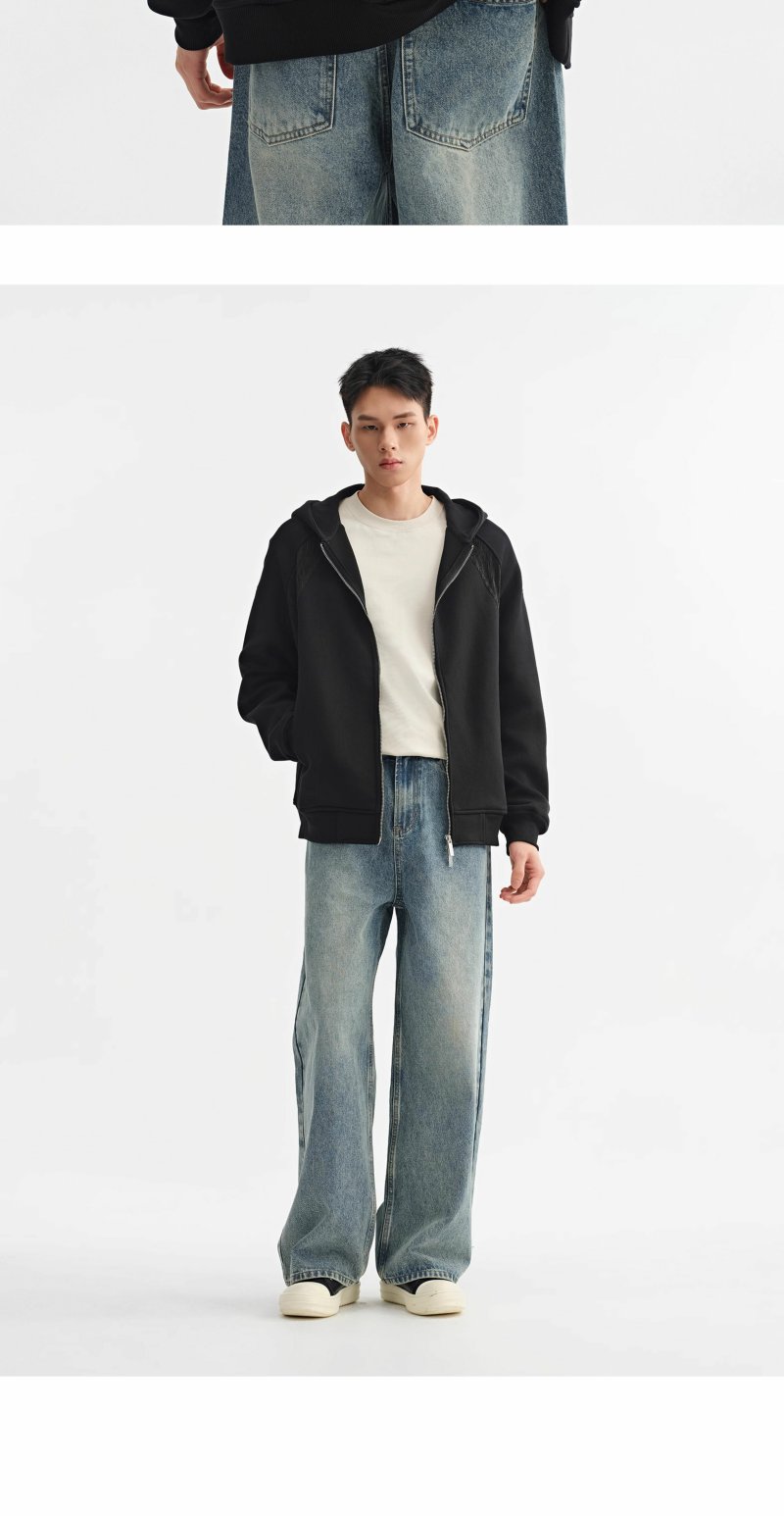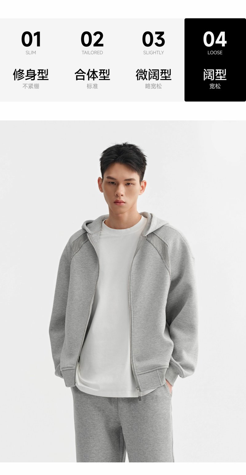 CHINISM赤尘 重磅空气层连帽开衫卫衣男2025秋季简约男士拉链外套