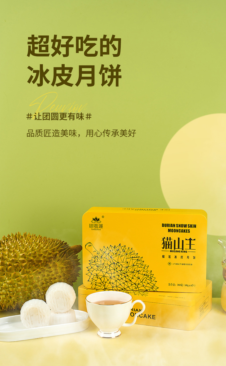 猫山王榴莲冰皮月饼广式月饼榴莲果肉月饼中秋送礼高端礼盒装新款新品