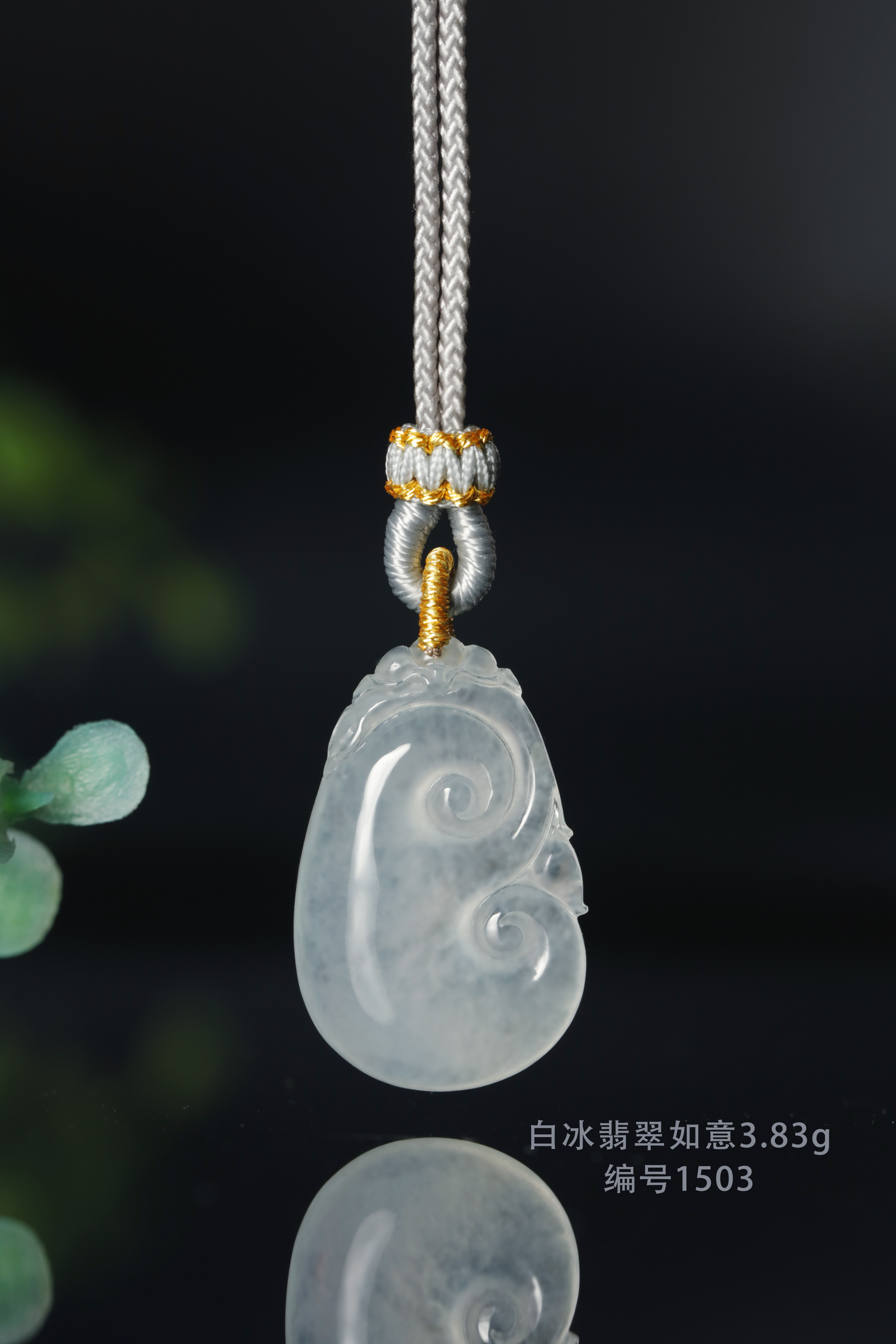 白冰翡翠如意3.83g--编号1503
