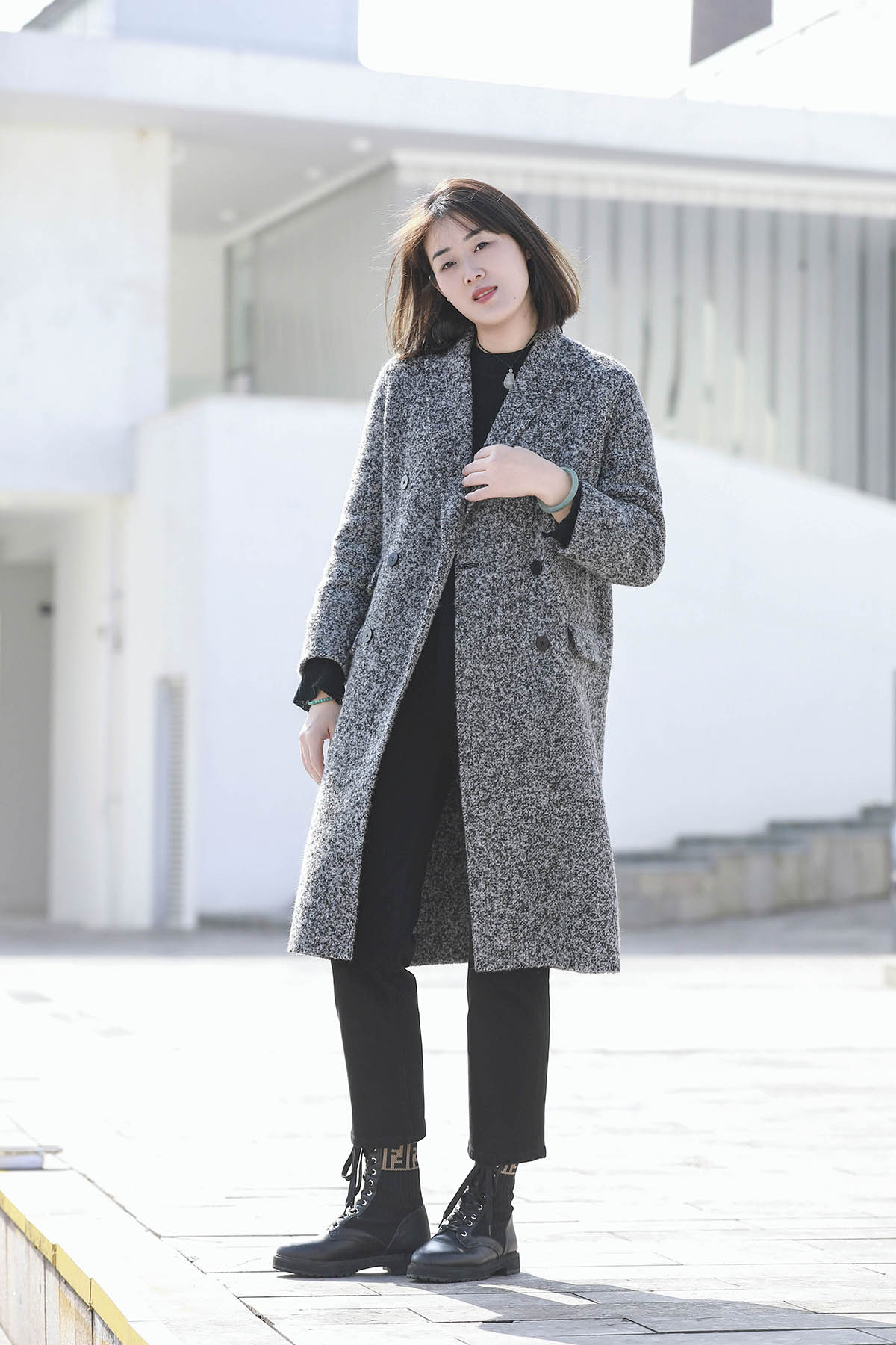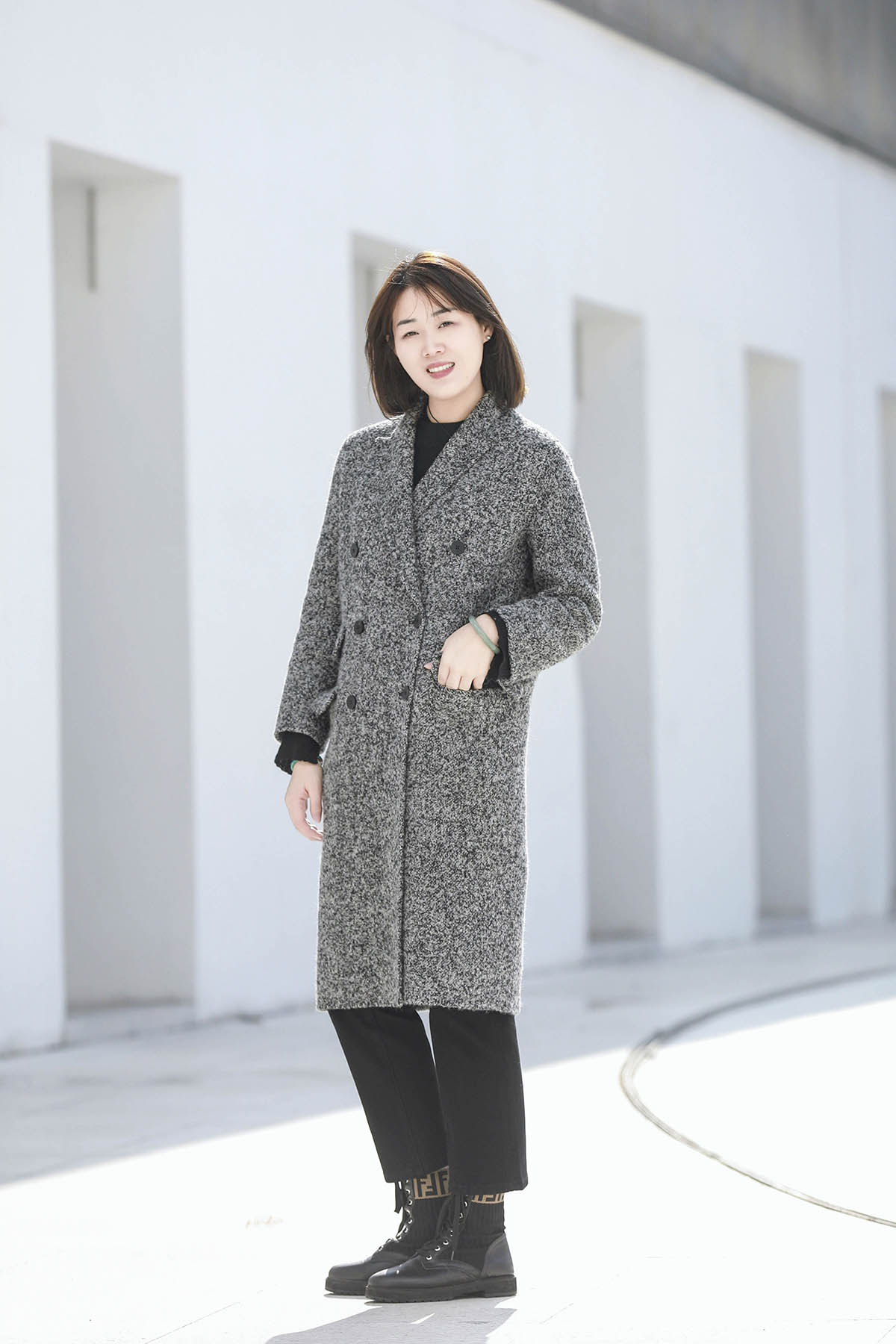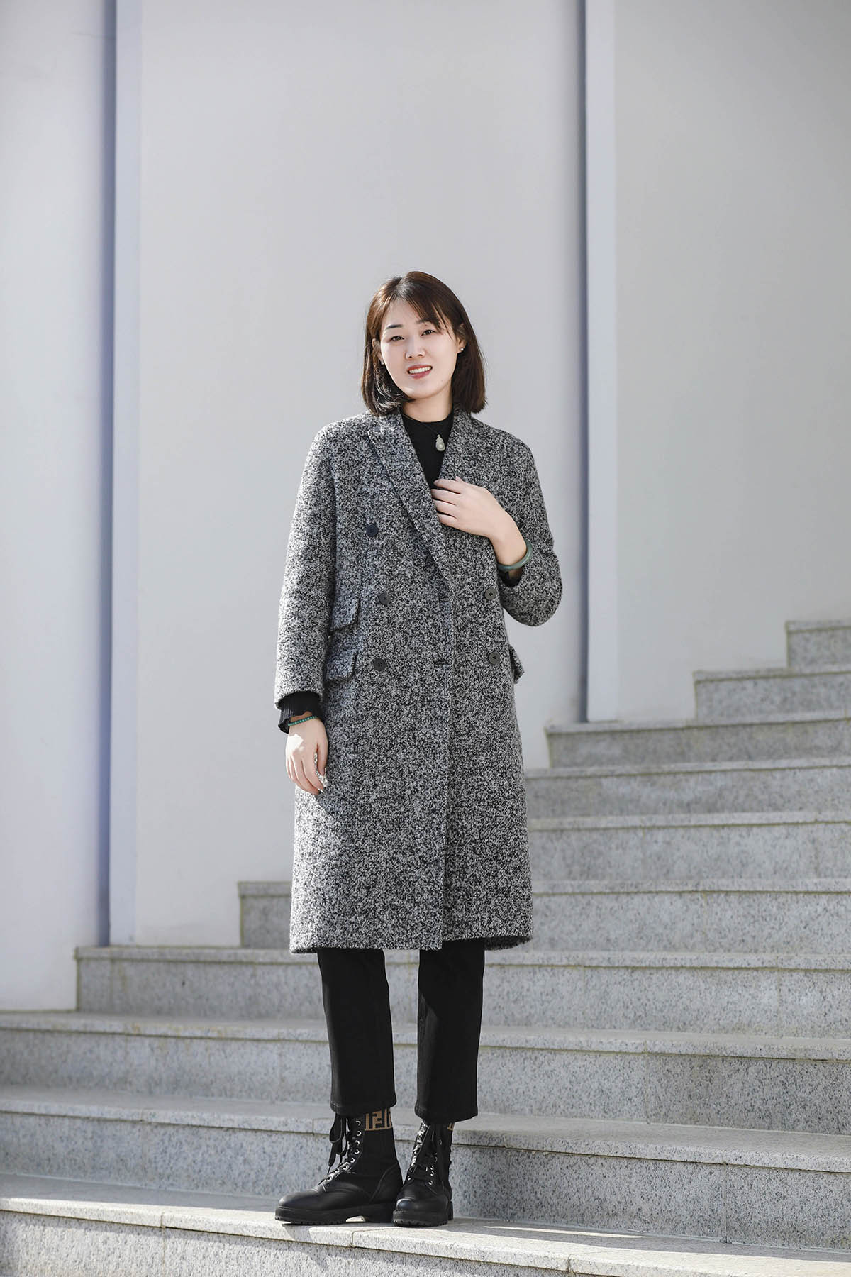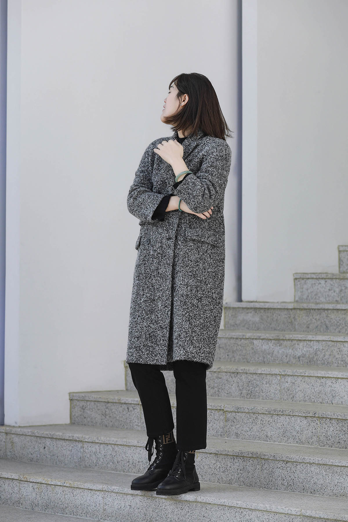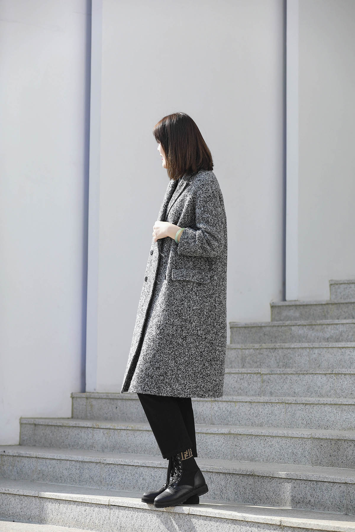 火桐hooton 新年战袍 30羊绒拼色长款大衣