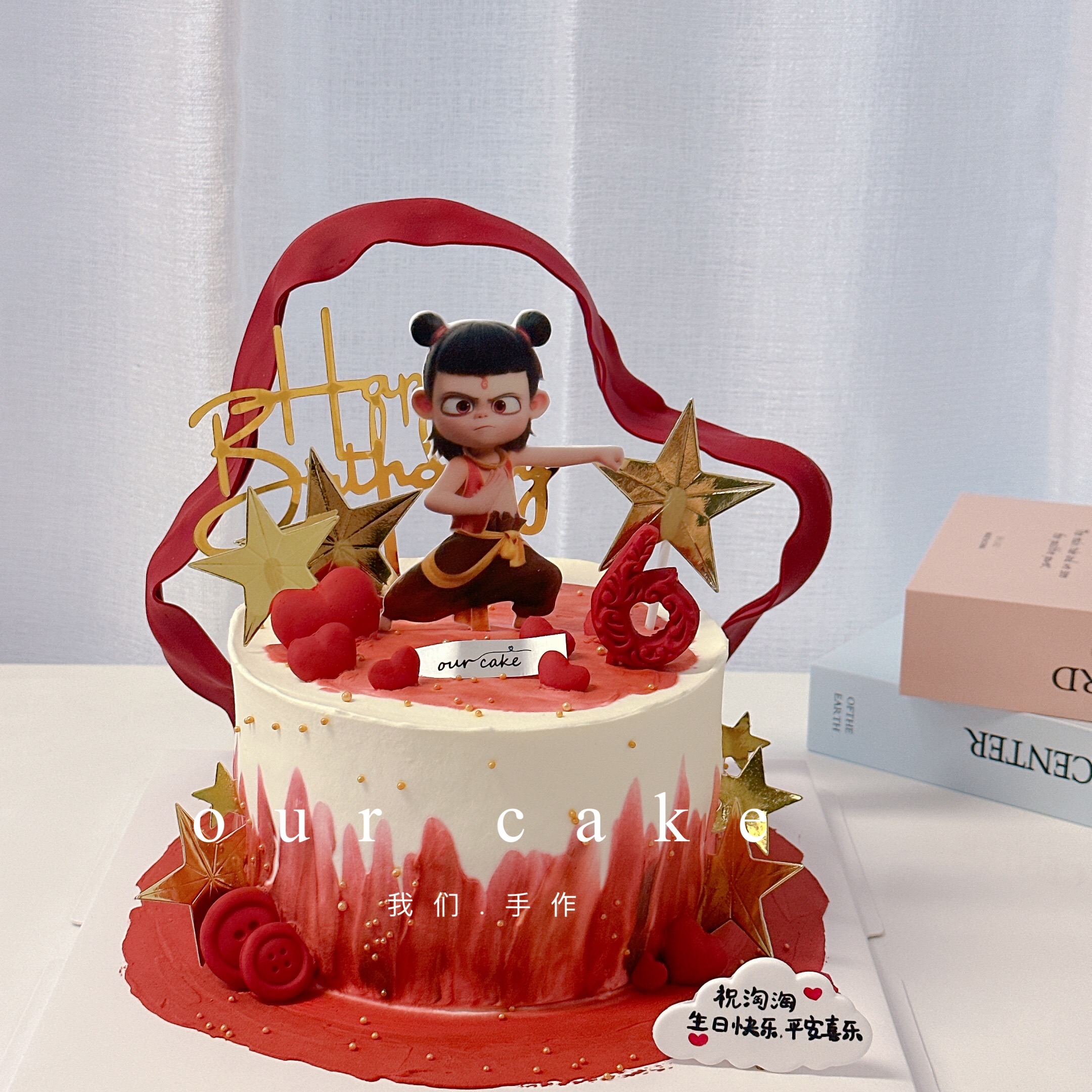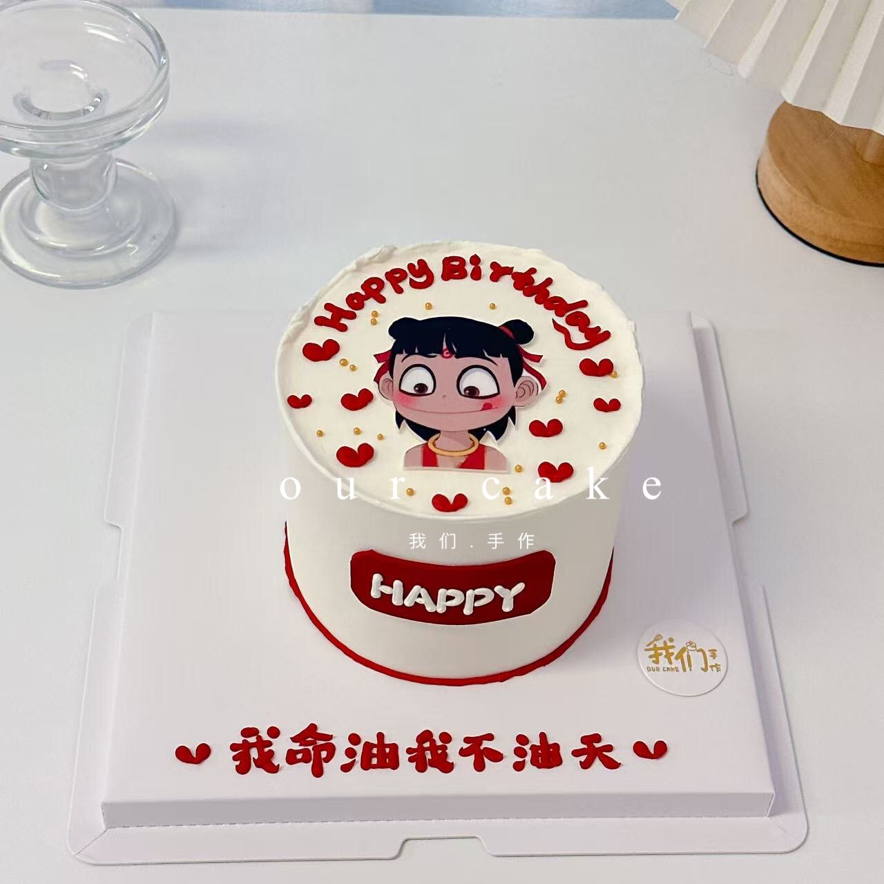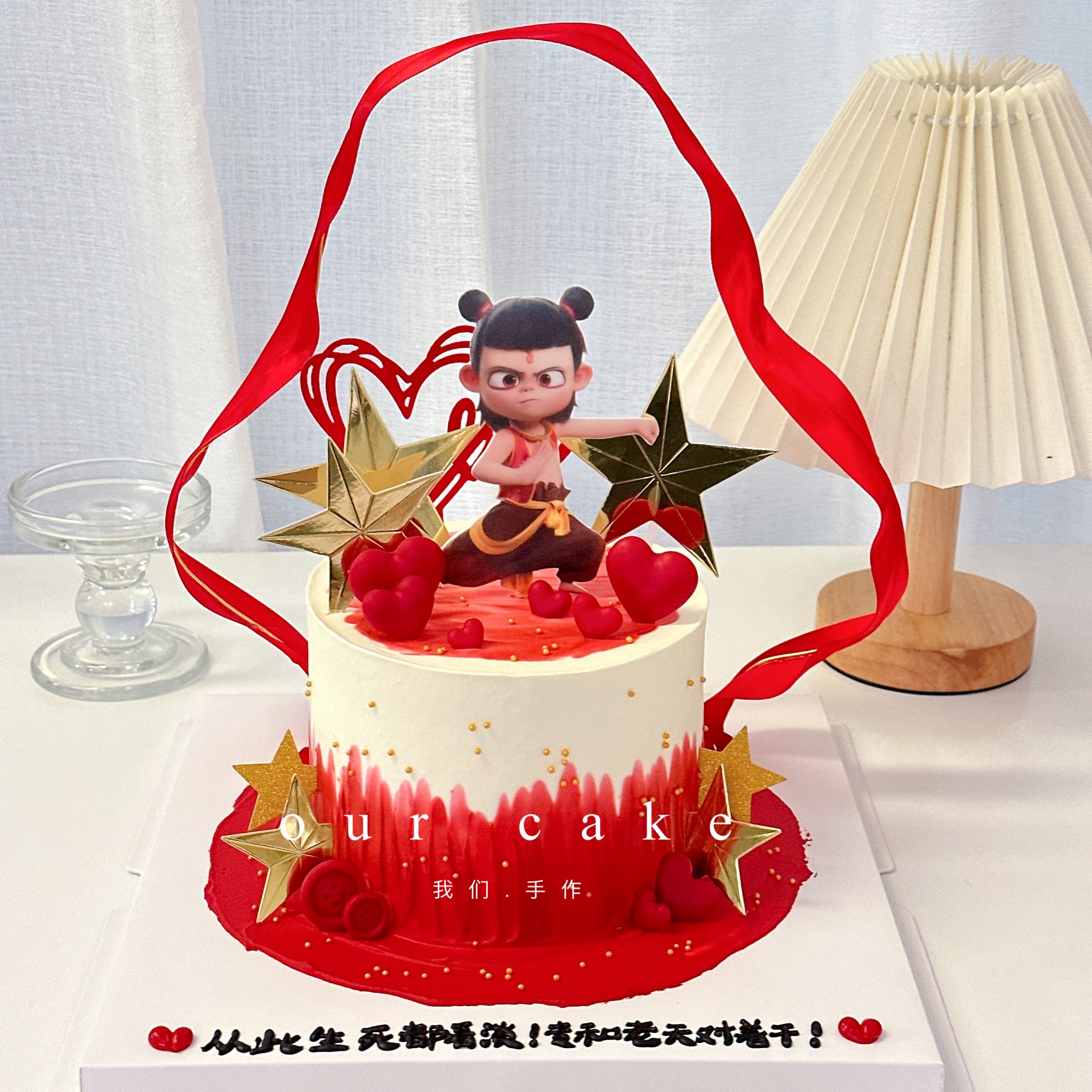糯米纸打印系列~哪吒卡通蛋糕(大红色素偏深介意慎拍)-低糖处理无添加