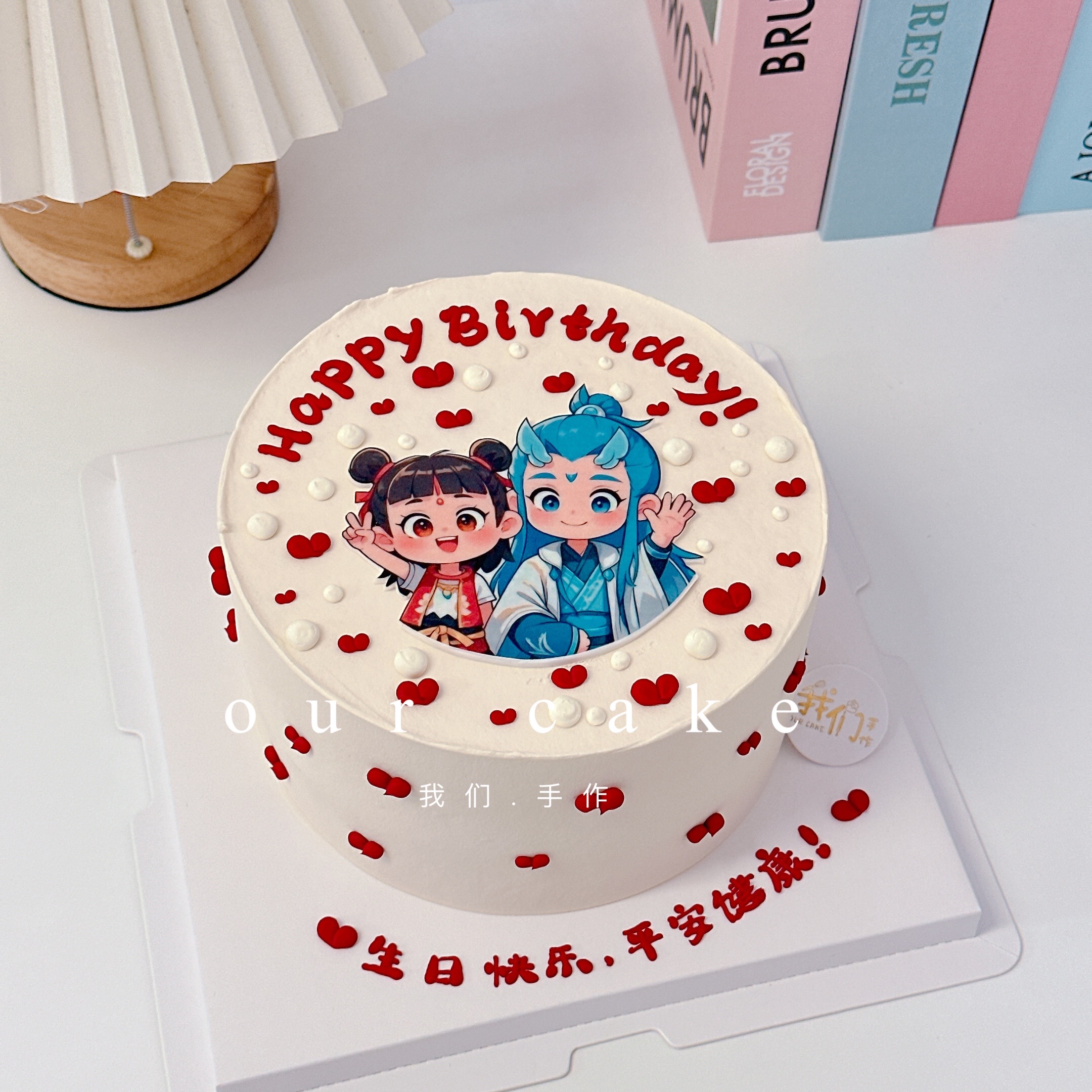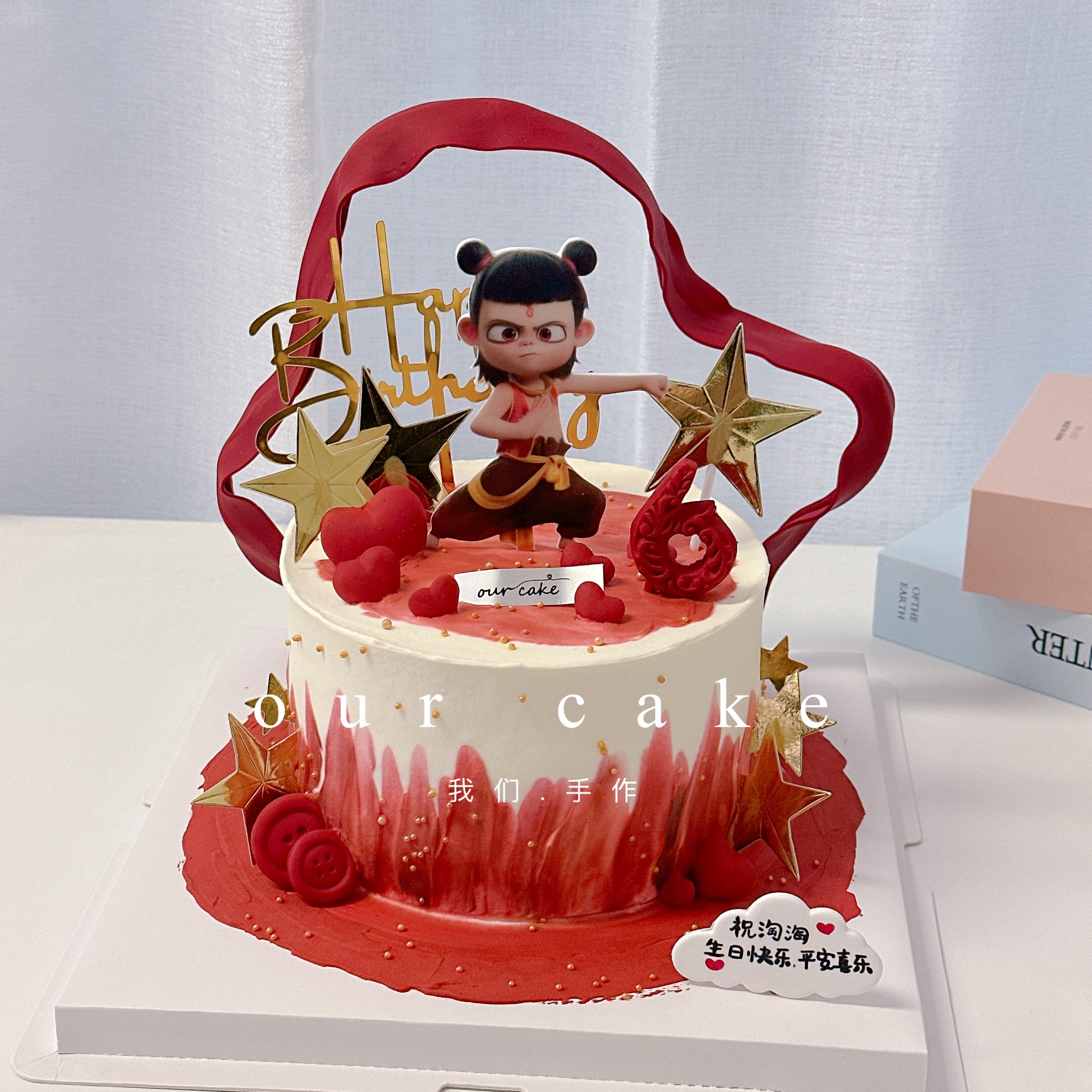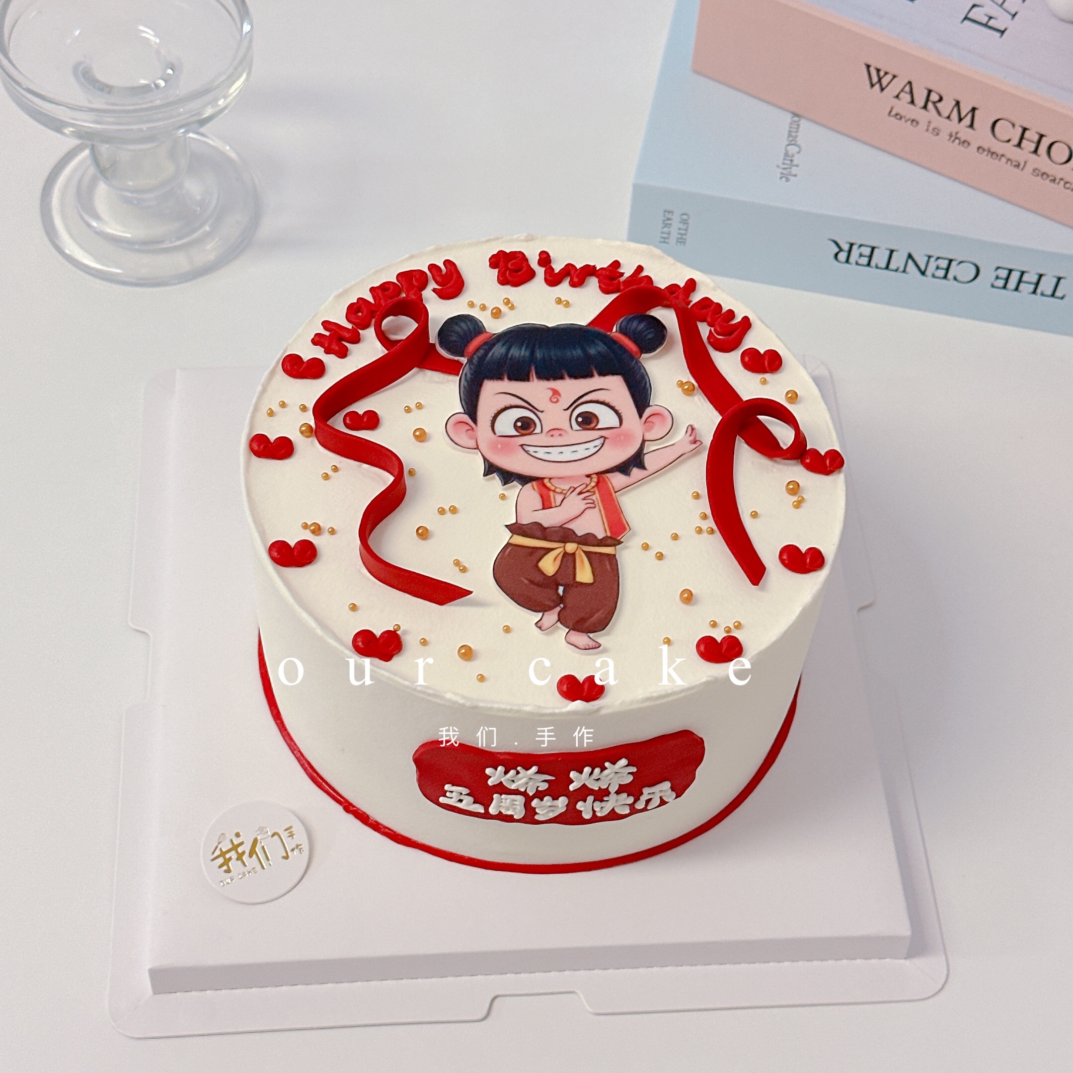 糯米纸打印系列~哪吒卡通蛋糕(大红色素偏深介意慎拍)-低糖处理无添加