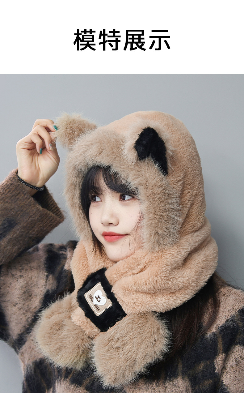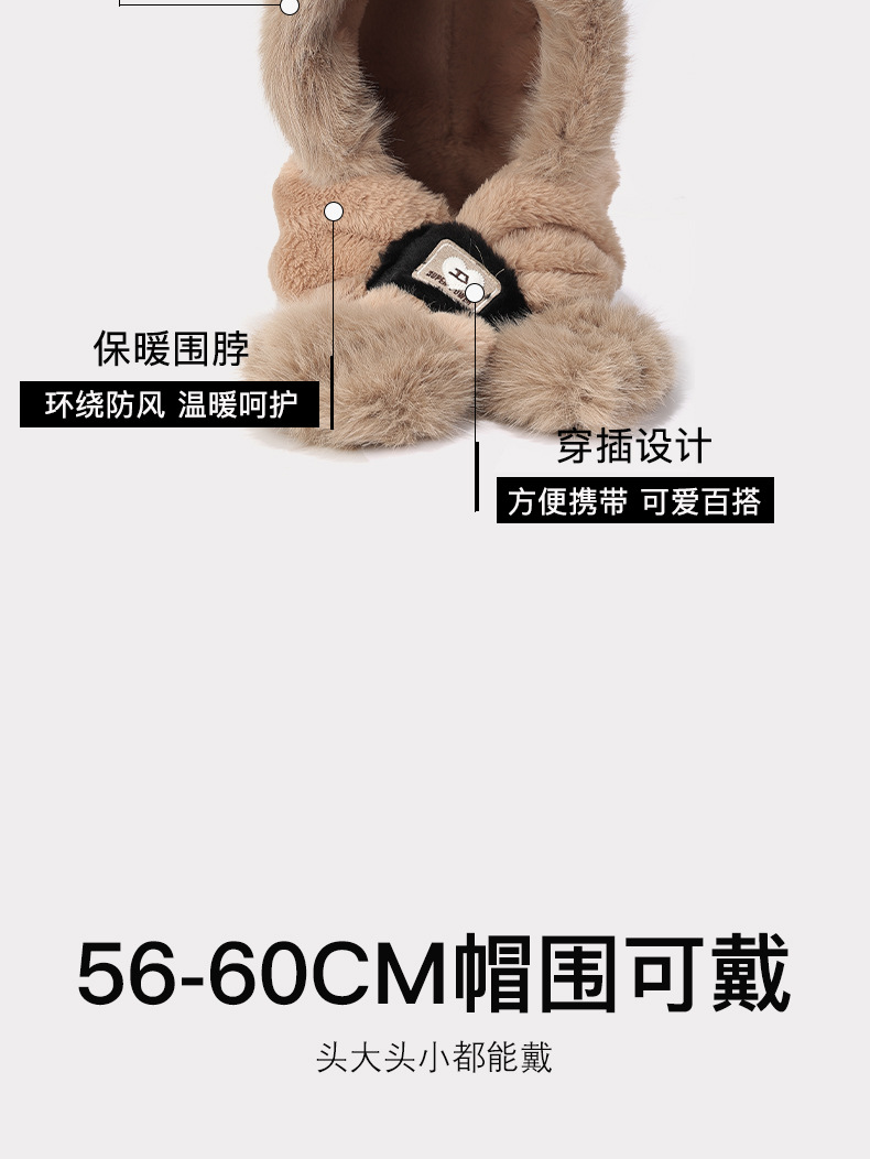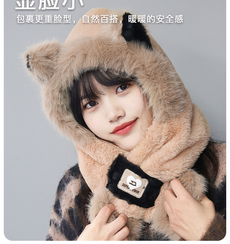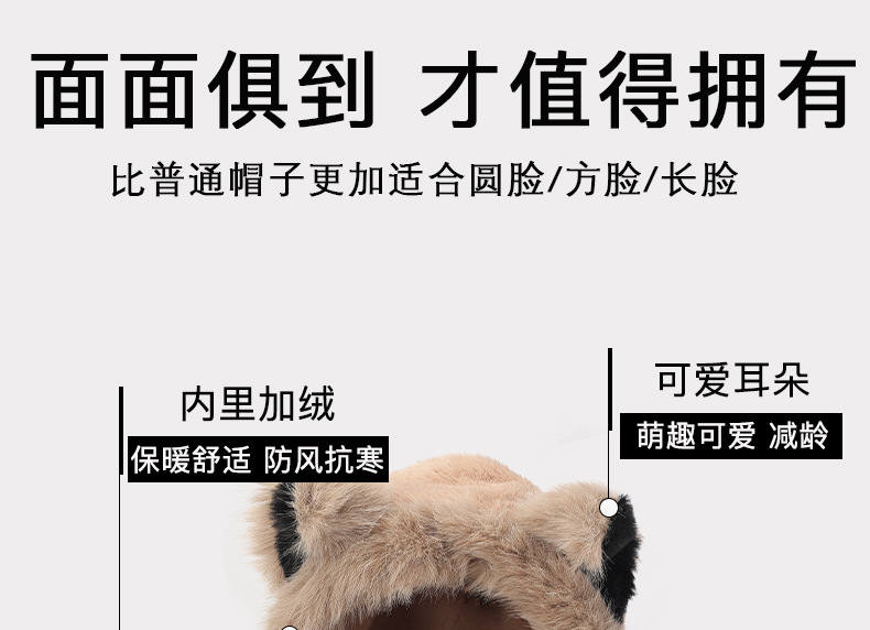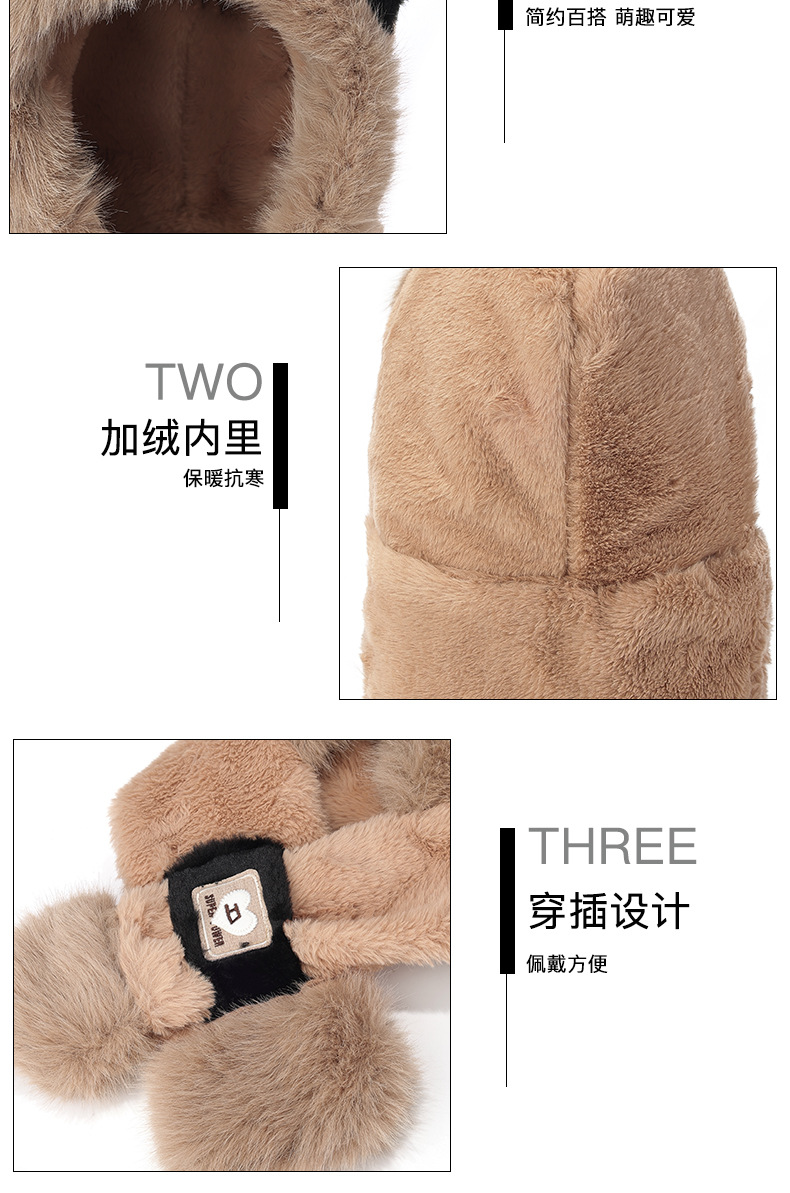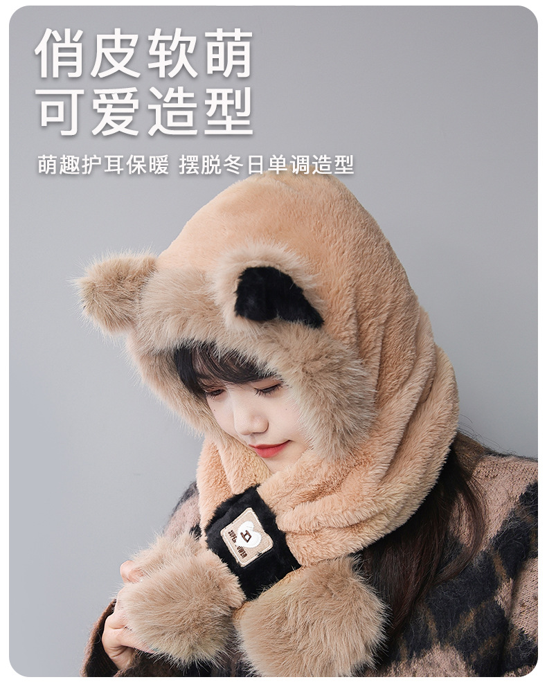 冬季小熊耳朵仿貂毛雷锋帽帽子围脖一体时尚保暖防寒包头帽新款新品