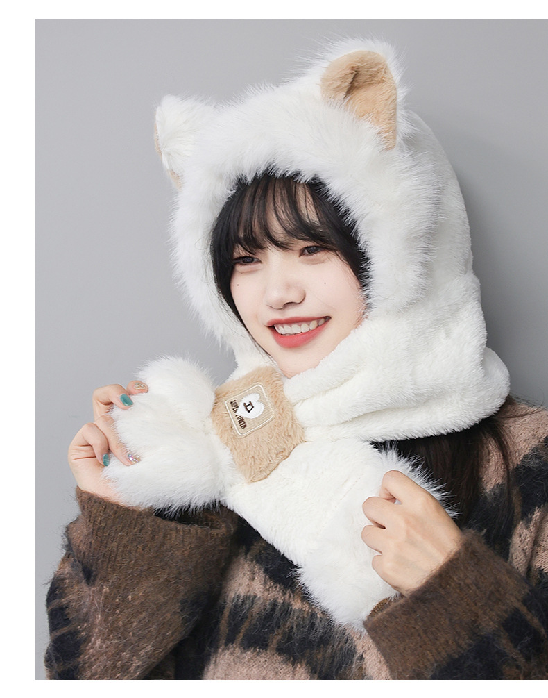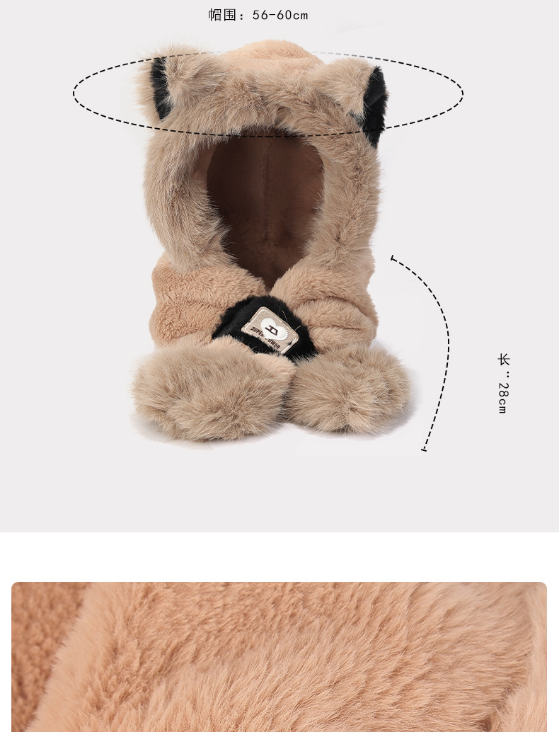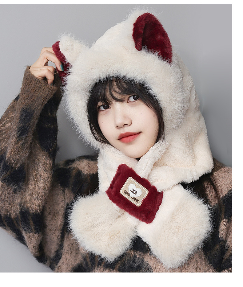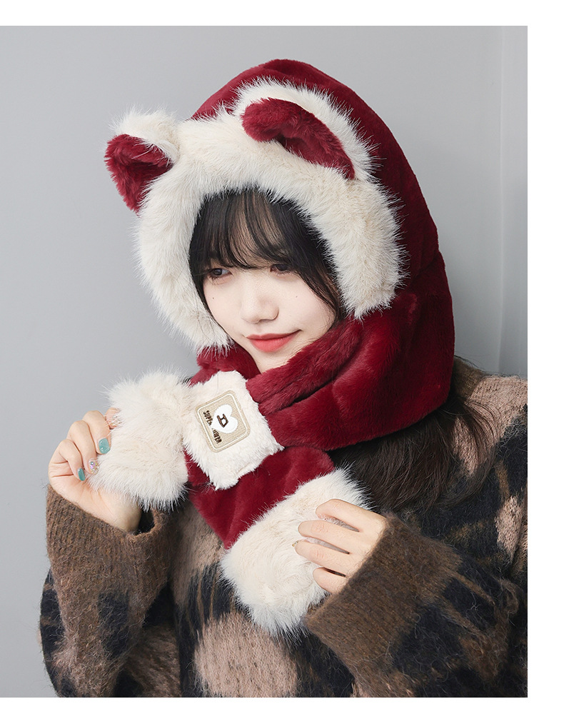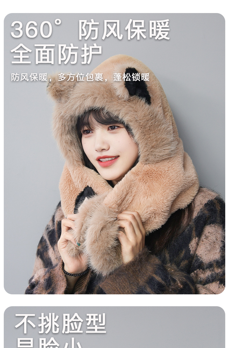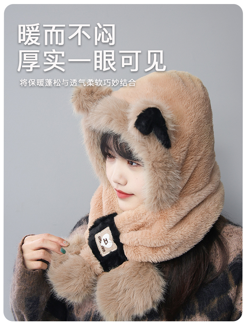 冬季小熊耳朵仿貂毛雷锋帽帽子围脖一体时尚保暖防寒包头帽新款新品