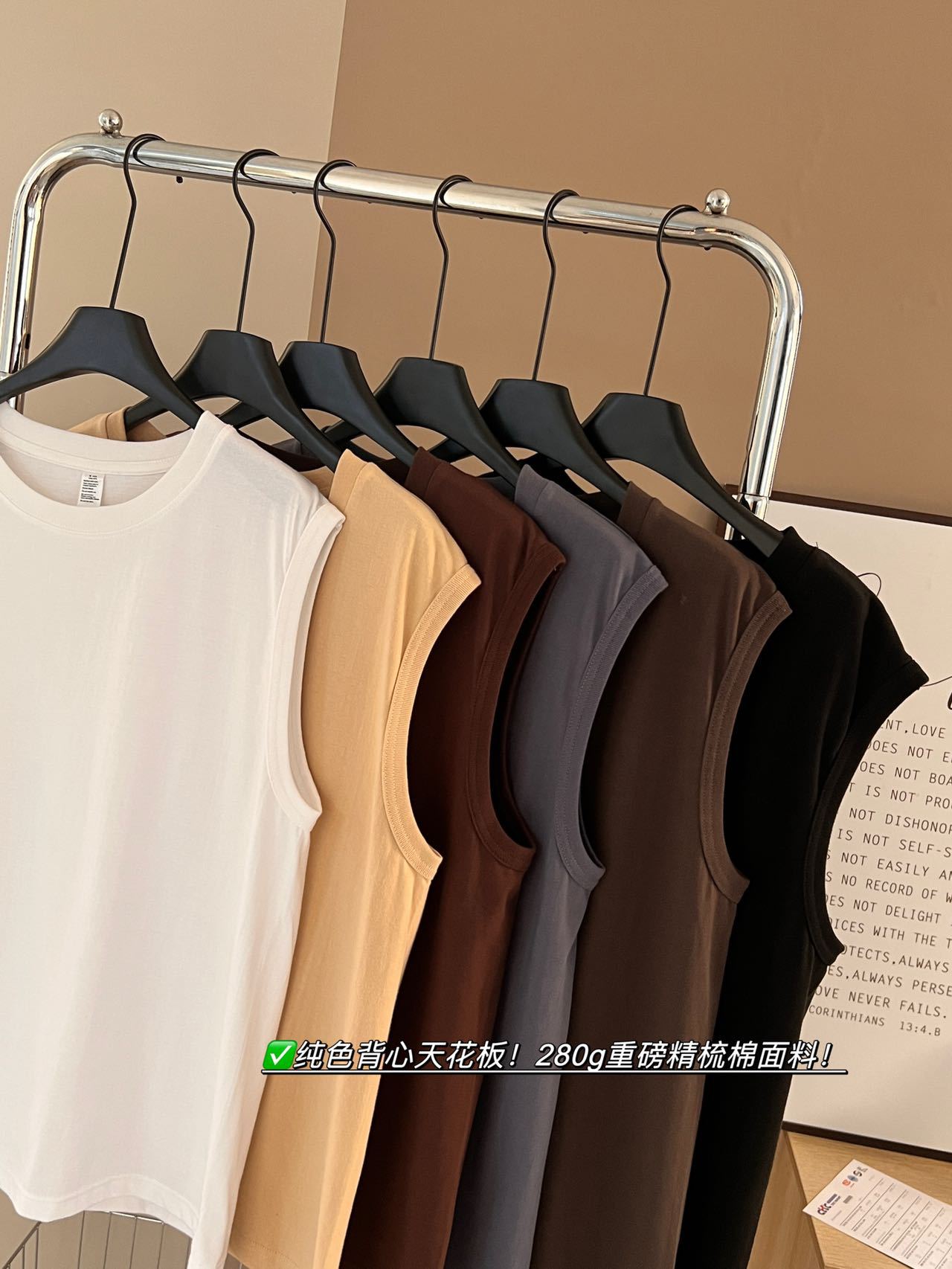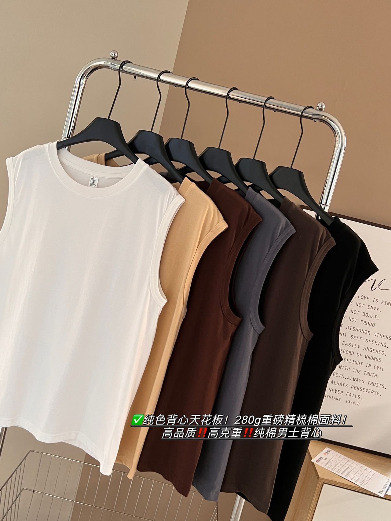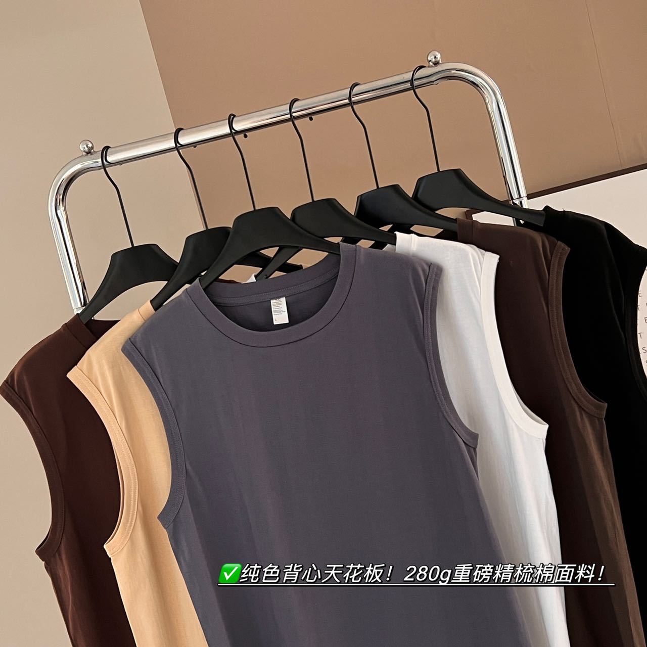 「6色可选!280g重磅纯棉」2024春夏新品精梳棉纯色背心 夏季宽肩薄圆领背心上衣