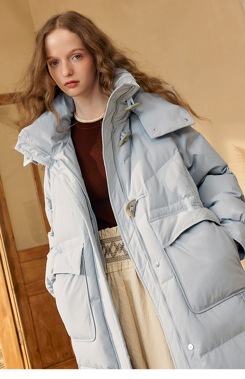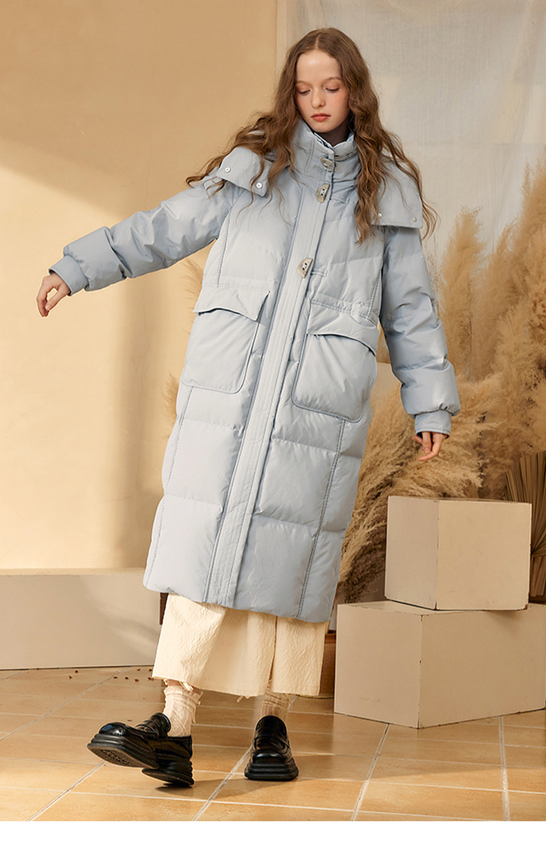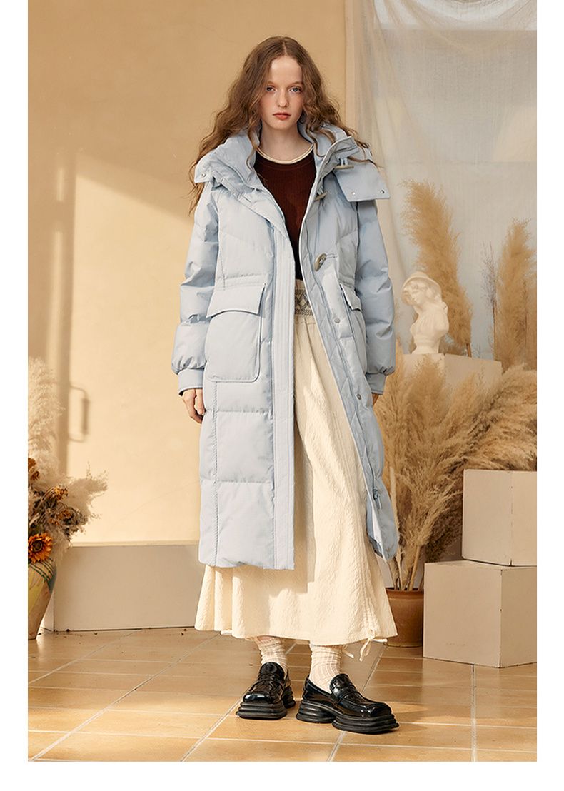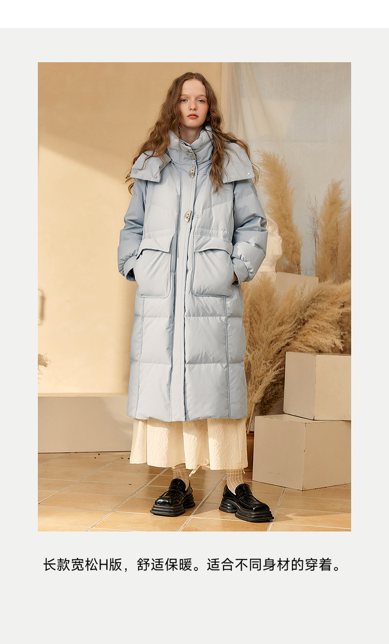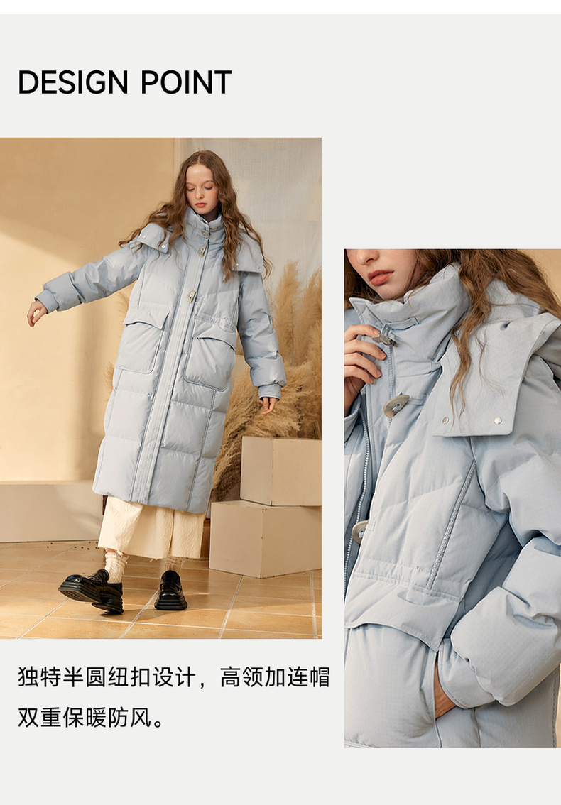 【暖冬内购】两三事银河九天2024冬季新款休闲大口袋长款连帽羽绒服女宽松
